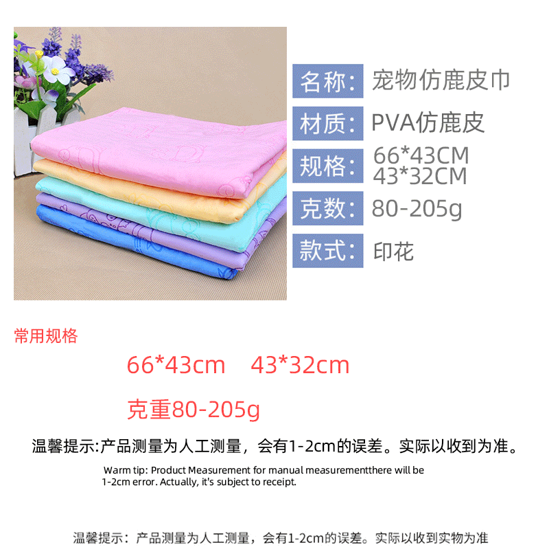 애완동물용 흡수성 꽃무늬 타월 A 두꺼운 강아지 및 고양이 전용 목욕 PVA 사슴가죽 타월 빠른 건조스토어 가기