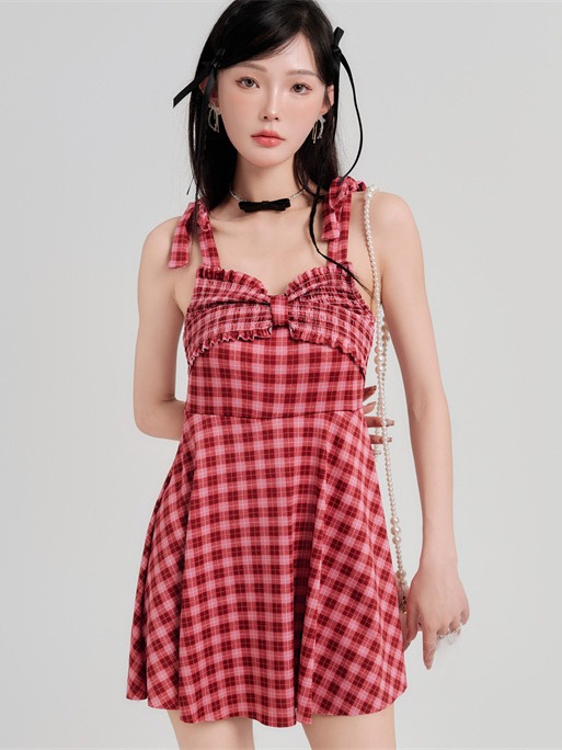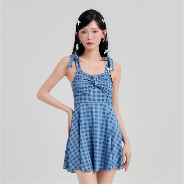 공장 직판 여성 수영복 원피스 스커트 스타일 심플하고 보수적인 작은 가슴을 위한 플레이드 디자인 순수하고 섹시한 스타일 온천 수영복스토어 가기
