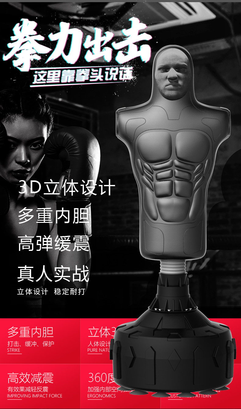 Vitode 3D 휴머노이드 복싱 샌드백 수직 가정 성인 산다 텀블러 샌드백 태권도 훈련 장비스토어 가기