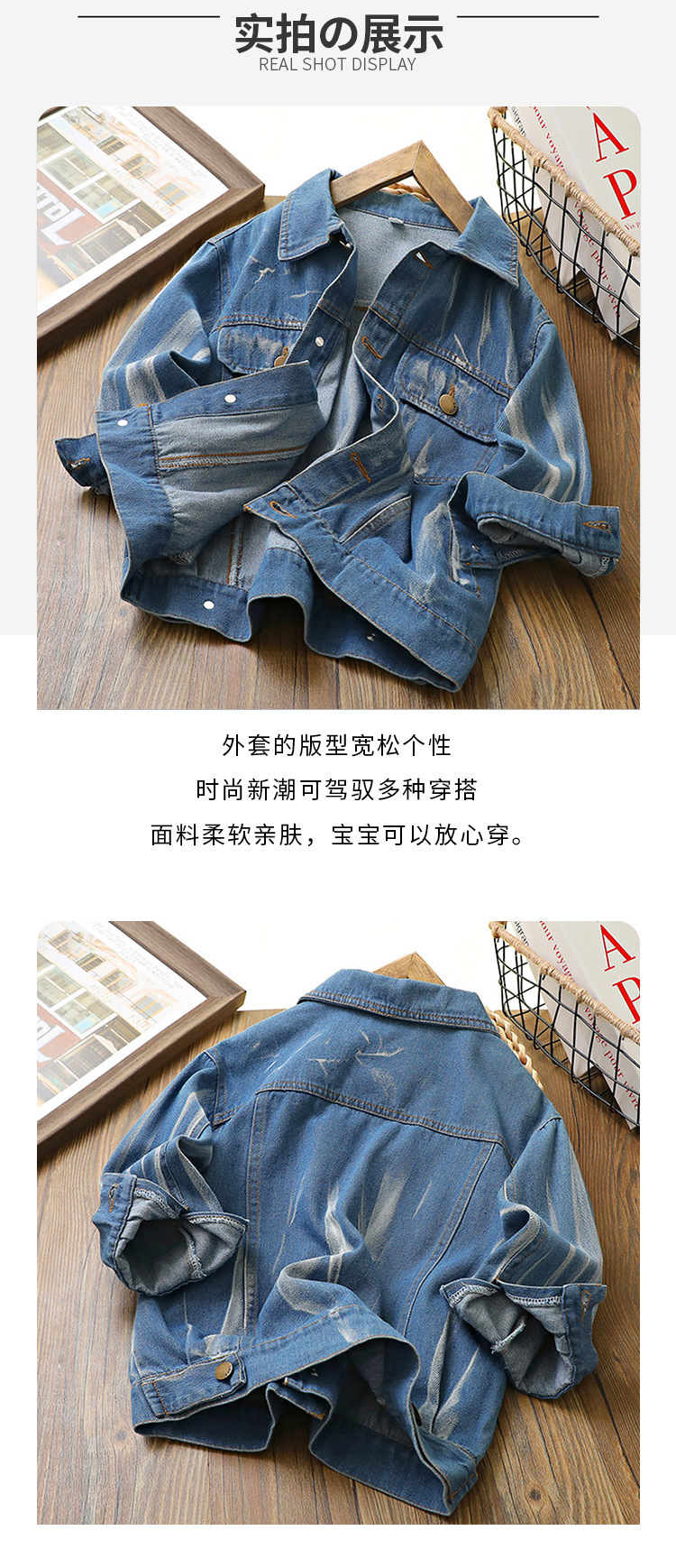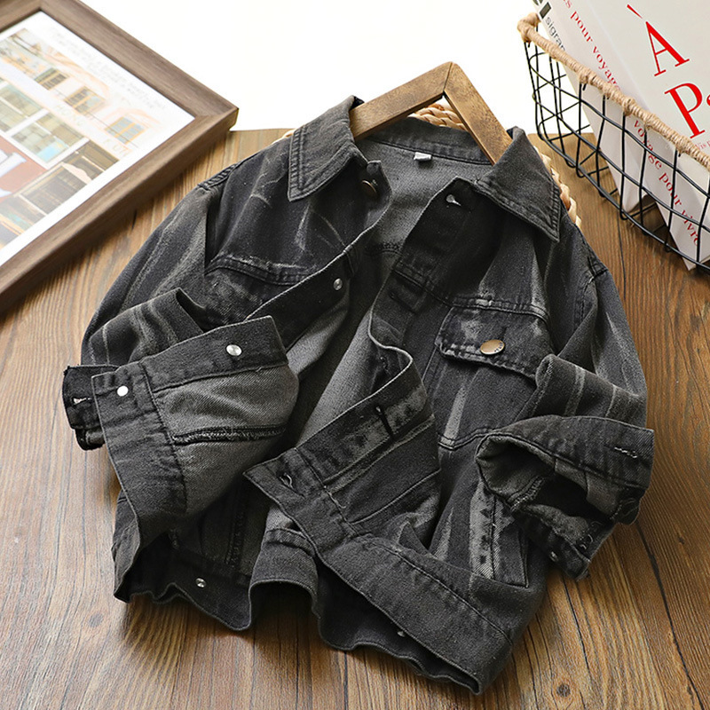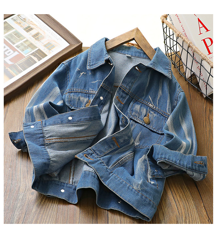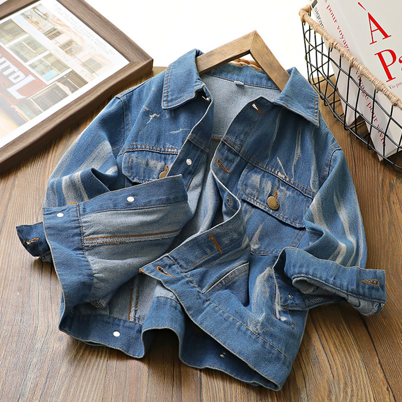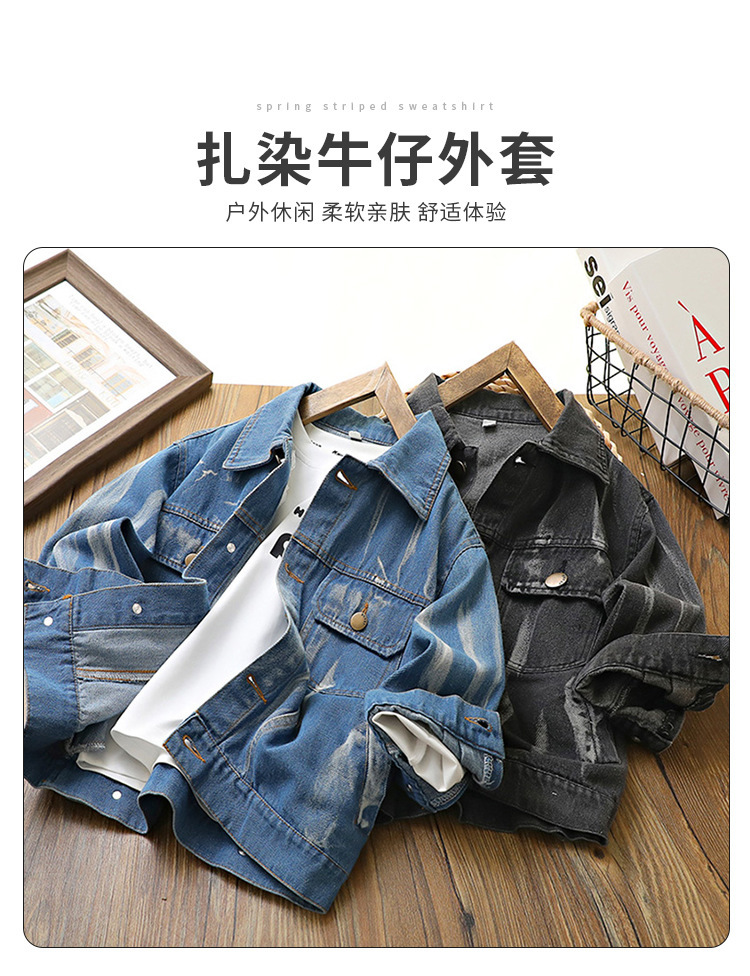 아동 코트 2024 봄, 가을 새로운 스타일 소년 타이 염색 데님 의류 한국 스타일 서양식 중대형 아동용 베이비 가디건 소녀스토어 가기