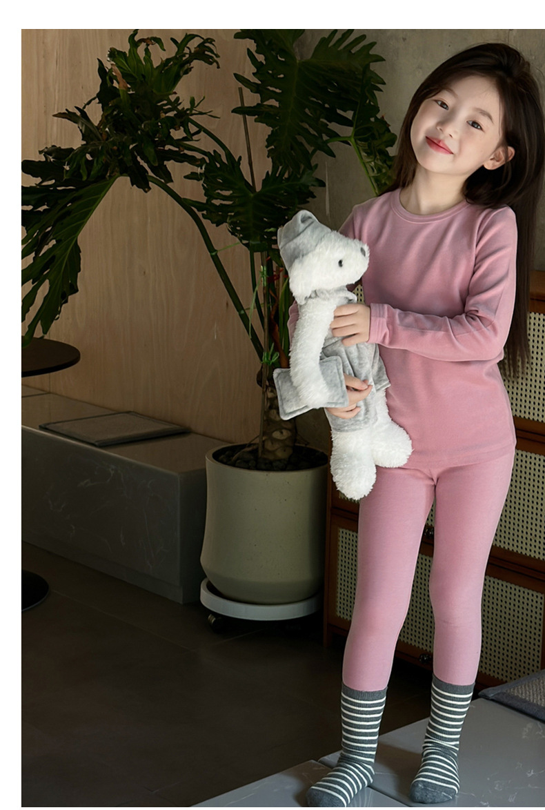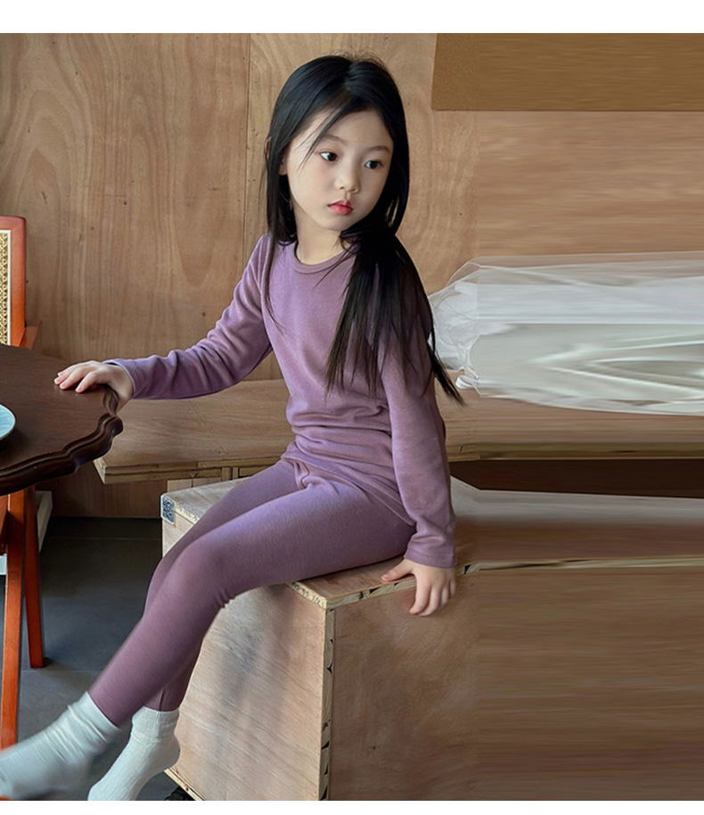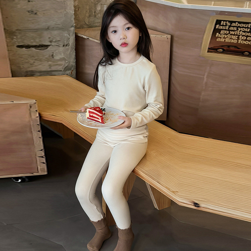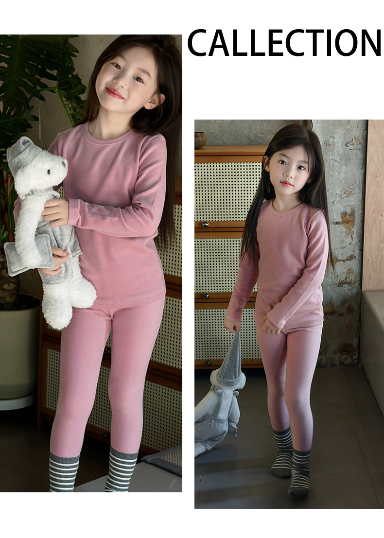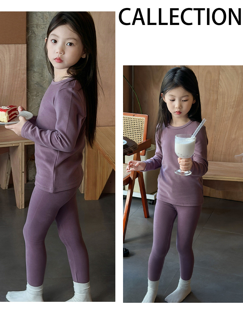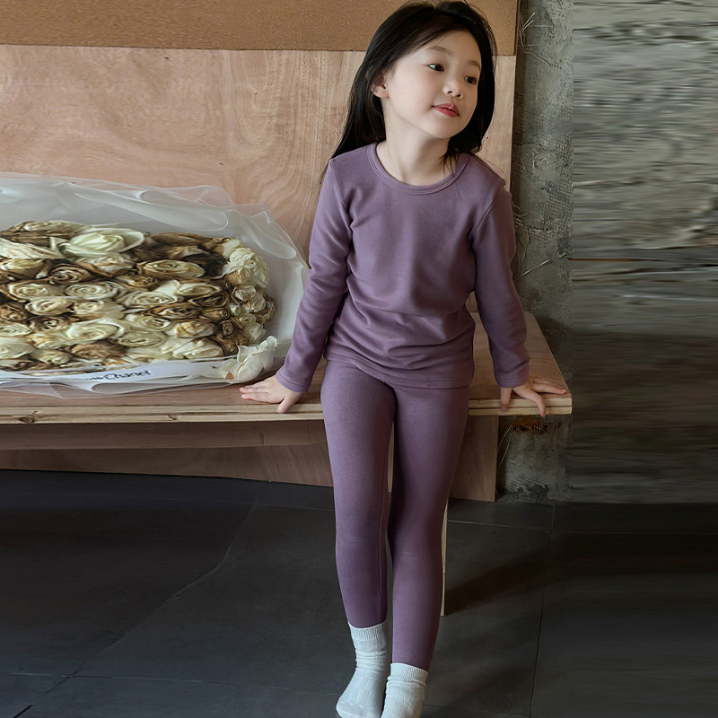 어린이 양털 가을 옷과 바지 세트 큰 어린이 기모 열 속옷 가을 겨울 단색 새 집 옷 잠옷스토어 가기