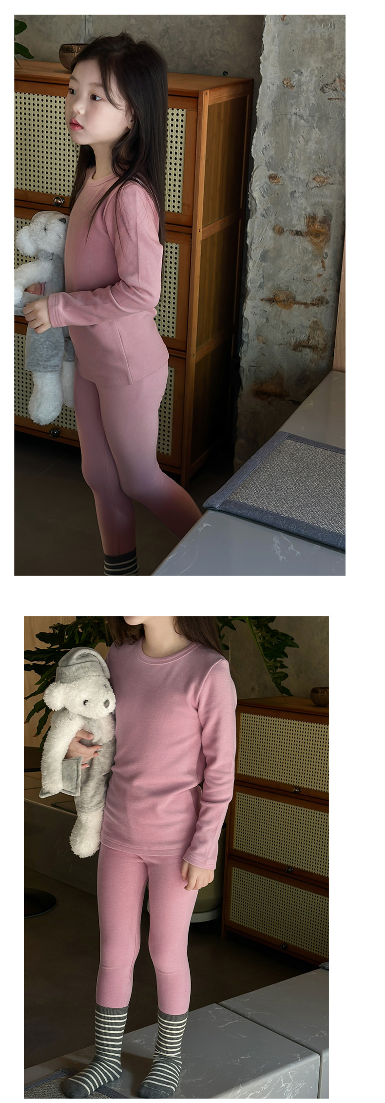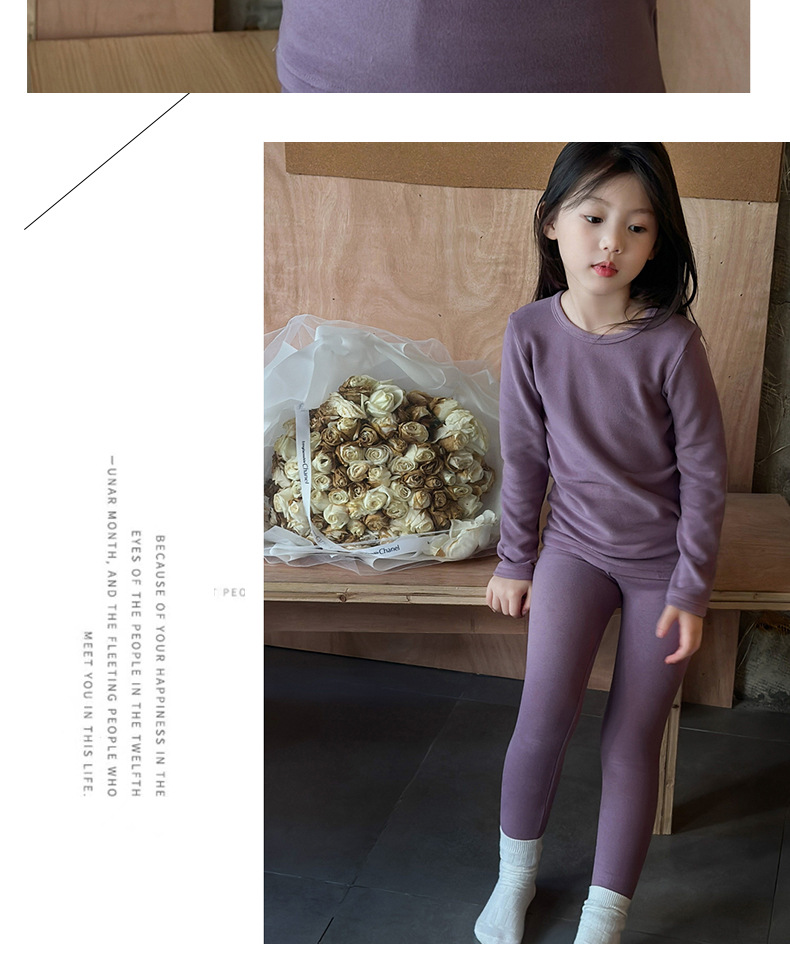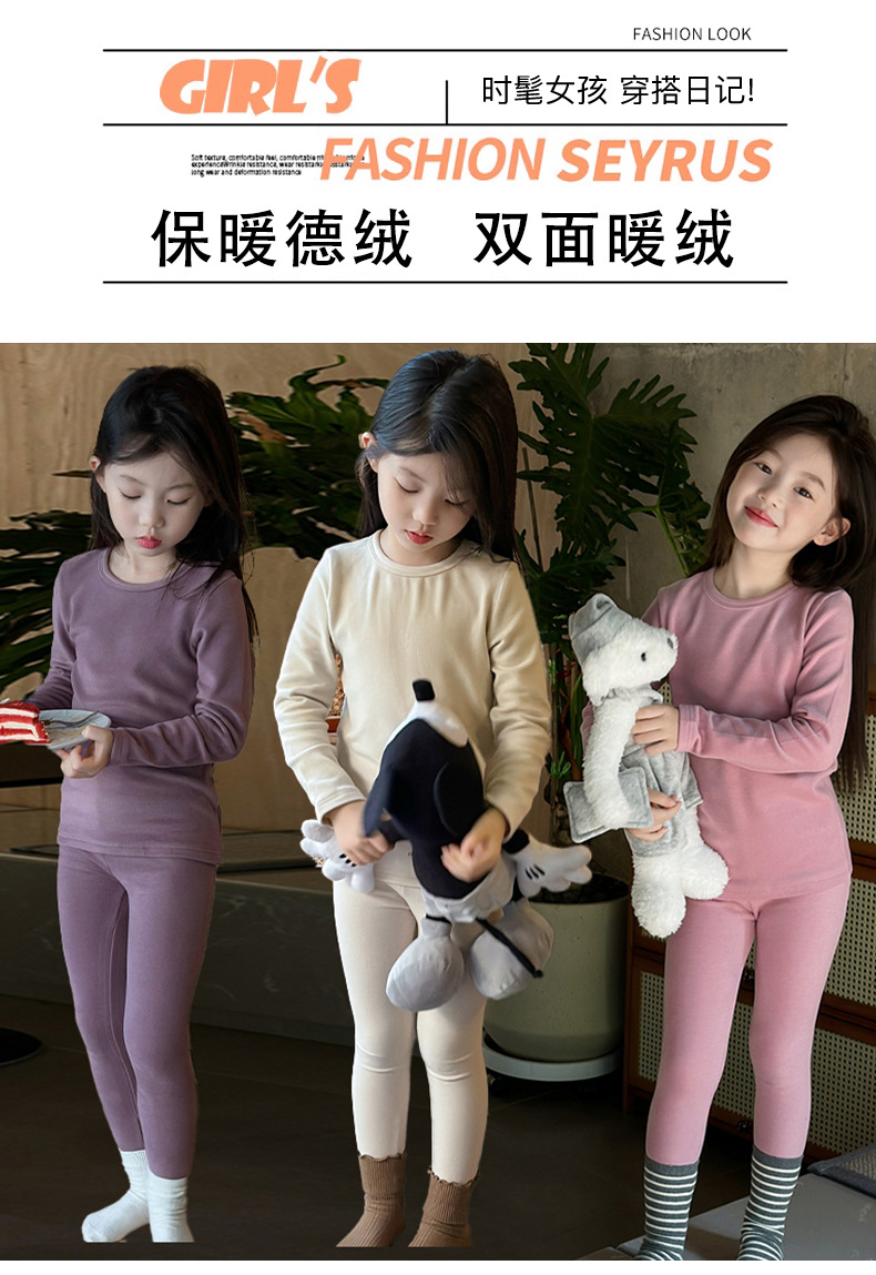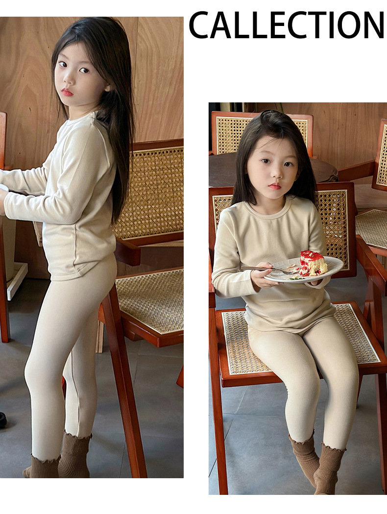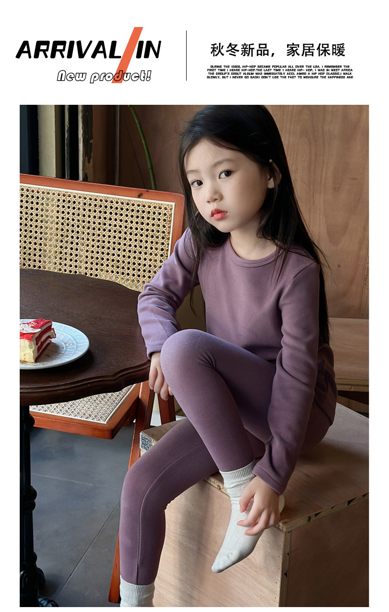어린이 양털 가을 옷과 바지 세트 큰 어린이 기모 열 속옷 가을 겨울 단색 새 집 옷 잠옷스토어 가기