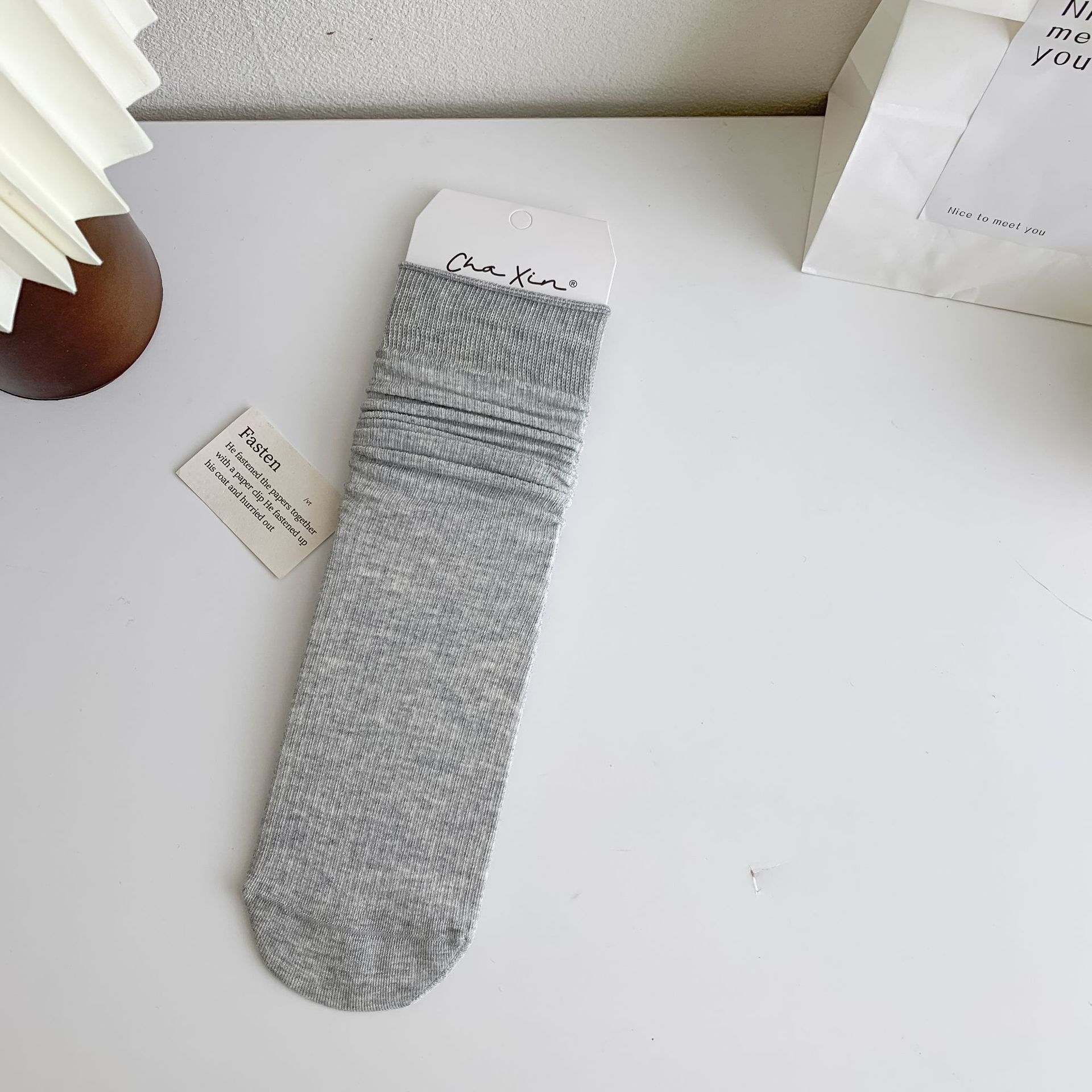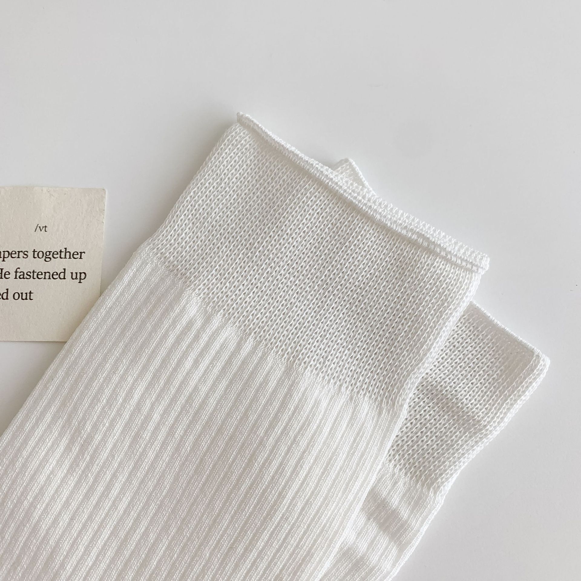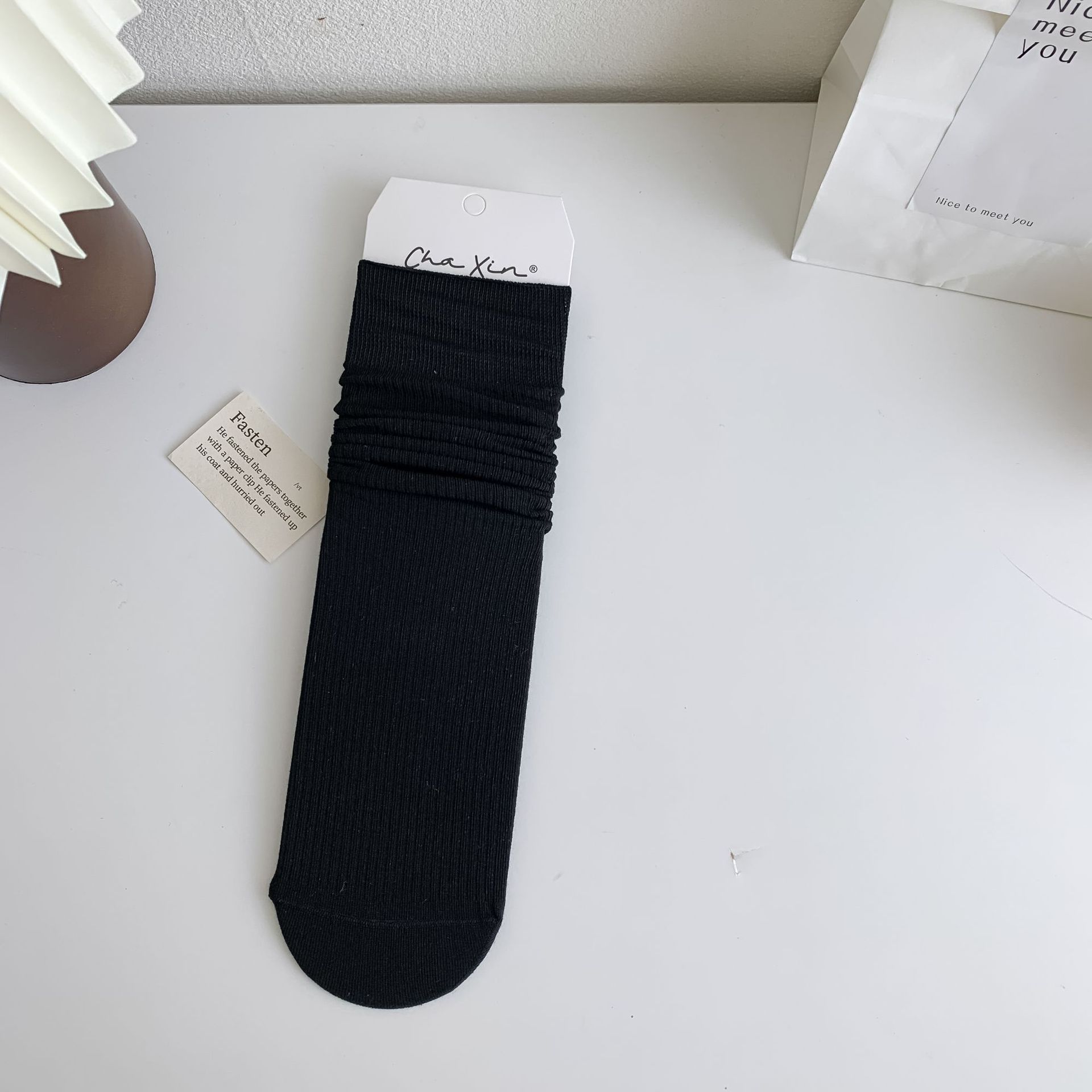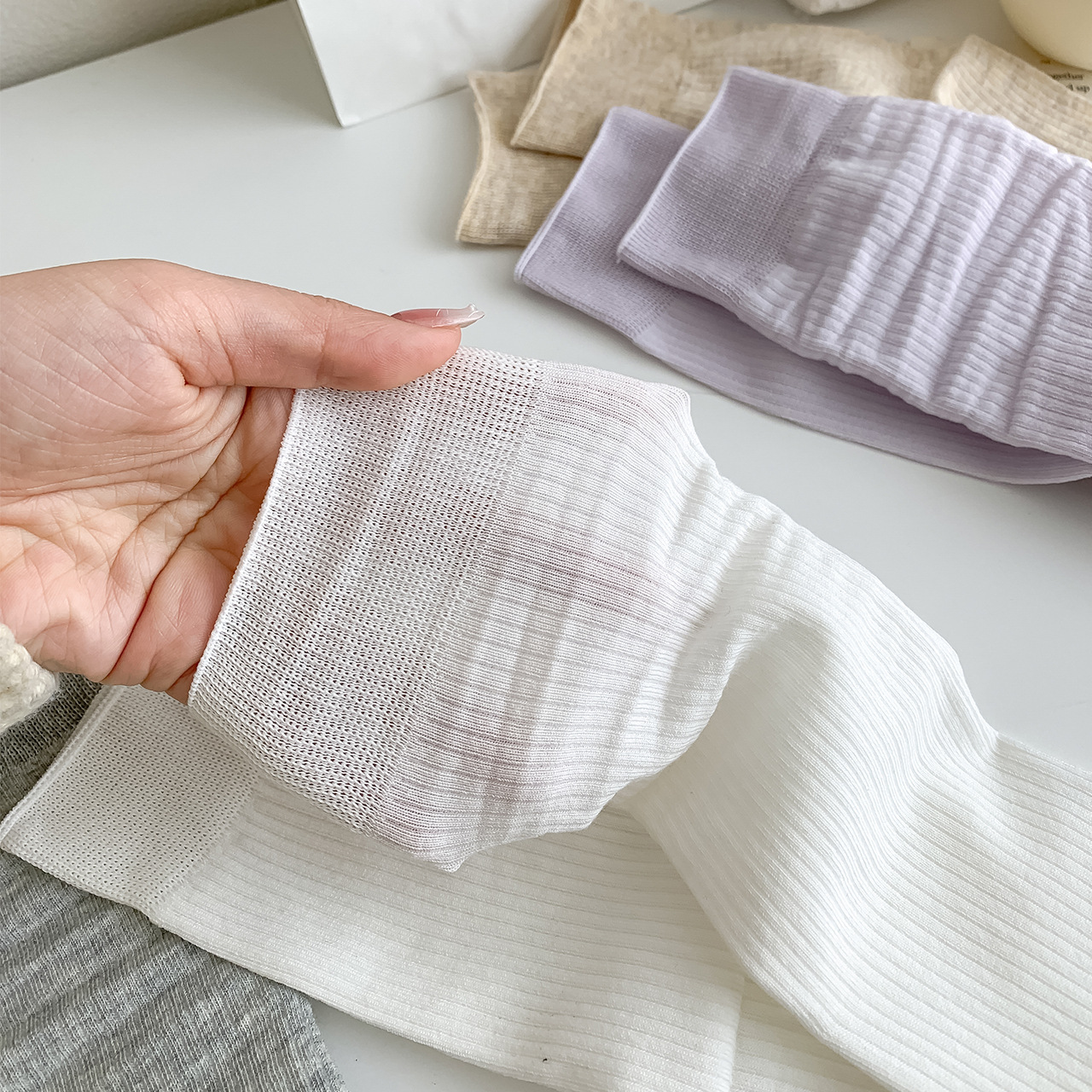 봄과 여름 얇은 양말 여성의 중간 종아리 양말 단색 세로 줄무늬 검은 흰색 회색 기본 스트레이트 크림 컬러 파일 양말스토어 가기
