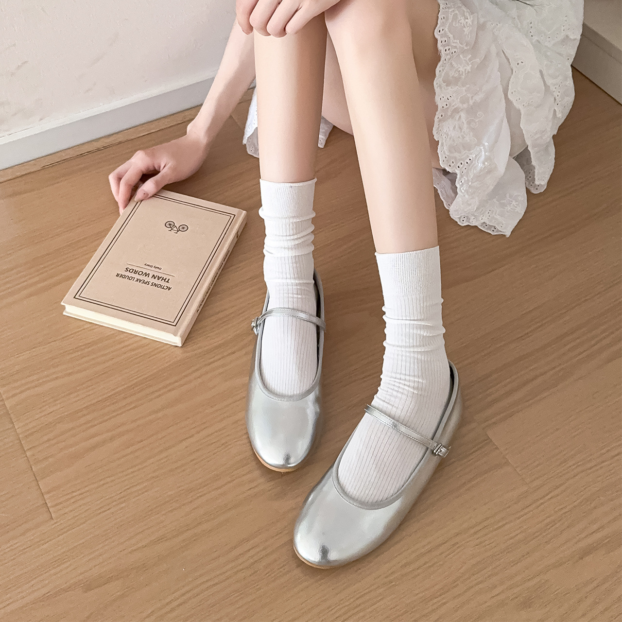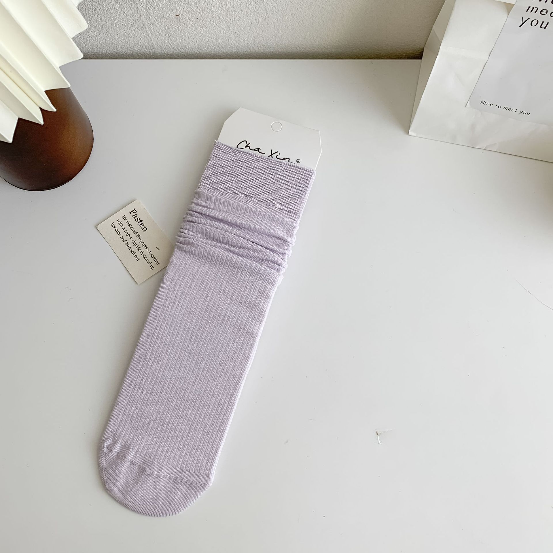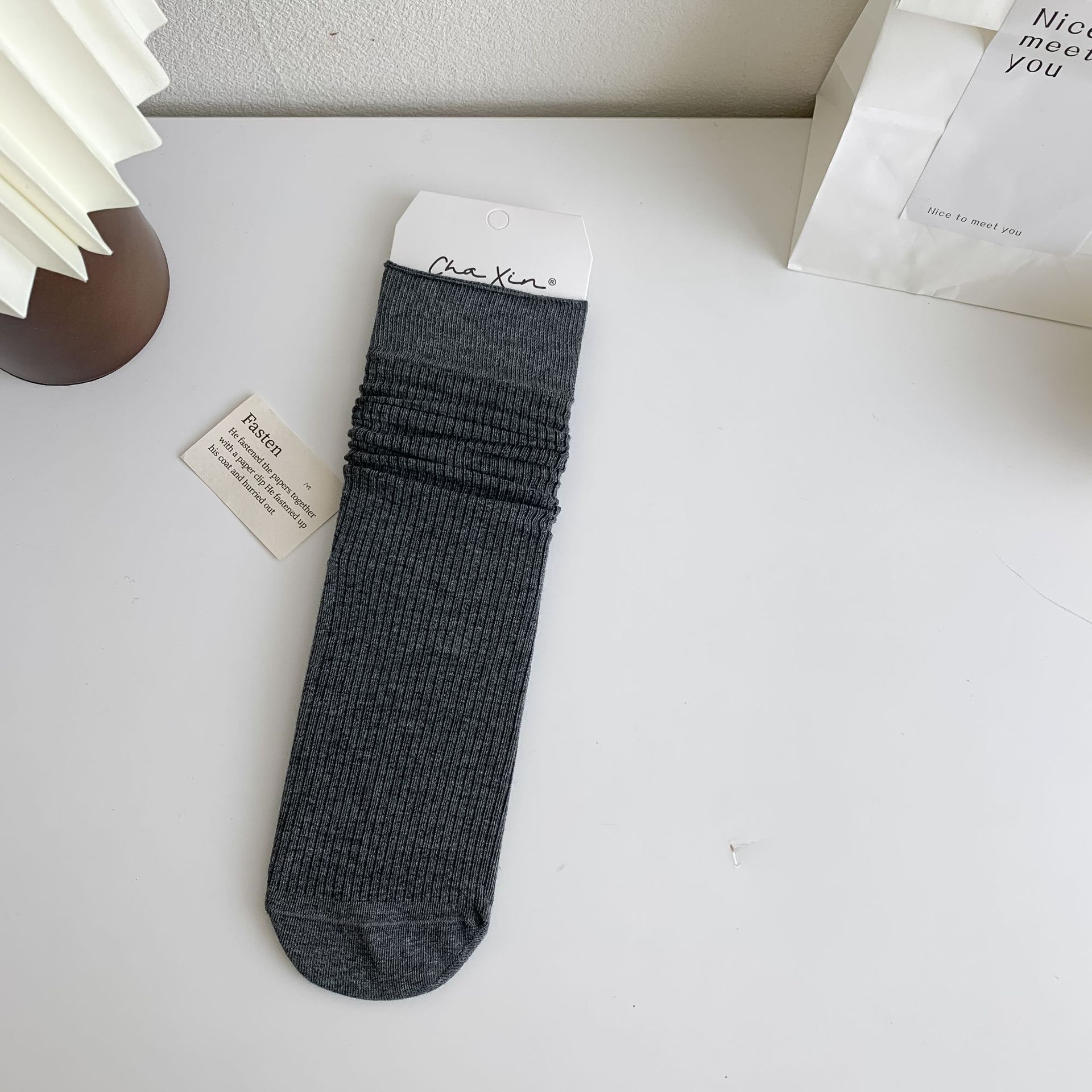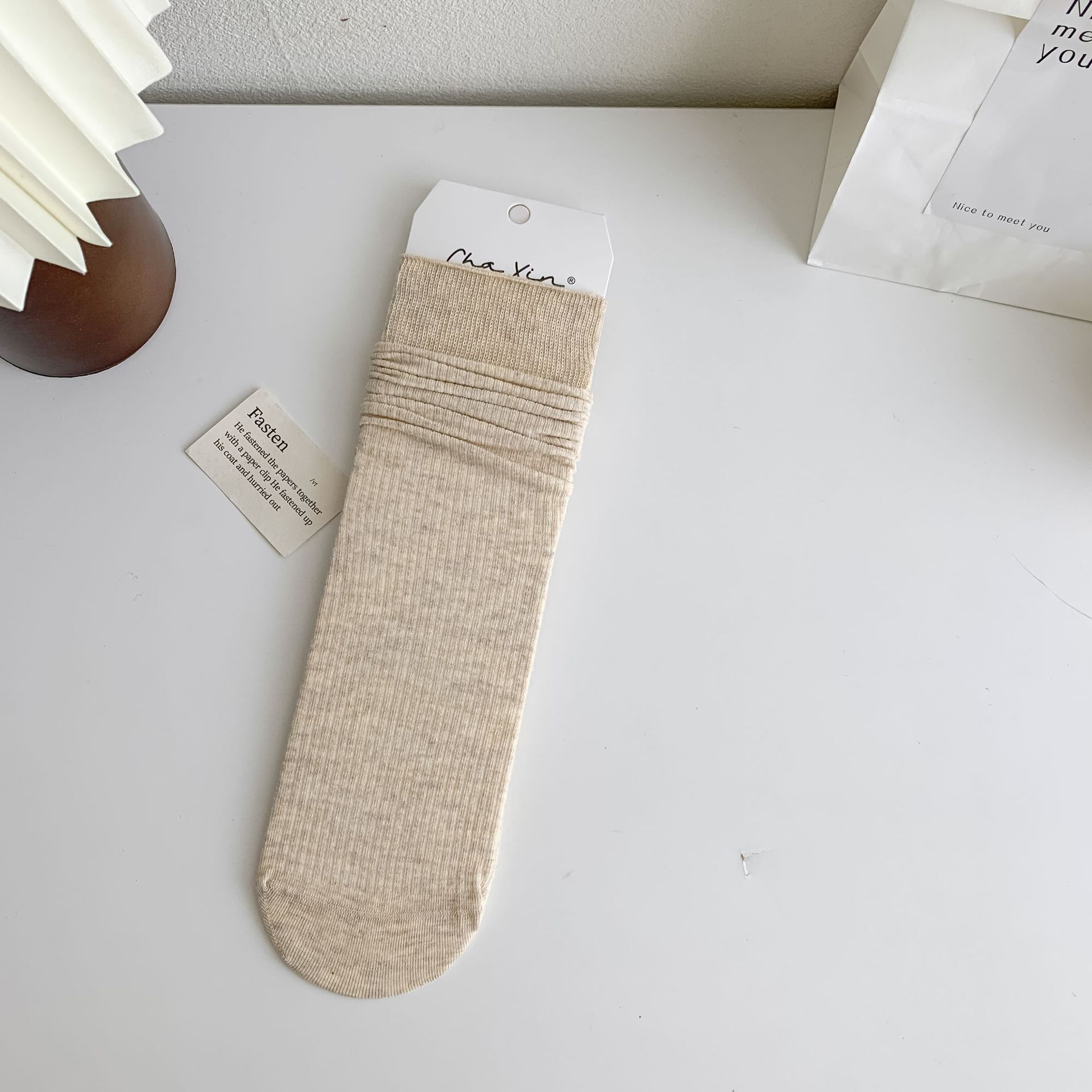 봄과 여름 얇은 양말 여성의 중간 종아리 양말 단색 세로 줄무늬 검은 흰색 회색 기본 스트레이트 크림 컬러 파일 양말스토어 가기