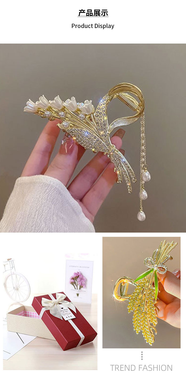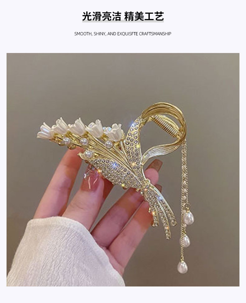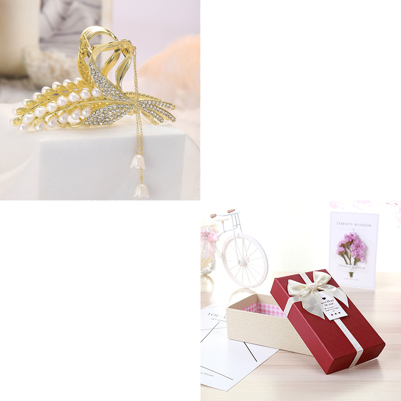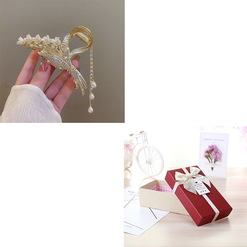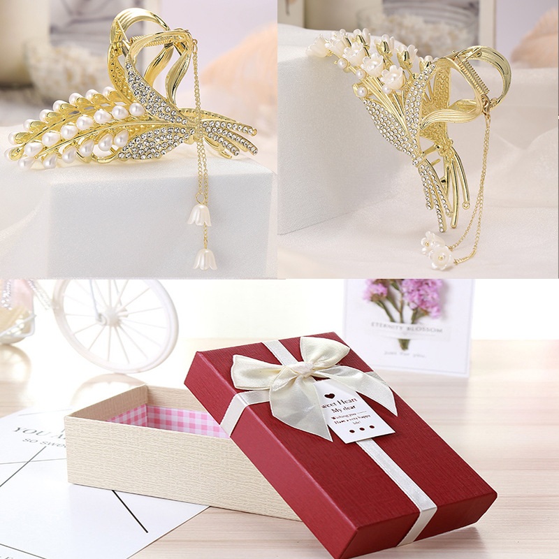 2026년 핫 아이템 진주와 라인스톤으로 장식된 은방울꽃 밀이삭 머리핀, 뒷머리 장식 선물 상자, 고급스럽고 정교한 디자인스토어 가기