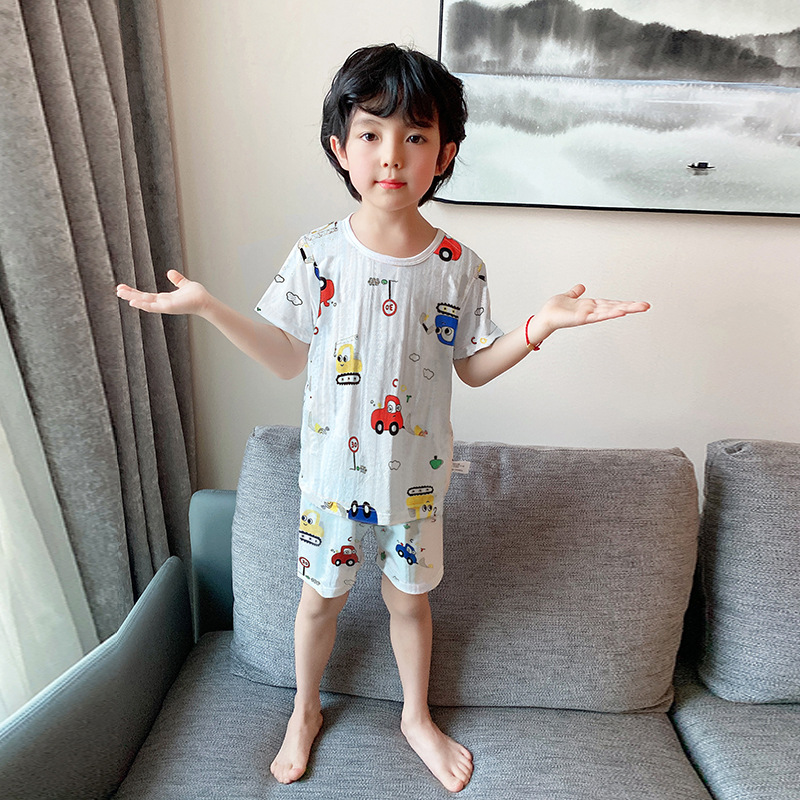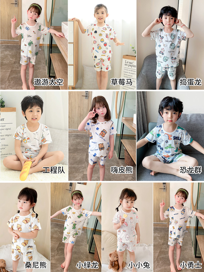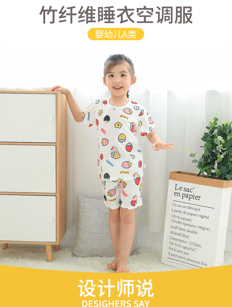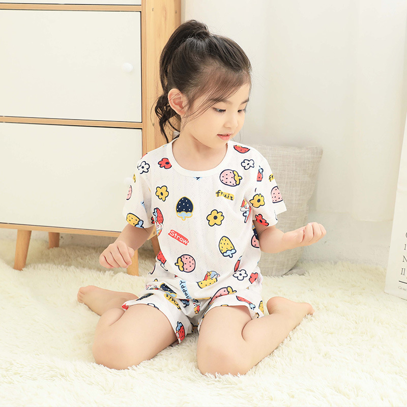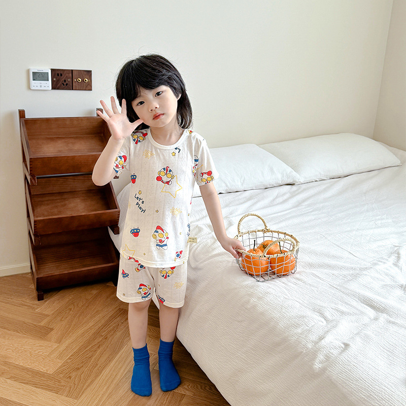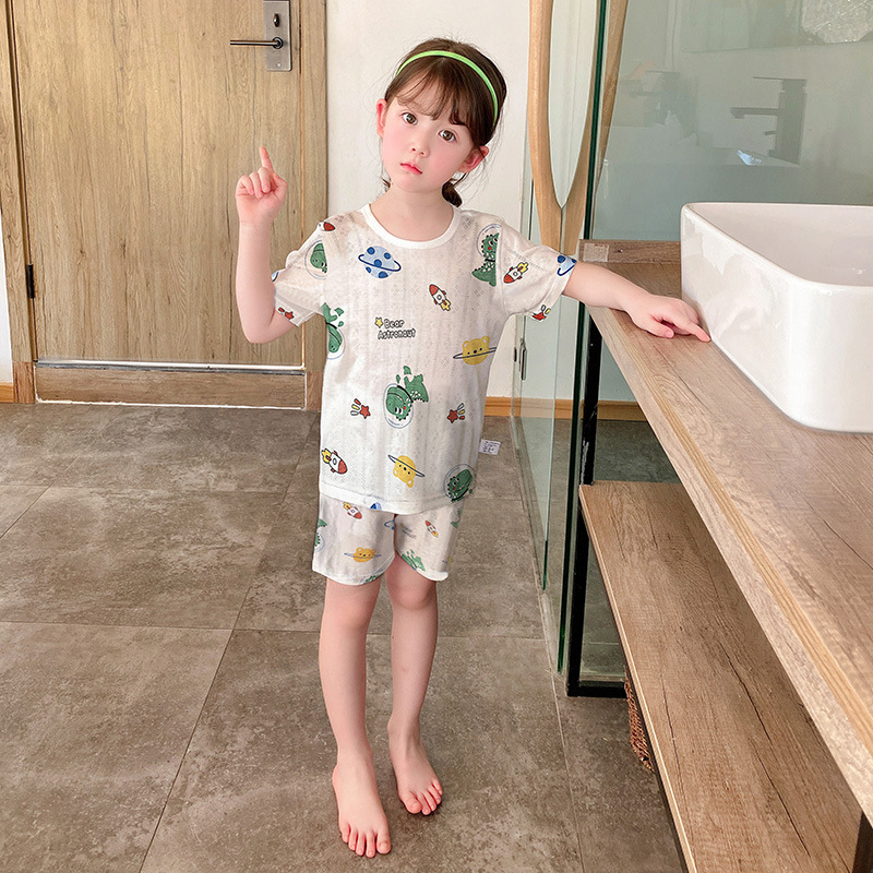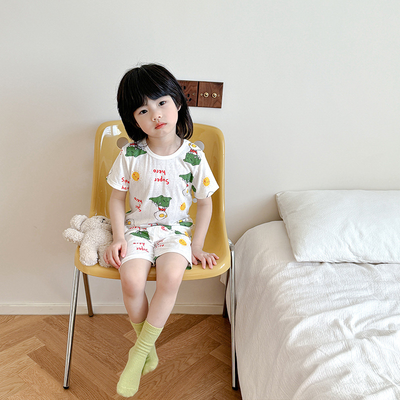 73-130 남자와 여자의 아기 여름 대나무 섬유 속옷 세트 아이들의 얇은 통기성 에어컨 옷 홈 착용 세대 헤어