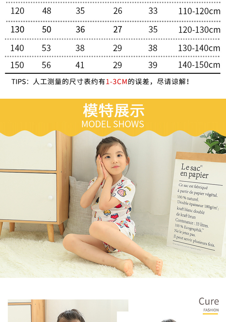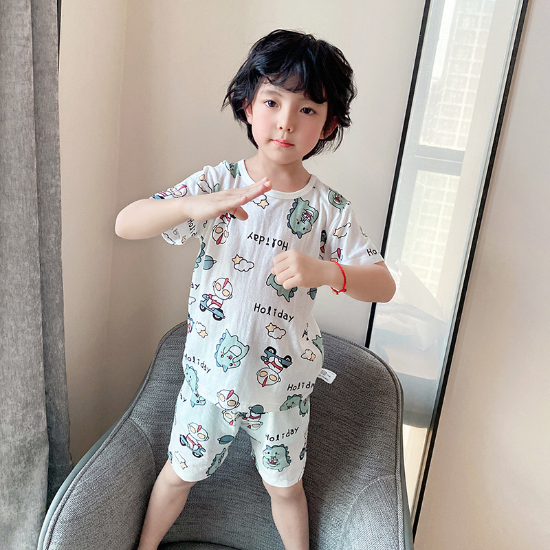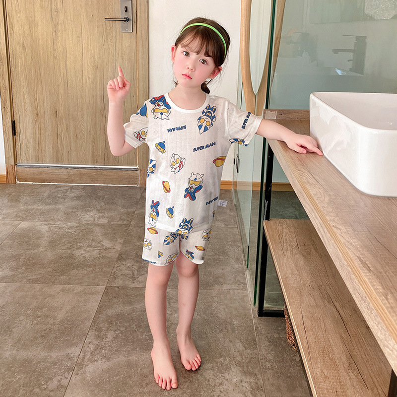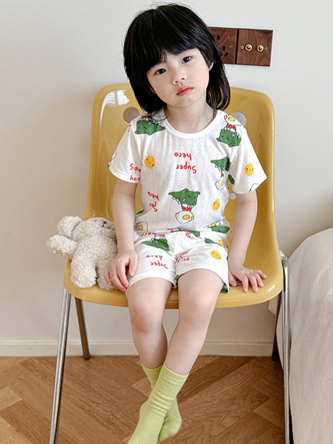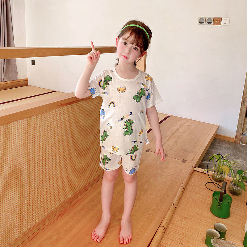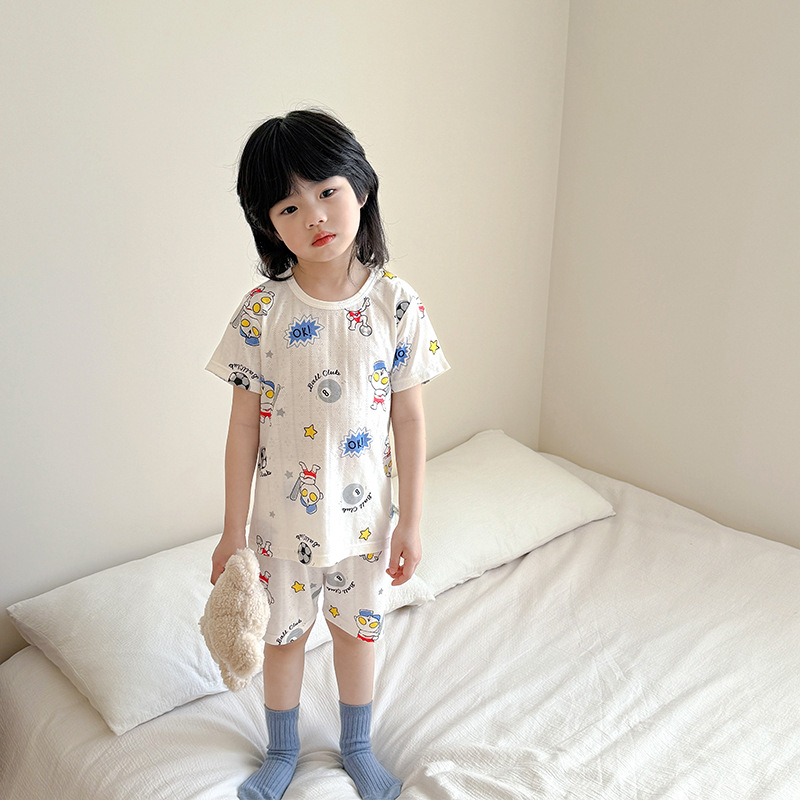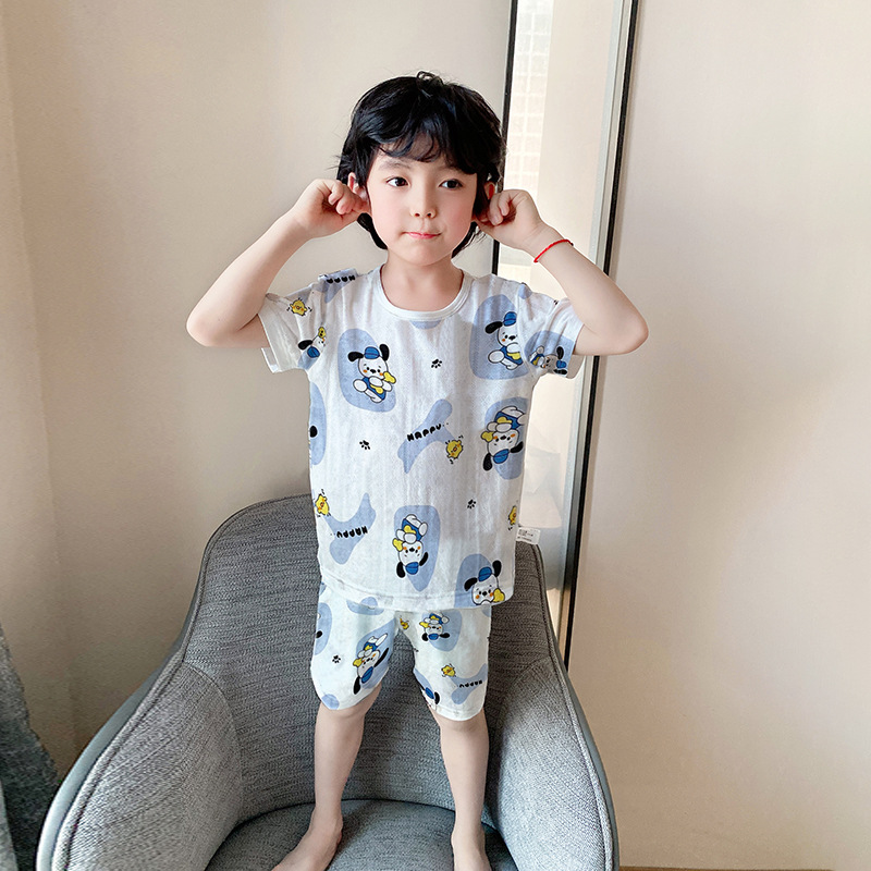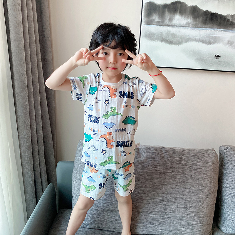 73-130 남자와 여자의 아기 여름 대나무 섬유 속옷 세트 아이들의 얇은 통기성 에어컨 옷 홈 착용 세대 헤어