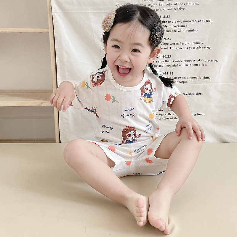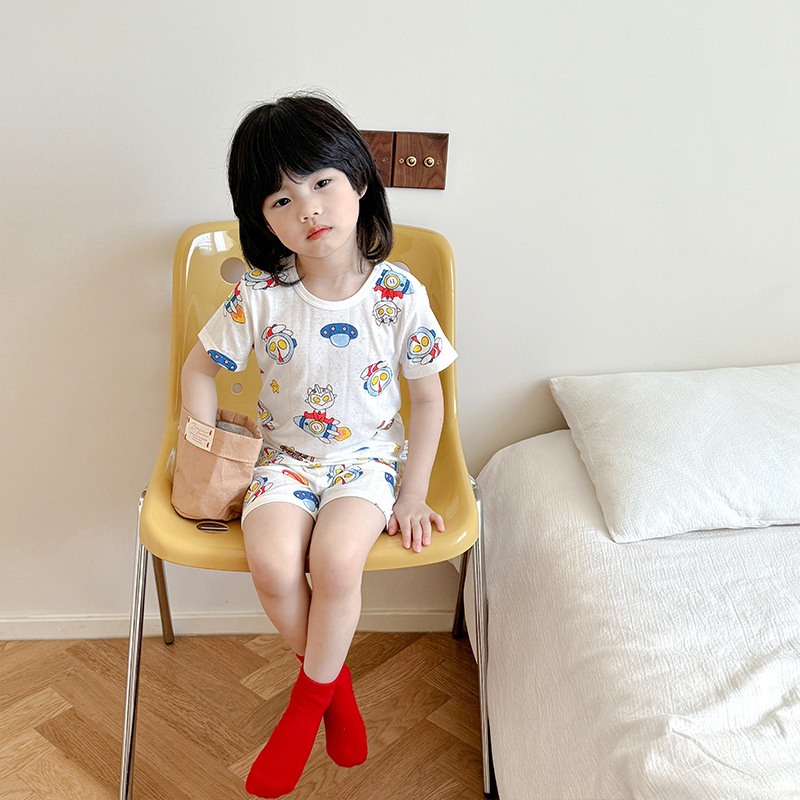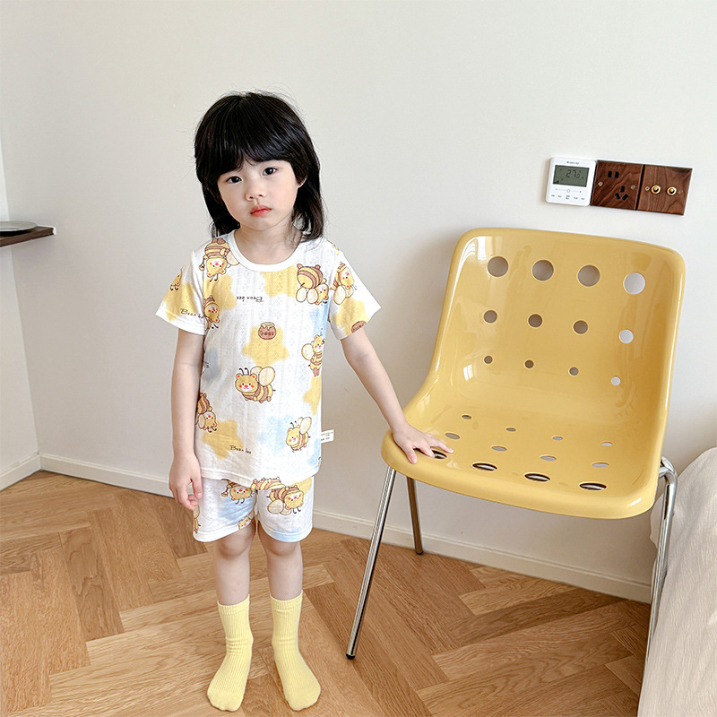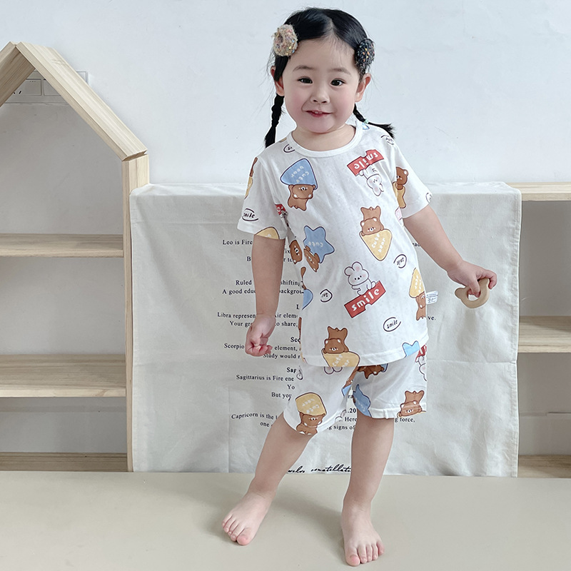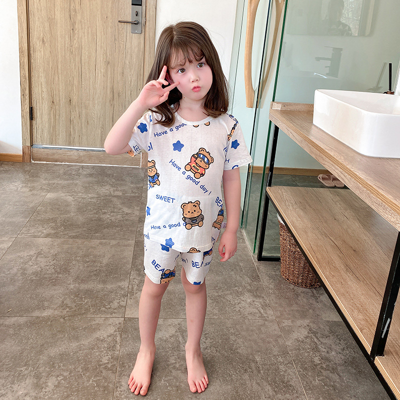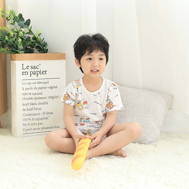 73-130 남자와 여자의 아기 여름 대나무 섬유 속옷 세트 아이들의 얇은 통기성 에어컨 옷 홈 착용 세대 헤어스토어 가기