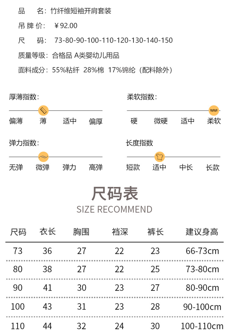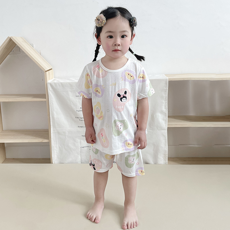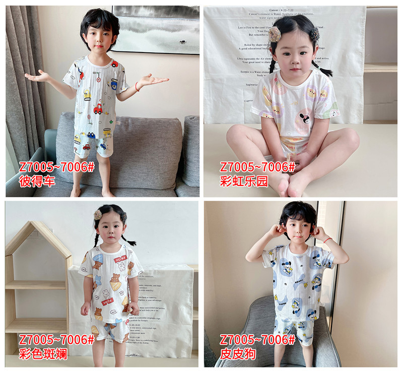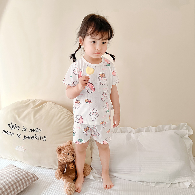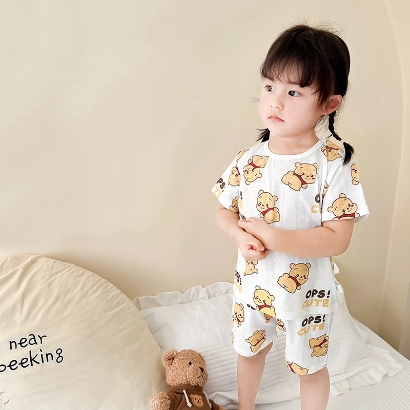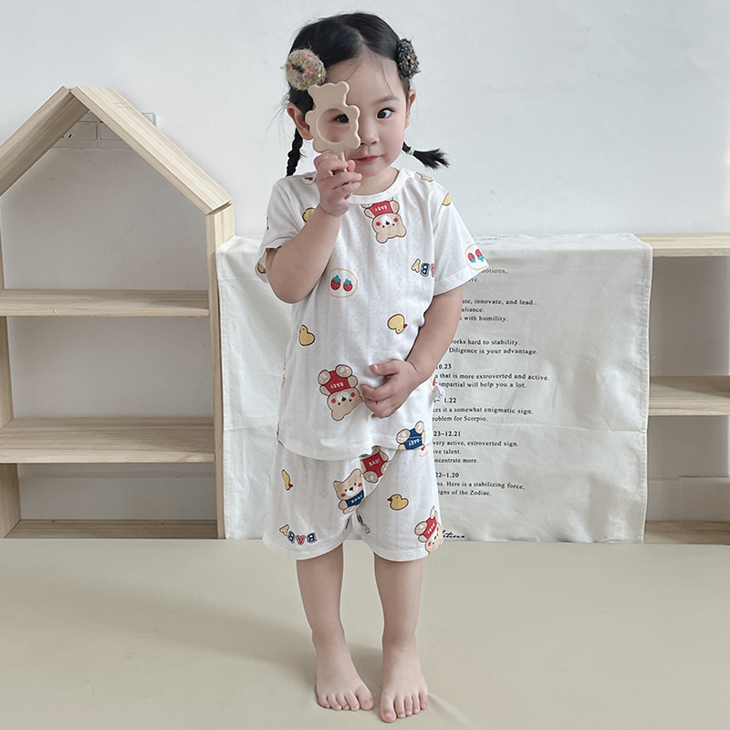 73-130 남자와 여자의 아기 여름 대나무 섬유 속옷 세트 아이들의 얇은 통기성 에어컨 옷 홈 착용 세대 헤어스토어 가기