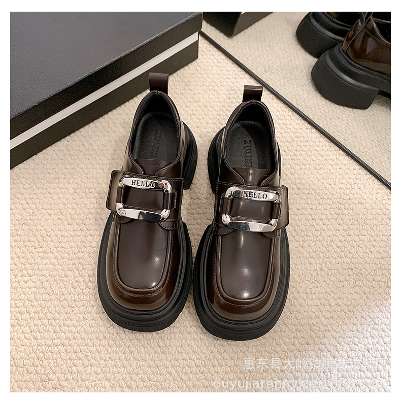 로퍼 여성 2024 봄 새로운 정품 가죽 벨크로 복고풍 다목적 두꺼운 싱글 레이어 신발 영국 스타일 가죽 신발스토어 가기