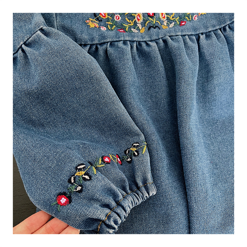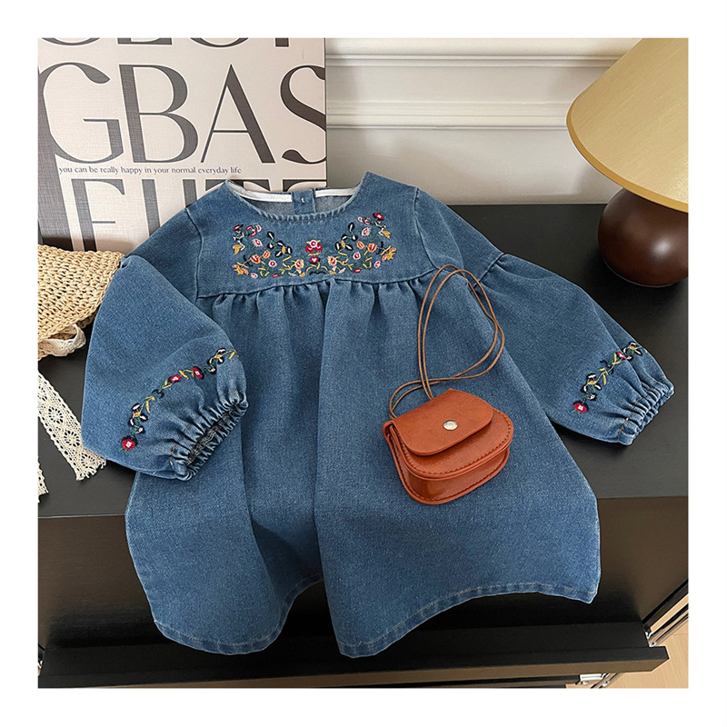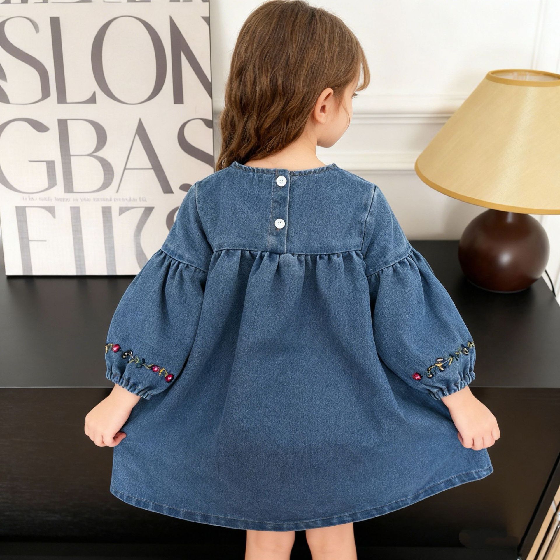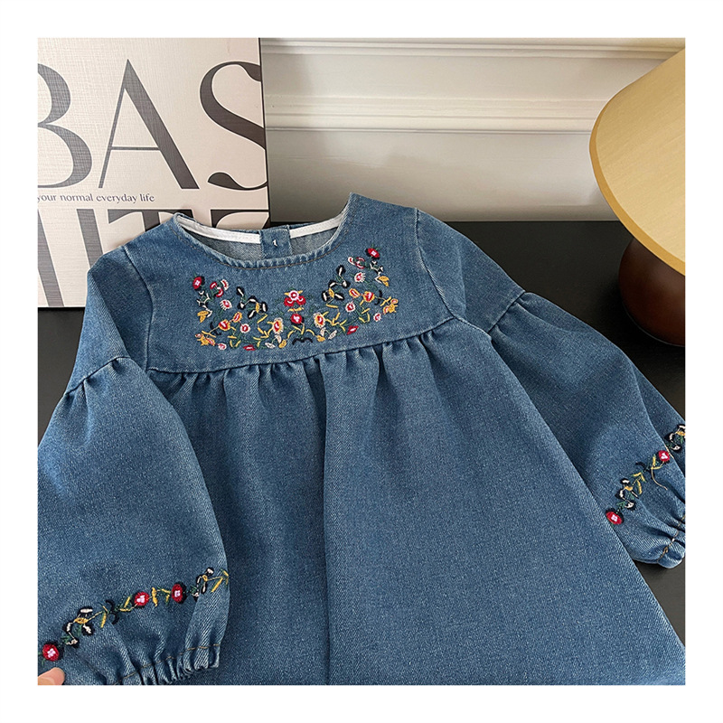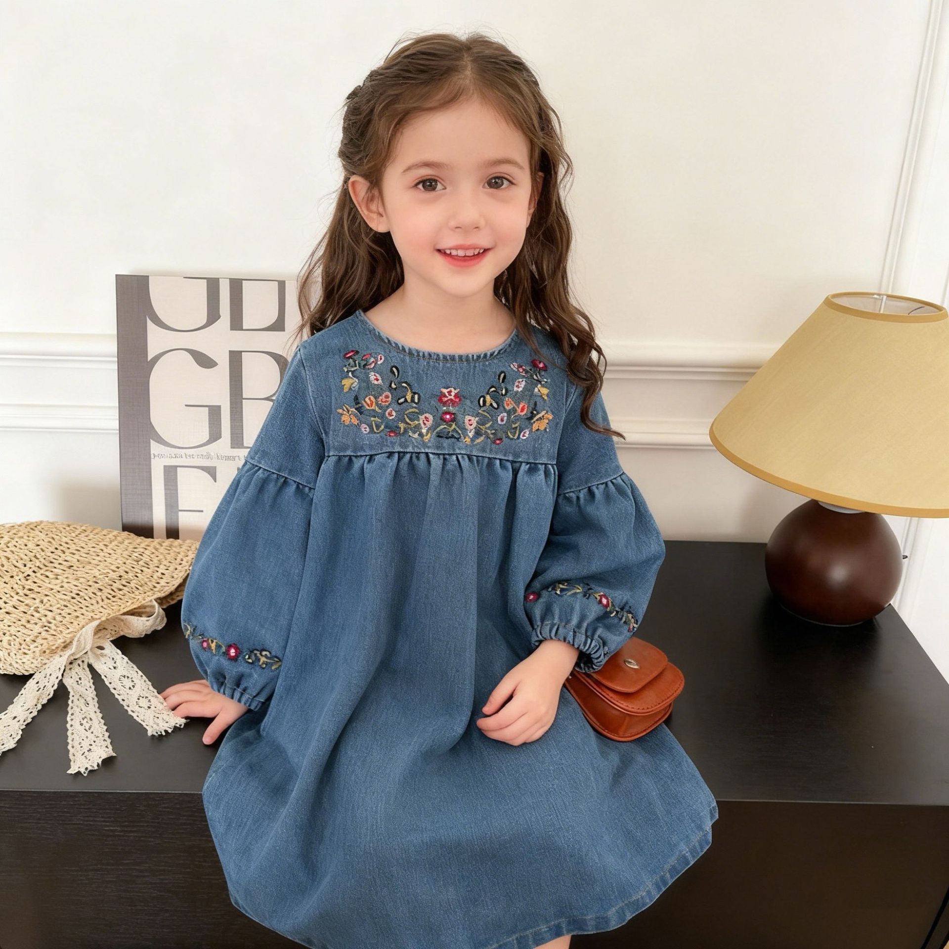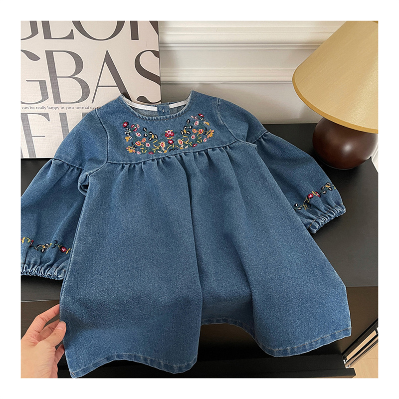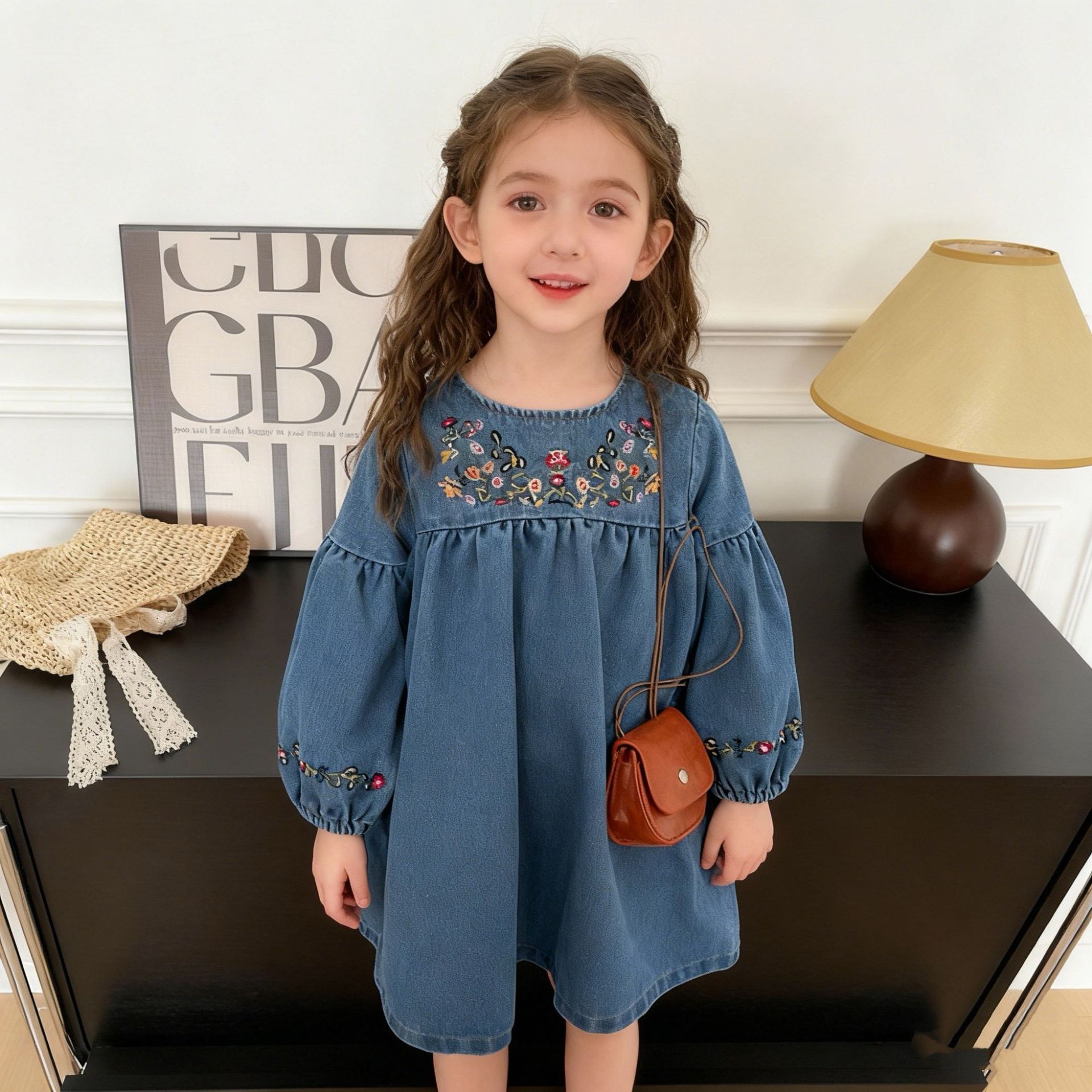 어린이 봄 가을 의류 신상품 2026 여아 소프트 데님 자수 원피스 긴팔 스커트 한국 스타일스토어 가기