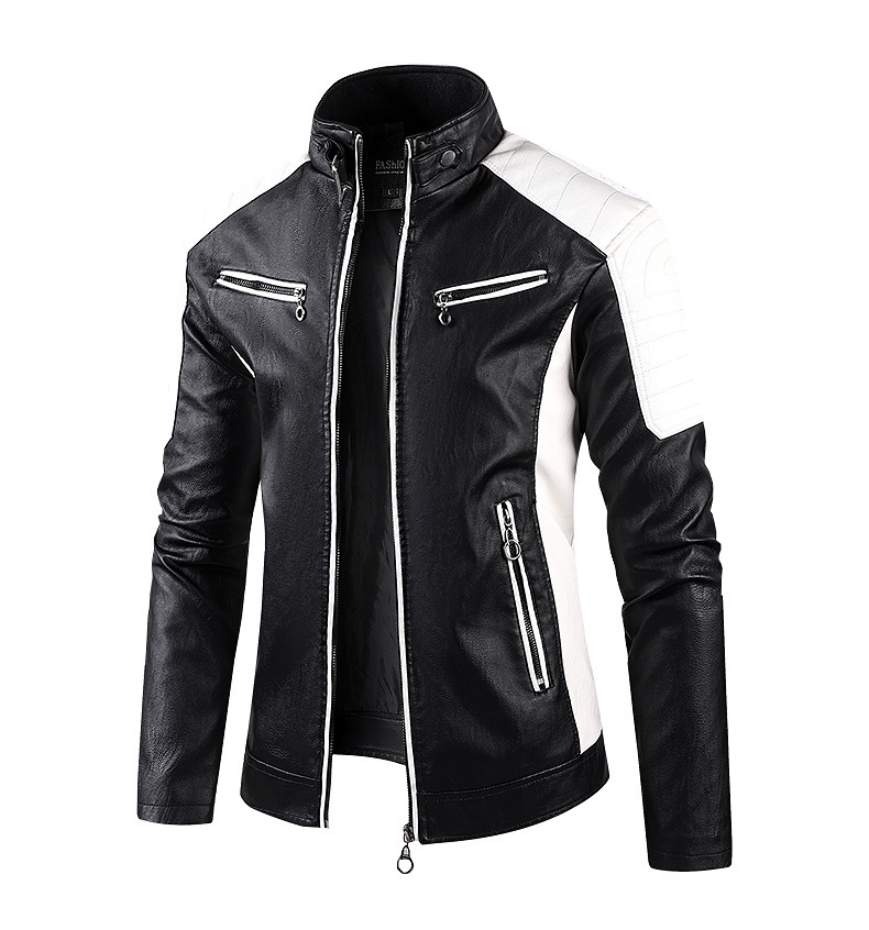 대외 무역 재고 새로운 2024 봄 록 남성 가죽 의류 패션 도시 핏 스탠드 칼라 캐주얼 PU 가죽 의류 패션