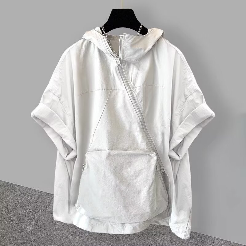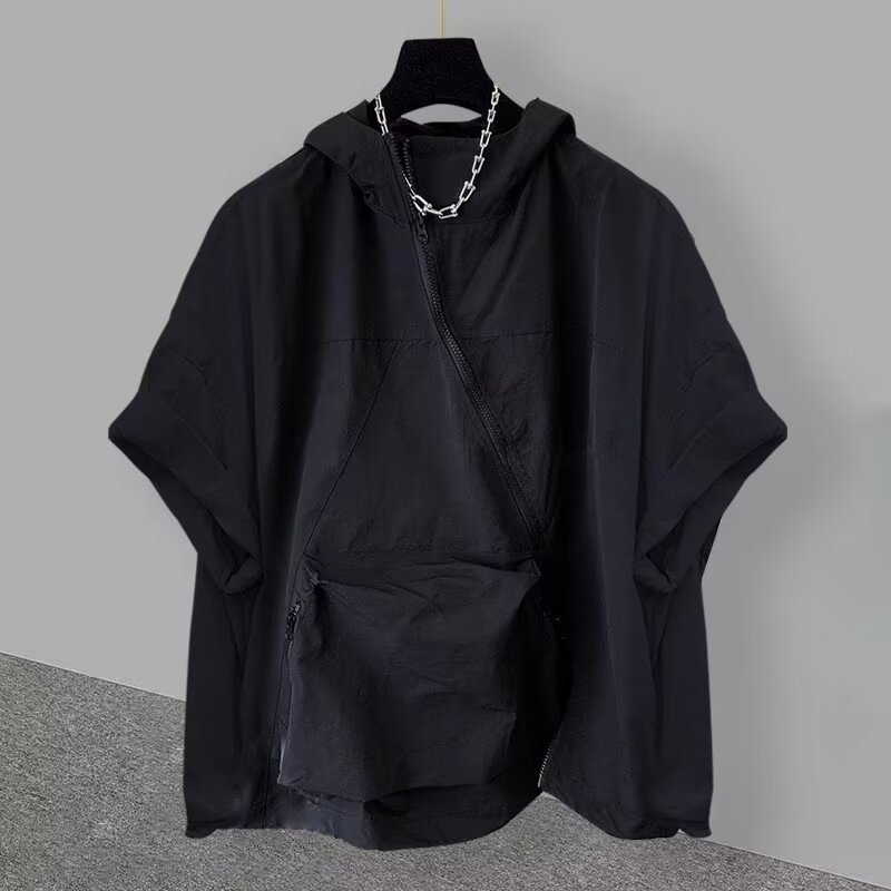지퍼 디자인 후드 반팔 티셔츠 남성 여름 한국 스타일의 트렌디 한 툴링 큰 포켓 반소매 티셔츠 패션 브랜드 느슨한