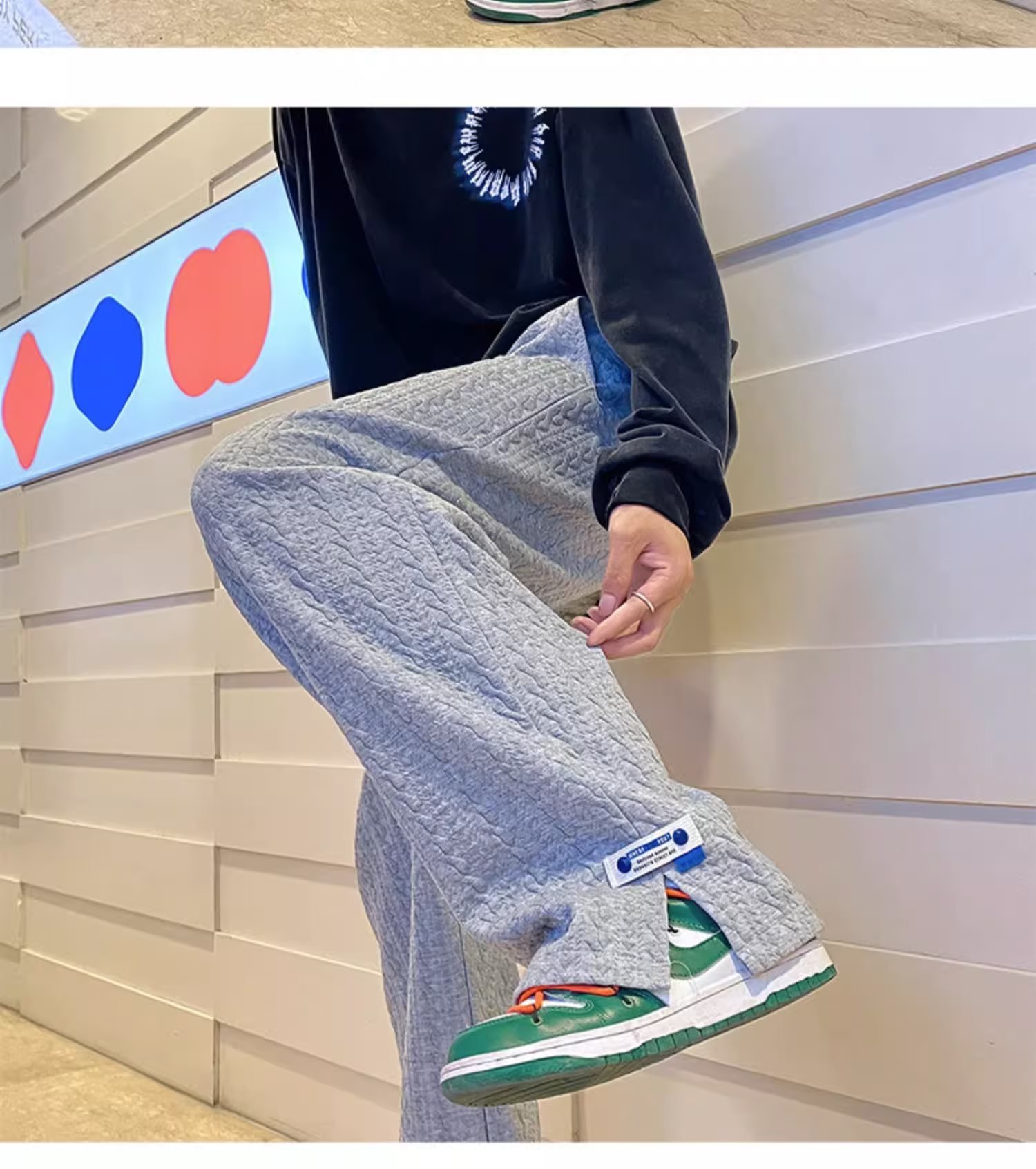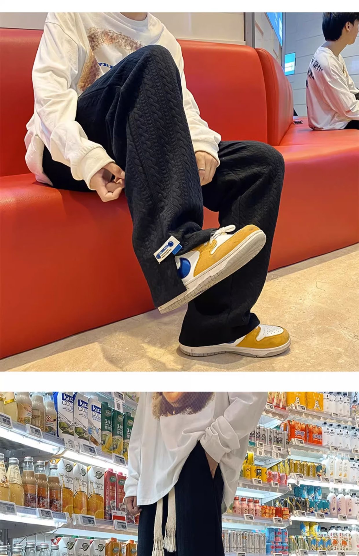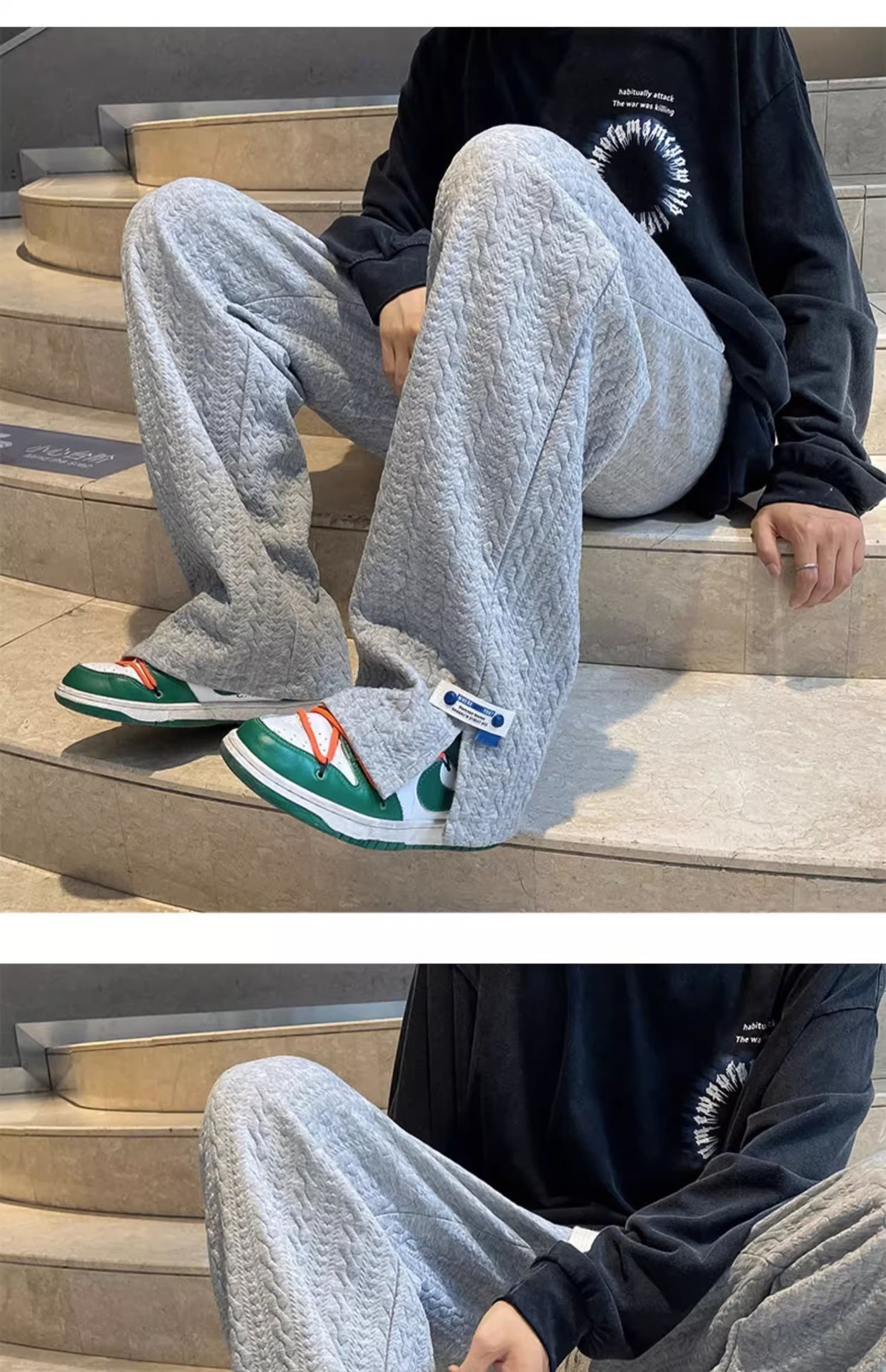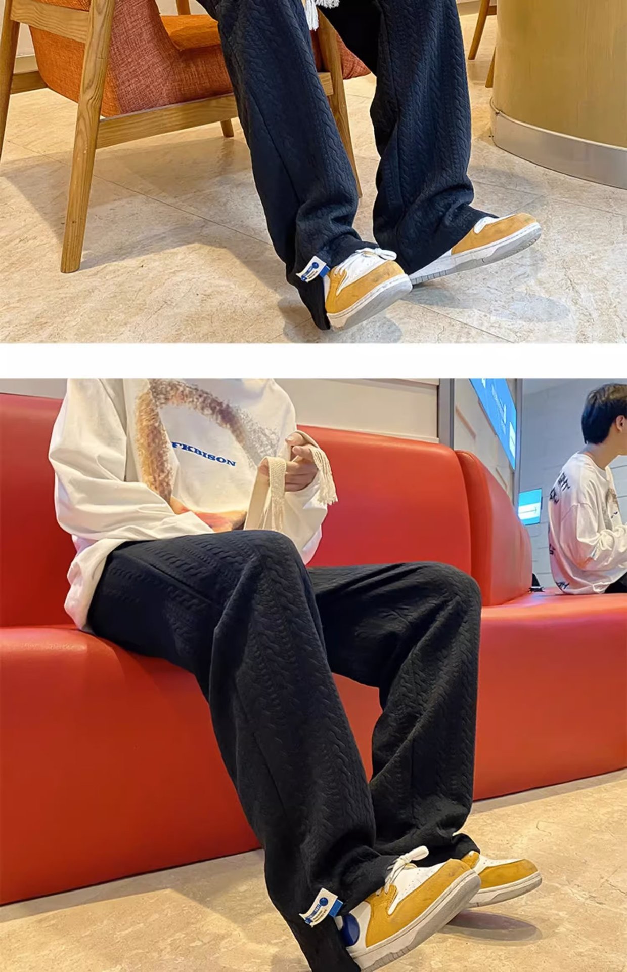 새로운 미국 자카드 남성 바지 봄과 여름 스트레이트 캐주얼 남성 바지 하이 스트리트, 유럽과 미국의 인기있는 와이드 레그 바지