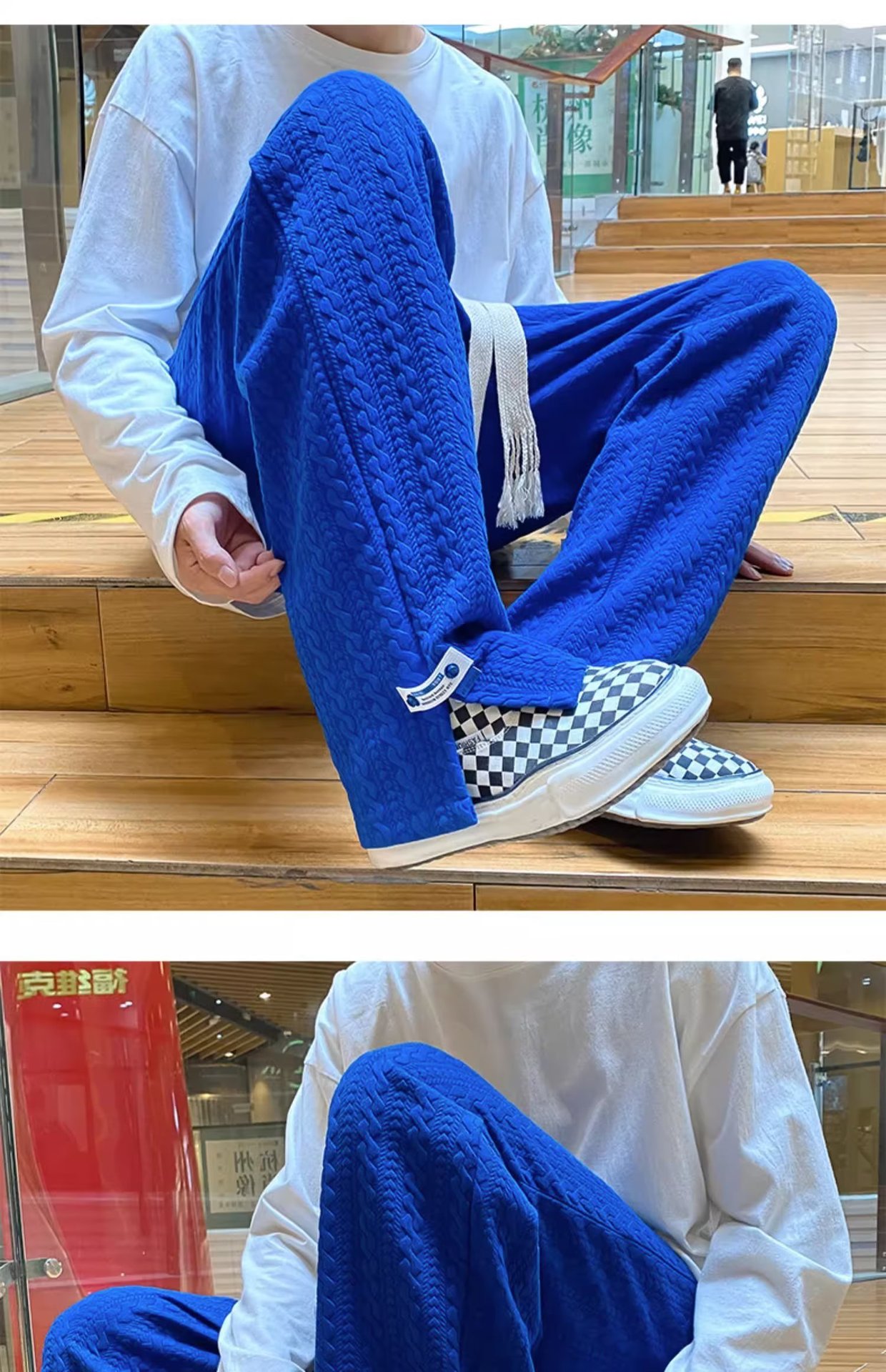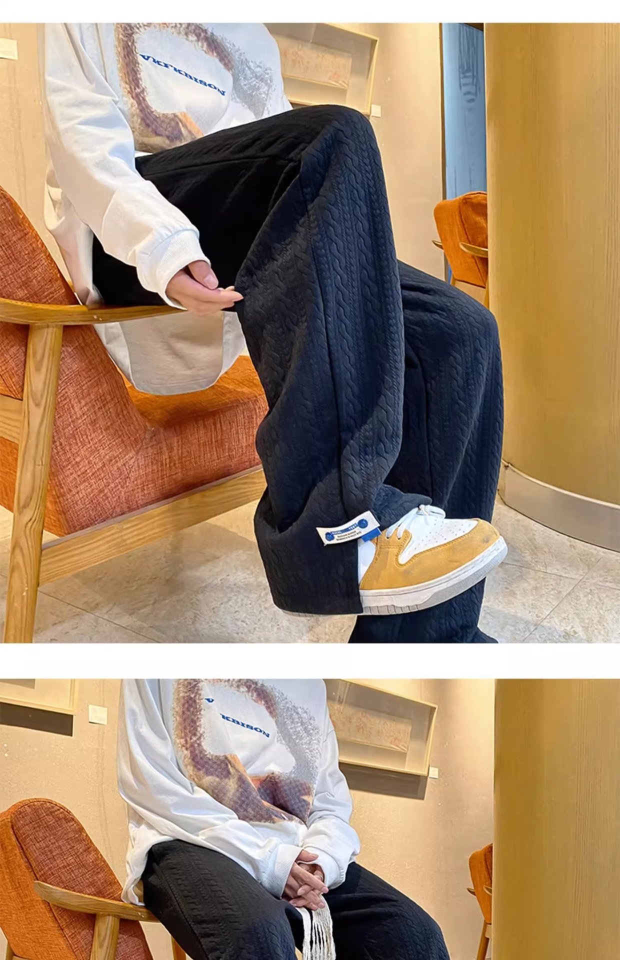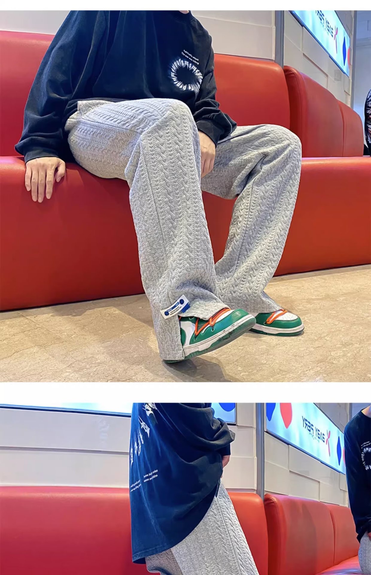 새로운 미국 자카드 남성 바지 봄과 여름 스트레이트 캐주얼 남성 바지 하이 스트리트, 유럽과 미국의 인기있는 와이드 레그 바지