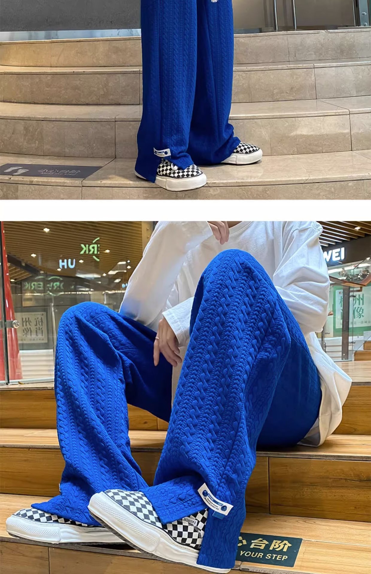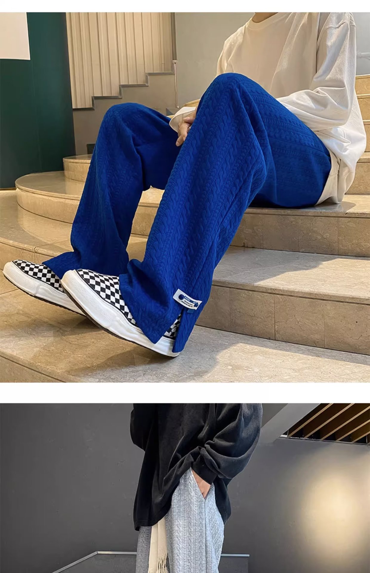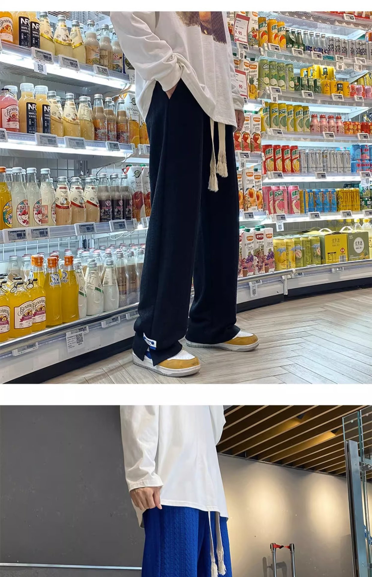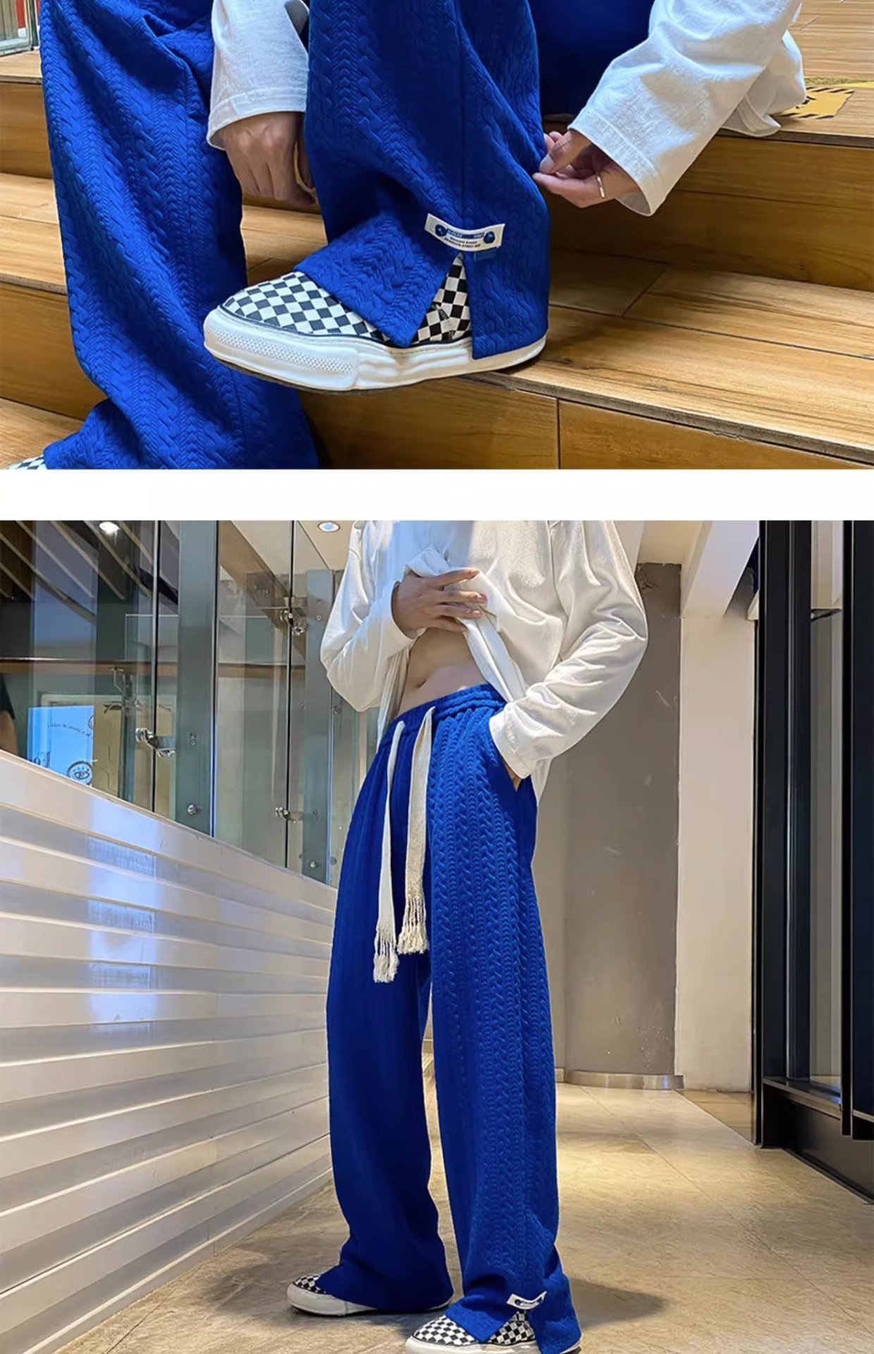 새로운 미국 자카드 남성 바지 봄과 여름 스트레이트 캐주얼 남성 바지 하이 스트리트, 유럽과 미국의 인기있는 와이드 레그 바지