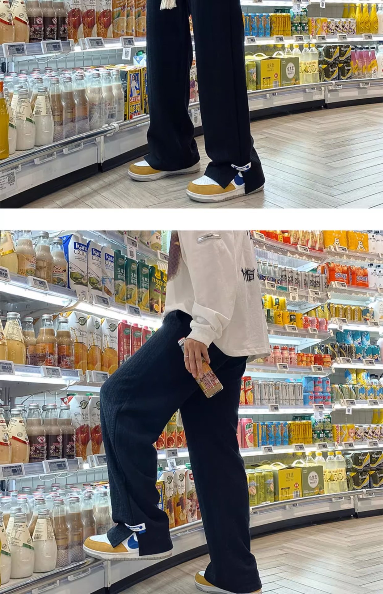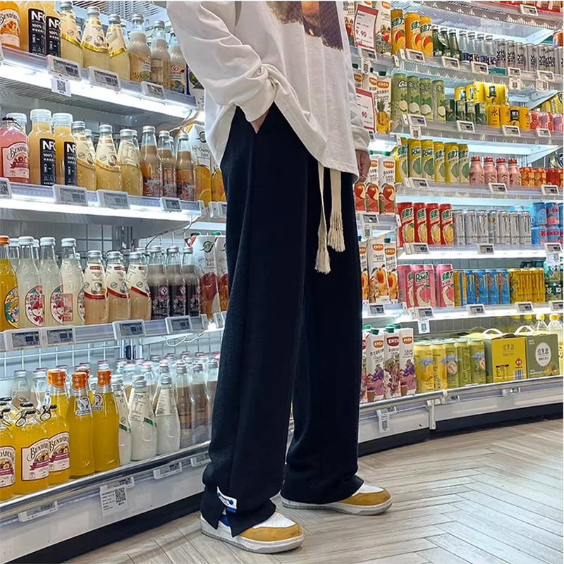 새로운 미국 자카드 남성 바지 봄과 여름 스트레이트 캐주얼 남성 바지 하이 스트리트, 유럽과 미국의 인기있는 와이드 레그 바지스토어 가기