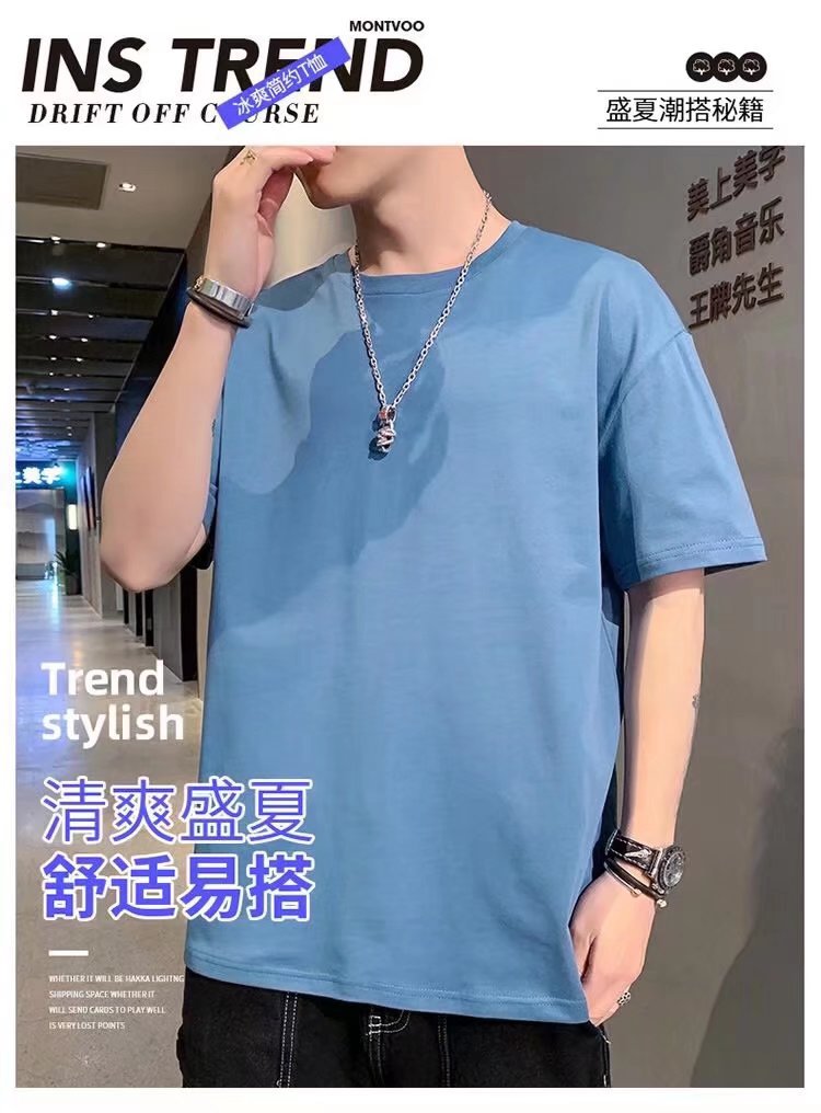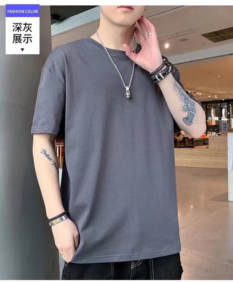 패션 트렌디 브랜드 티셔츠 일본식 트렌디 한 올 매치 쇼트 슬리브 남성용 느슨한 청소년 인기 새로운 트렌디 한 라운드 넥 여름 2024스토어 가기