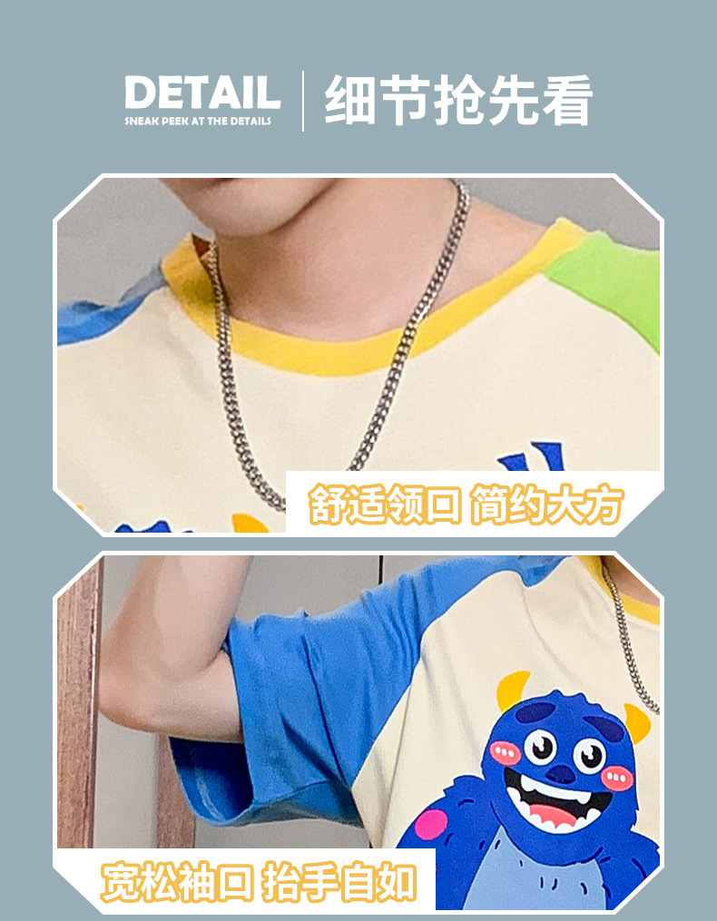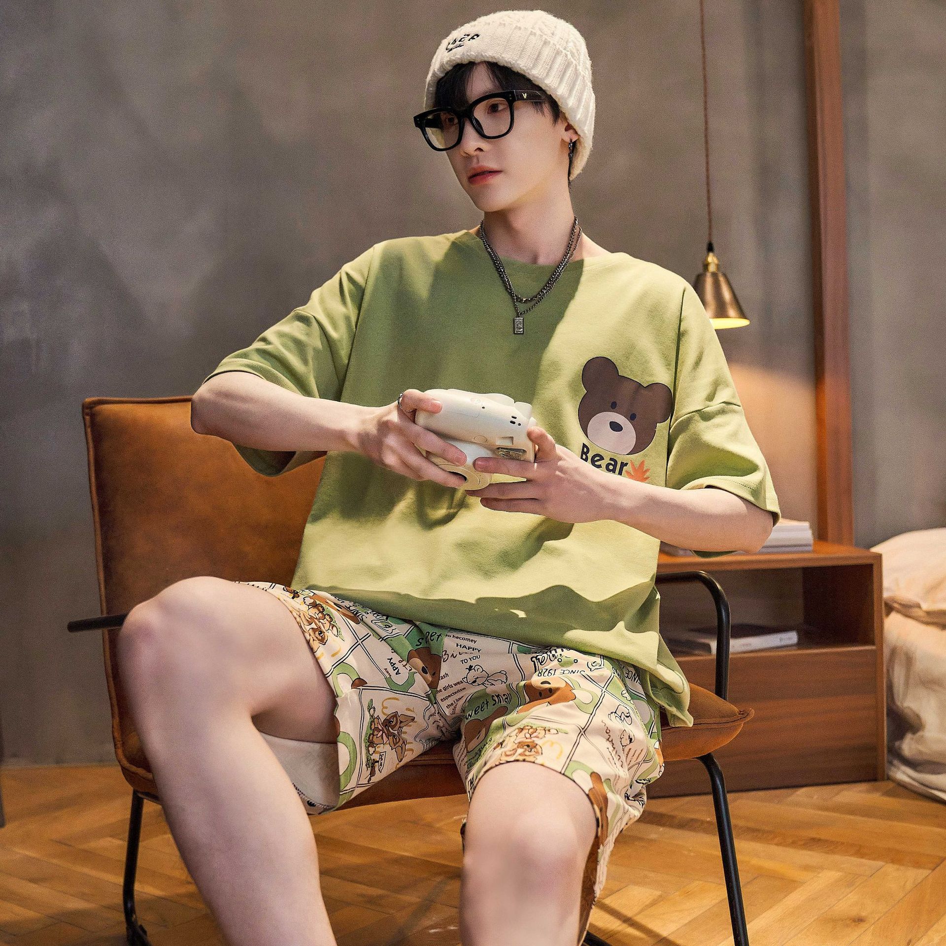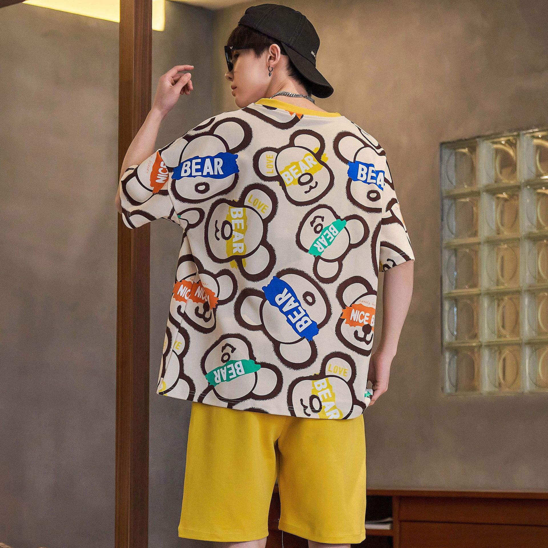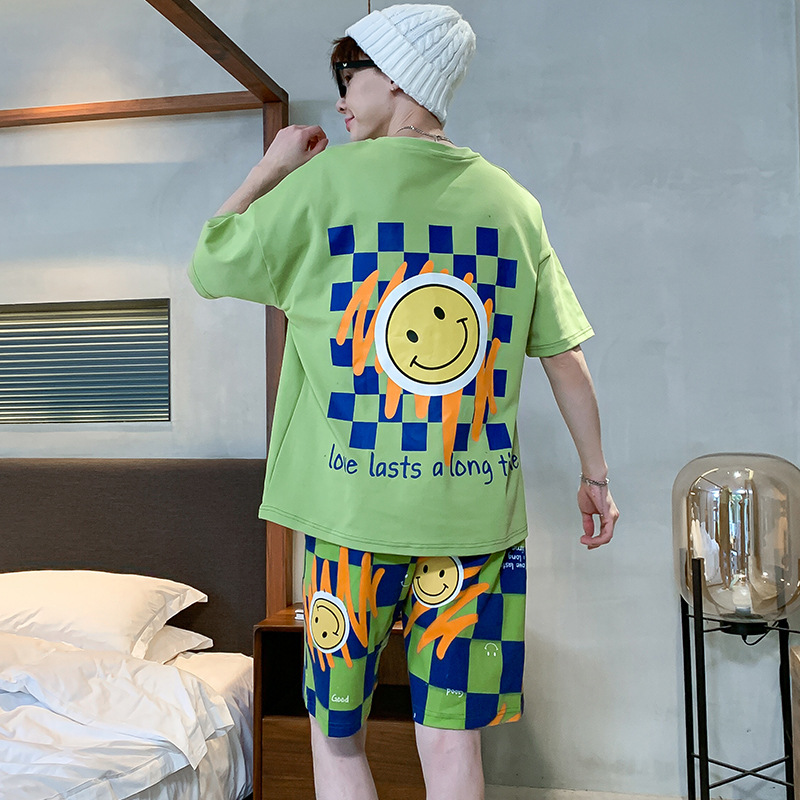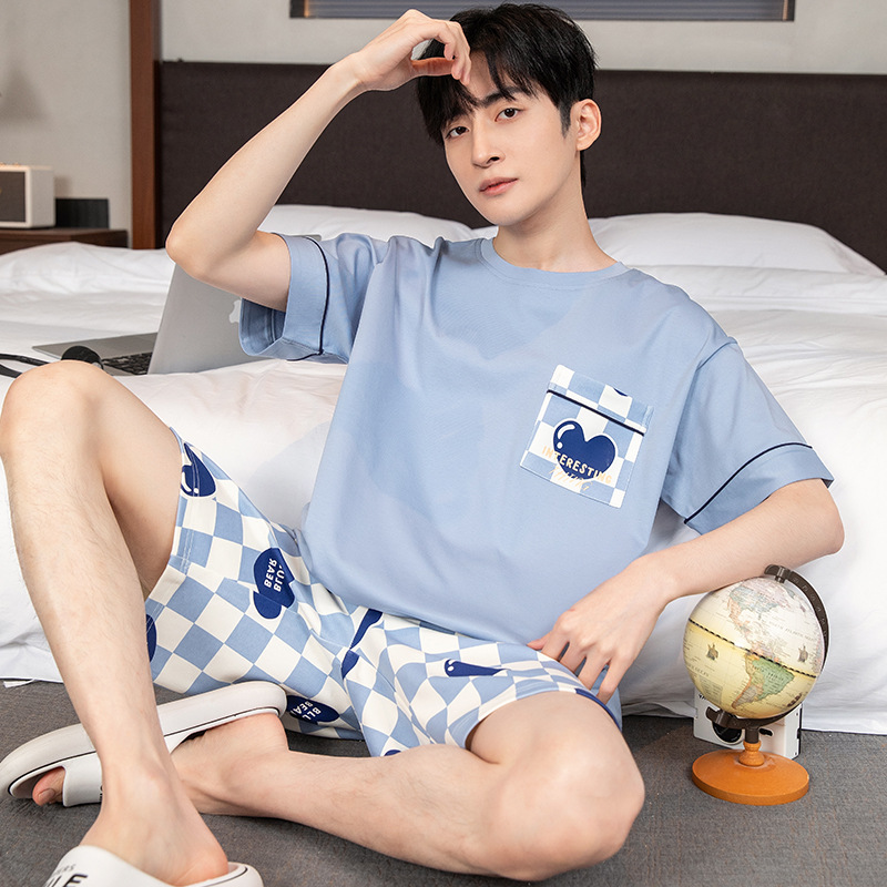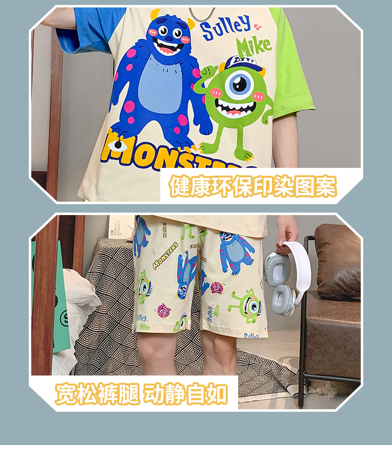 2024 새로운 여름 잠옷 남성의면 짧은 소매 얇은 만화 홈 착용 여름 느슨한 세트 패션 밖에서 착용 할 수 있습니다스토어 가기