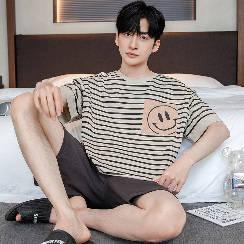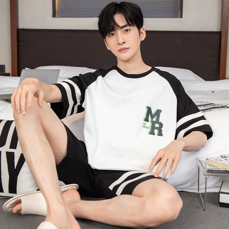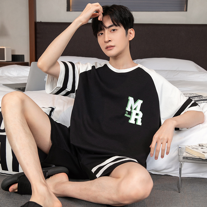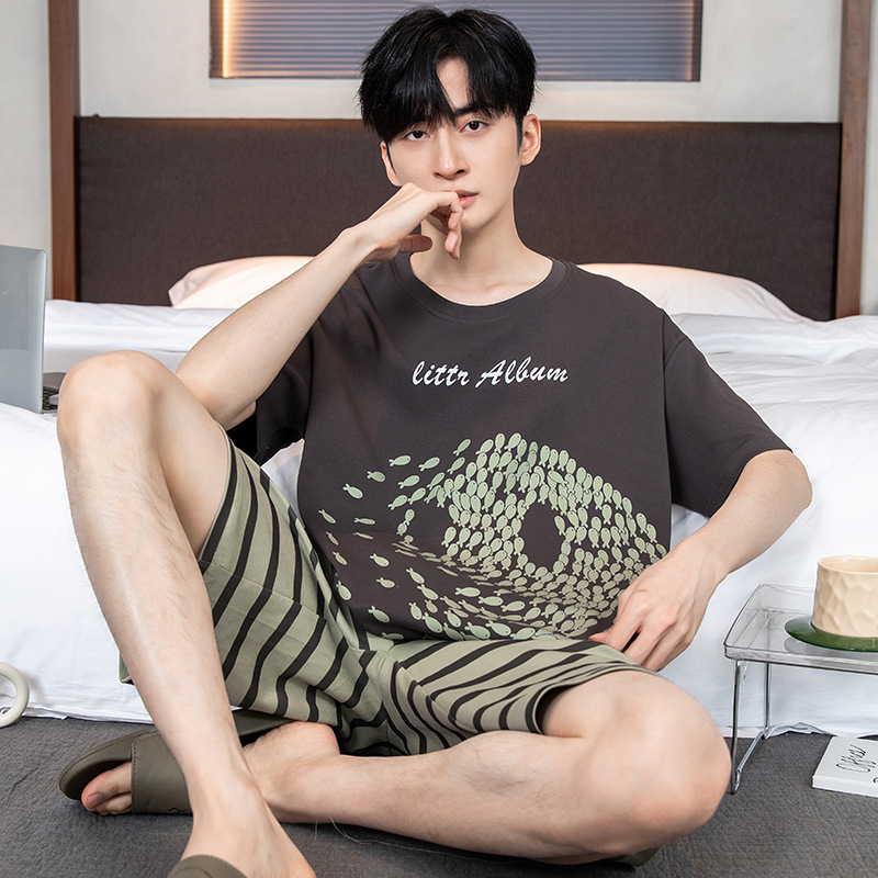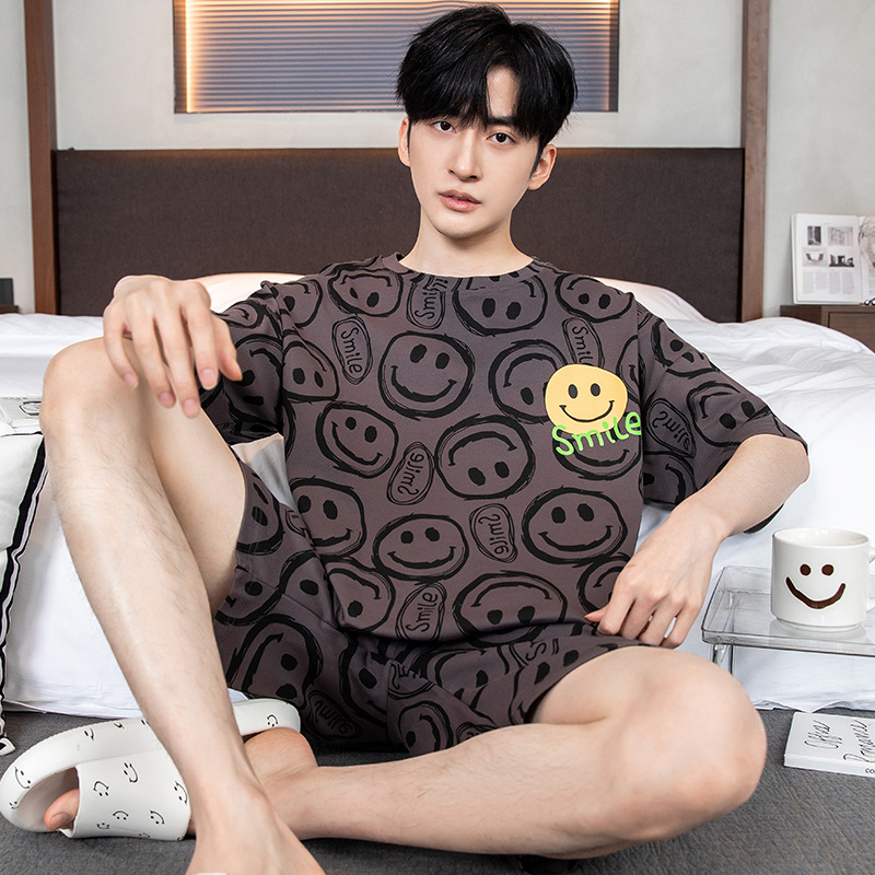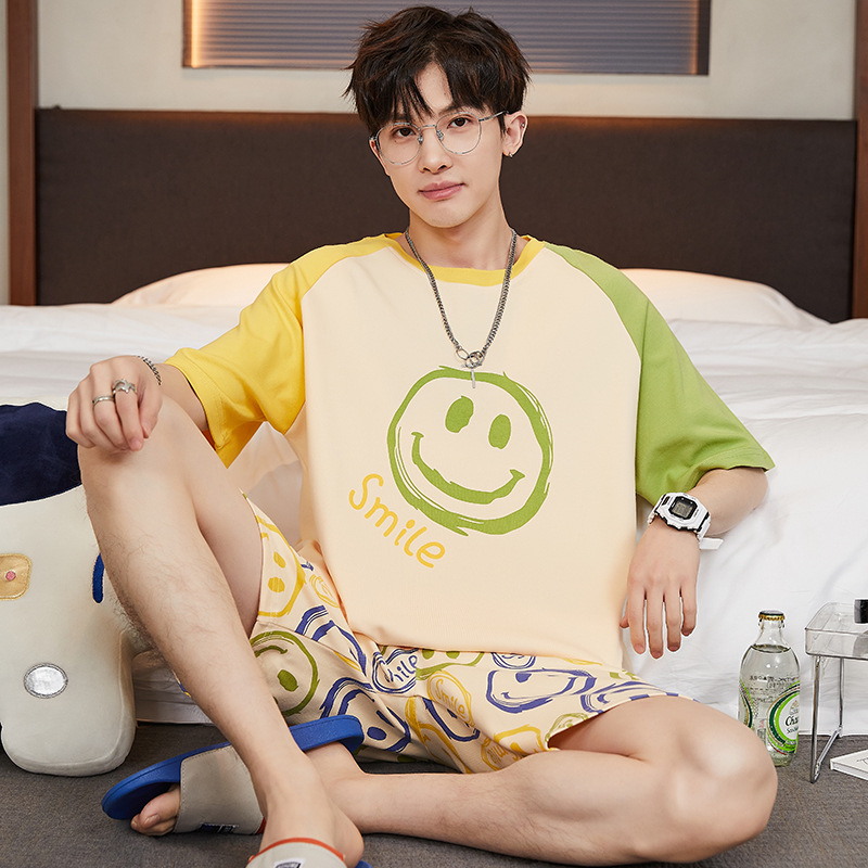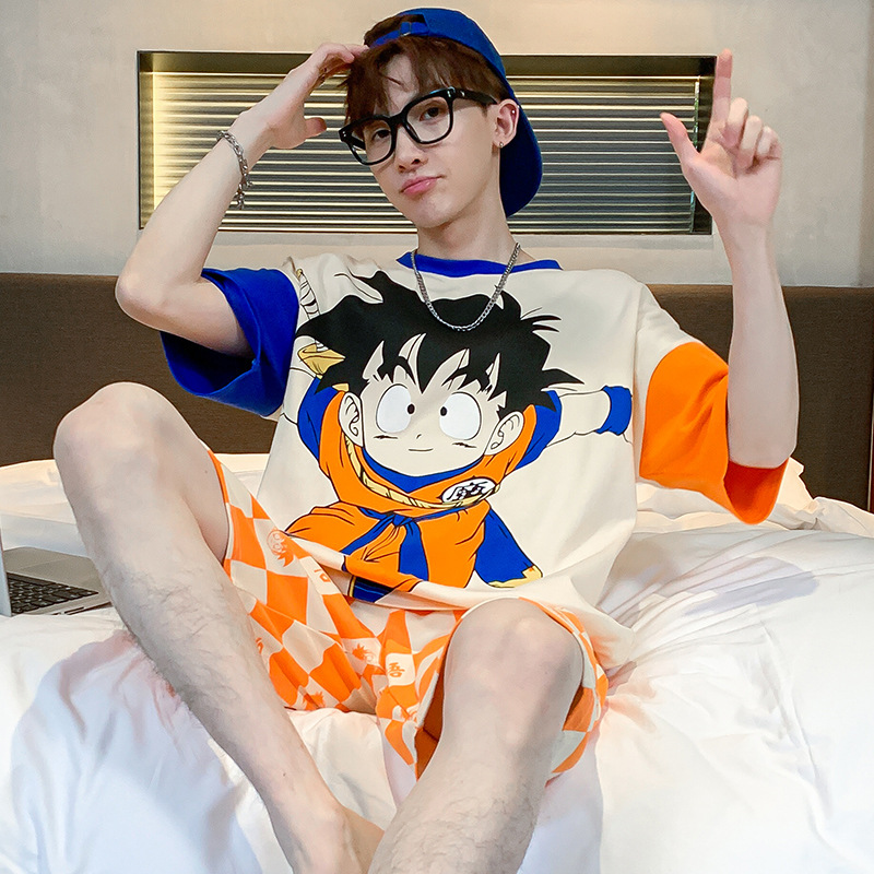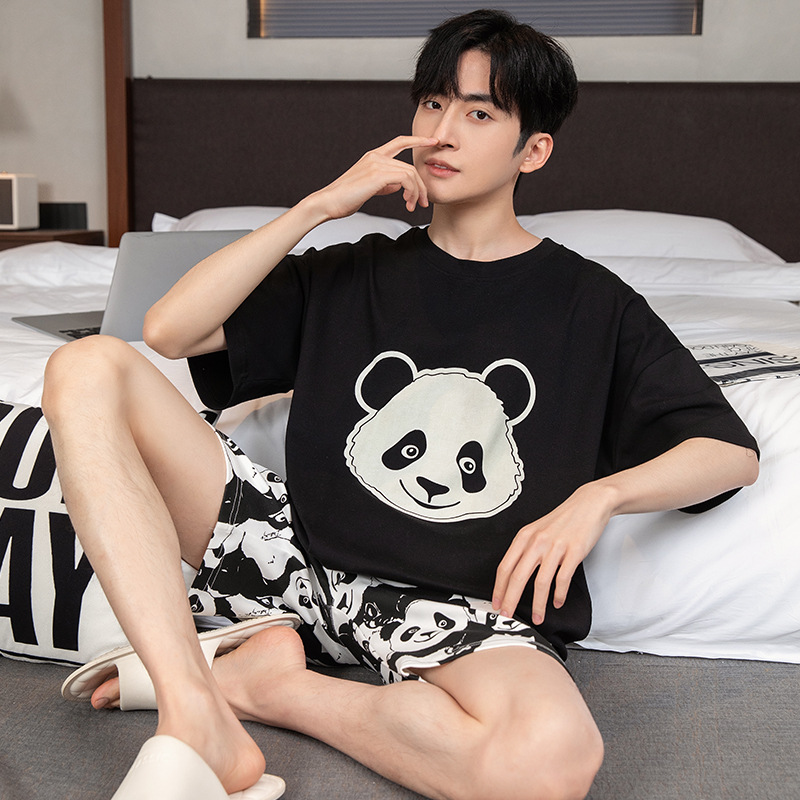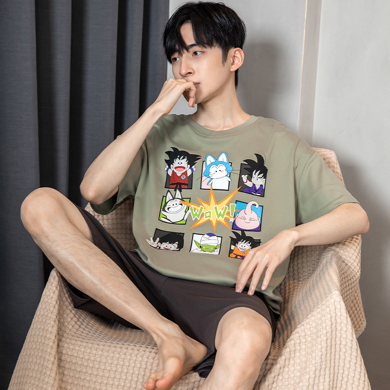2024 새로운 여름 잠옷 남성의면 짧은 소매 얇은 만화 홈 착용 여름 느슨한 세트 패션 밖에서 착용 할 수 있습니다