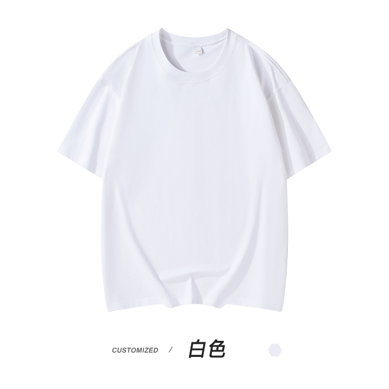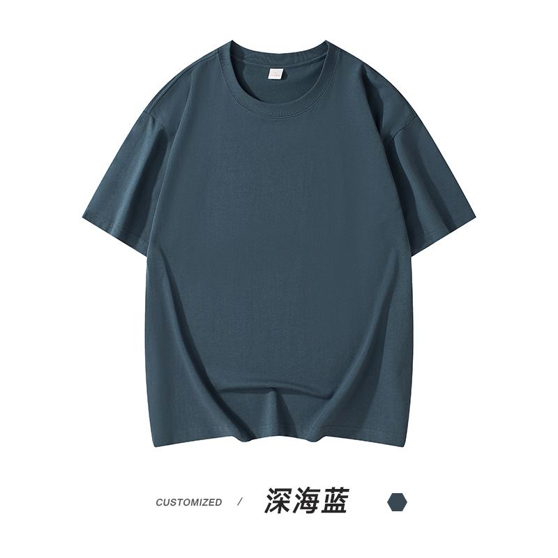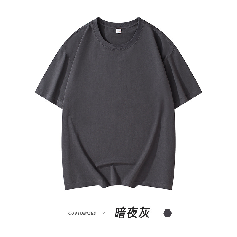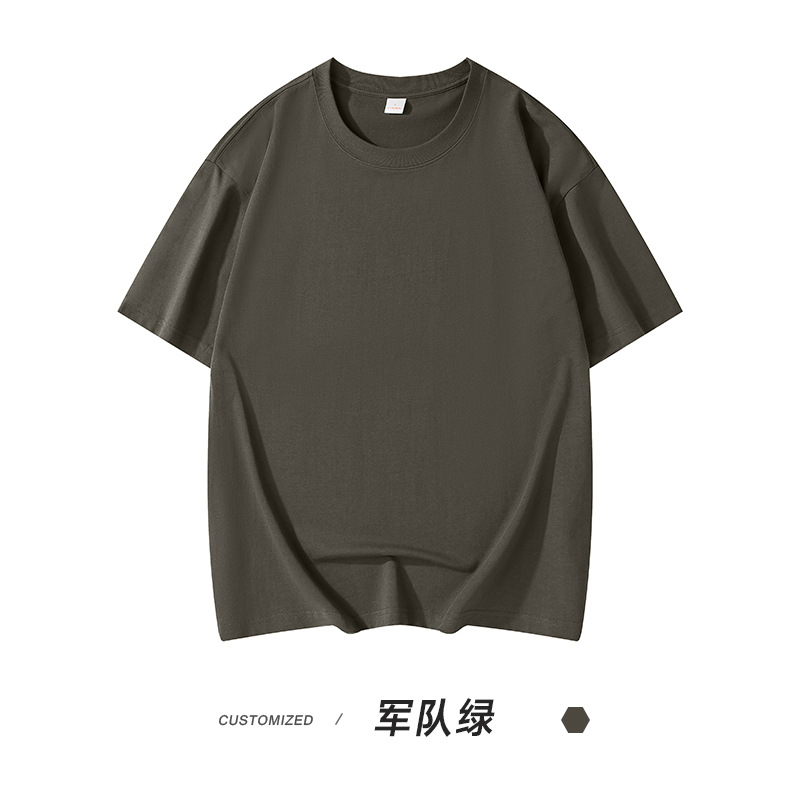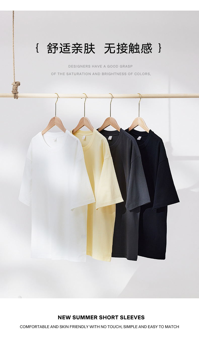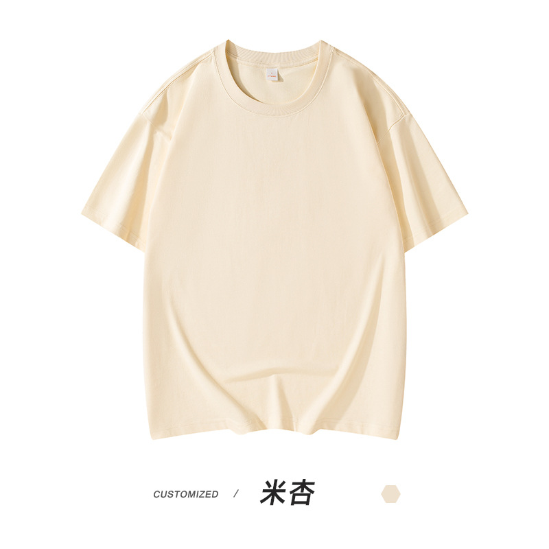 300g 헤비 패션 브랜드 남성용 단색 느슨한 오프 숄더 짧은 소매면 캐주얼 내부 와이드 남성용 라운드 넥 티셔츠스토어 가기