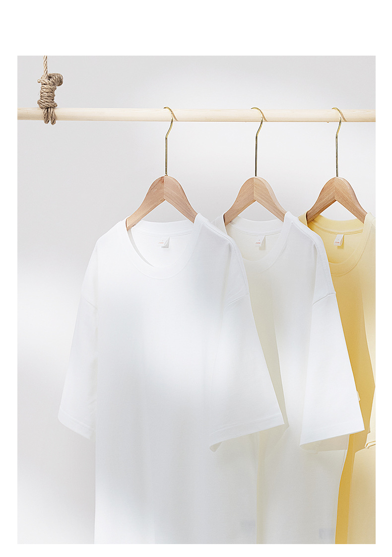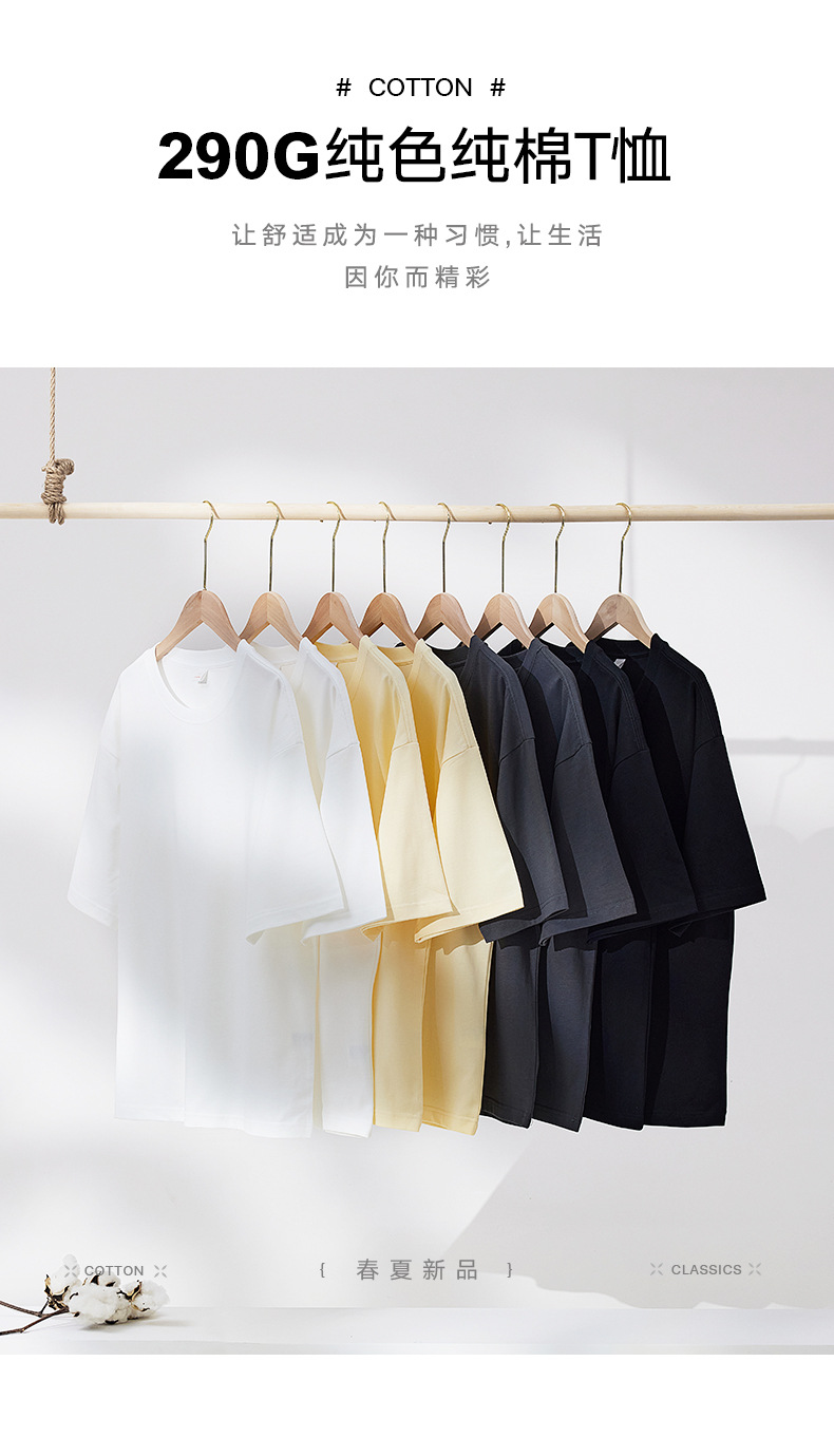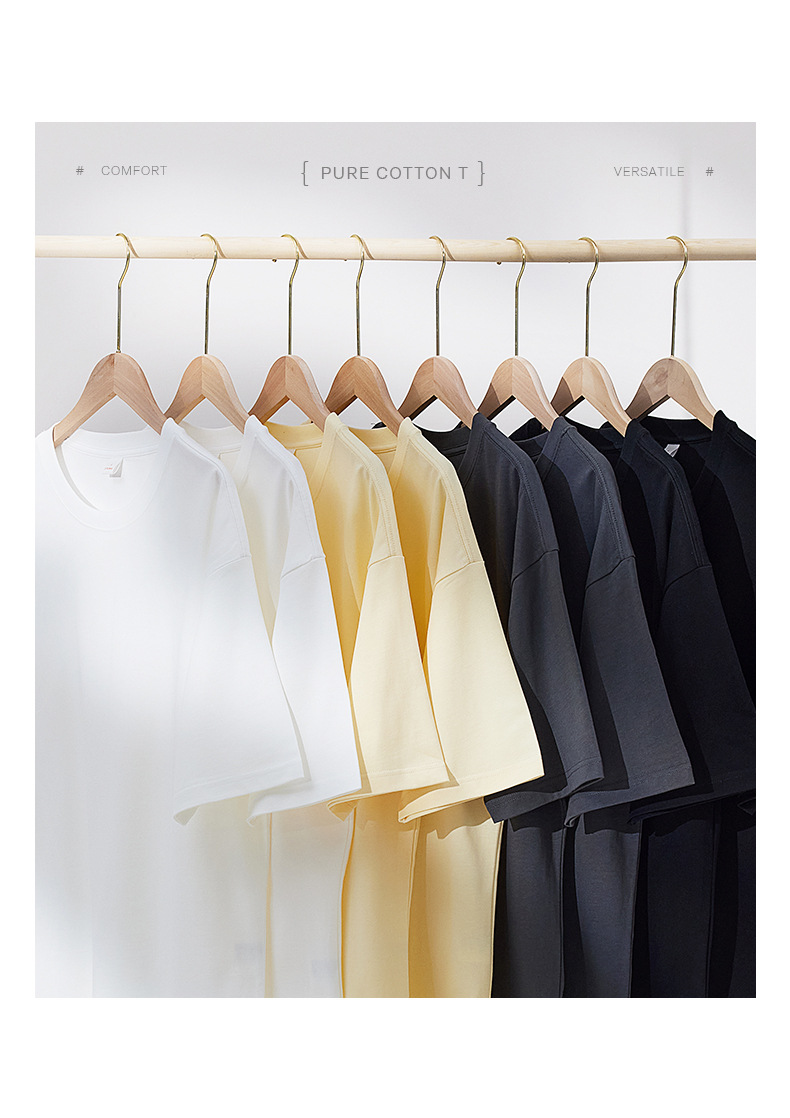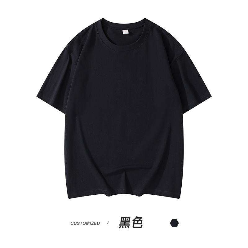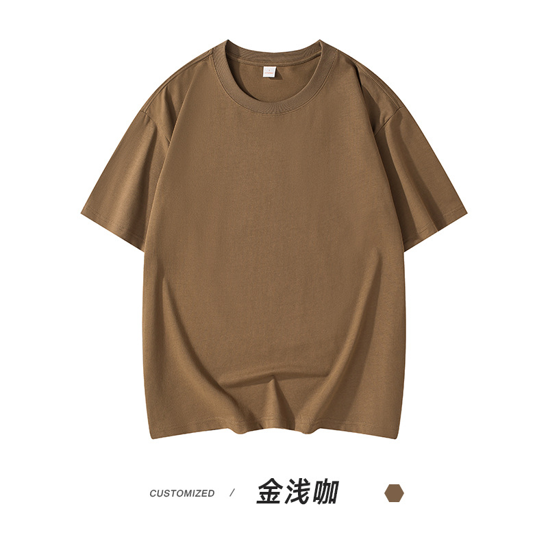 300g 헤비 패션 브랜드 남성용 단색 느슨한 오프 숄더 짧은 소매면 캐주얼 내부 와이드 남성용 라운드 넥 티셔츠스토어 가기