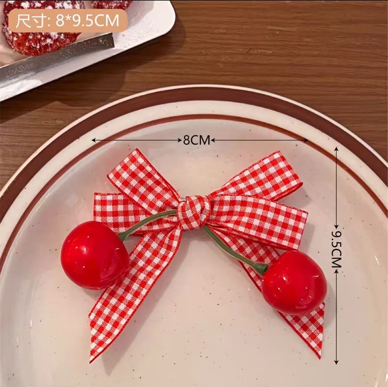 봄과 여름 새로운 달콤한 체리 머리핀 귀여운 소녀 덕빌 클립 소녀 심장 앞머리 클립 뒤 머리 옆 클립