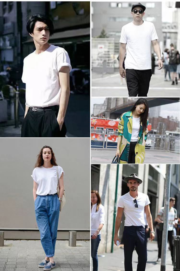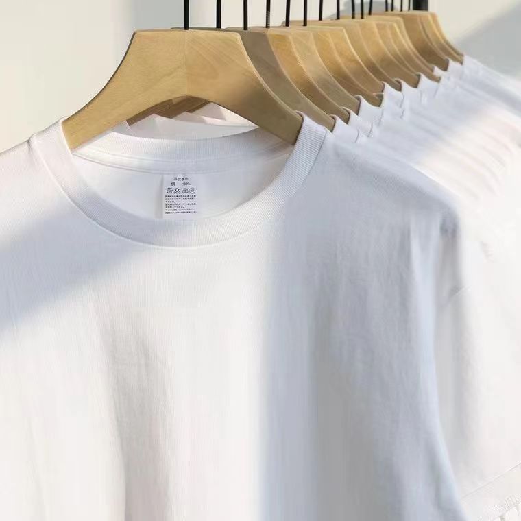 220g 코튼 헤비 티셔츠 일본 남성과 여성의 반팔 단색 흰색 둥근 목 빈 셔츠 남성 패션 브랜드 도매스토어 가기