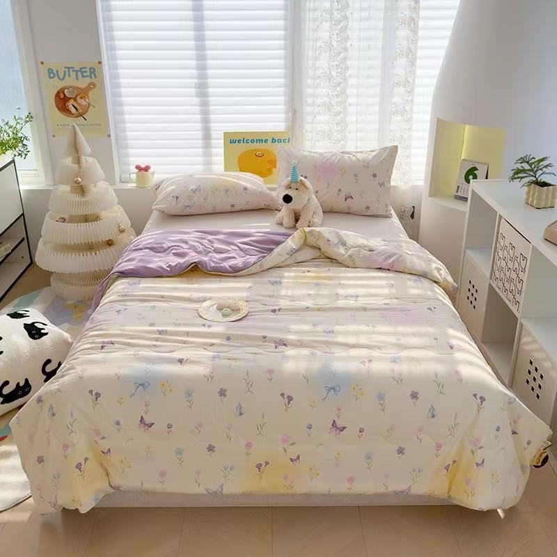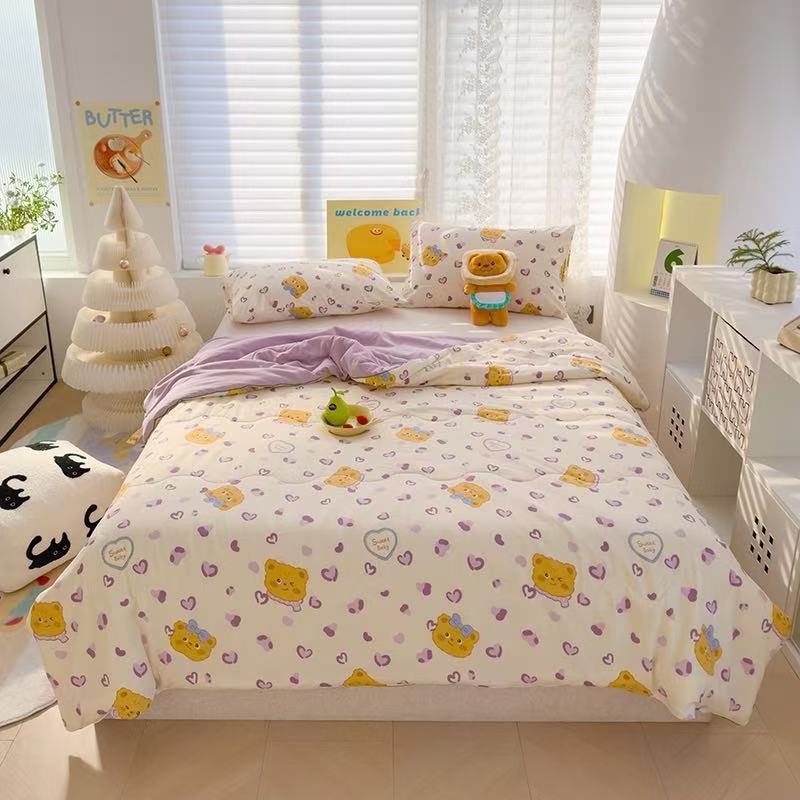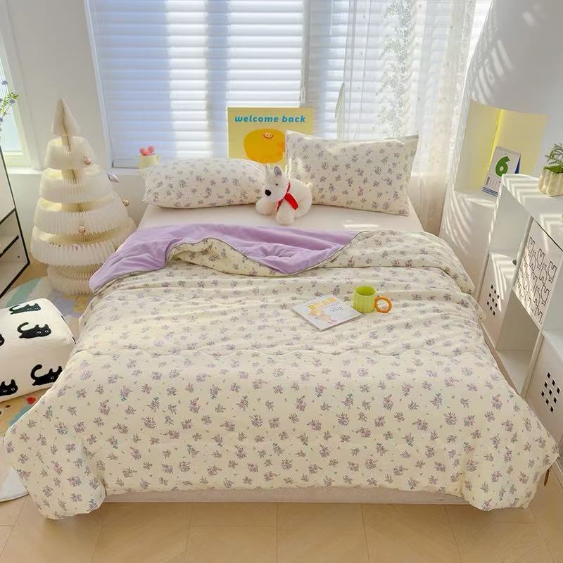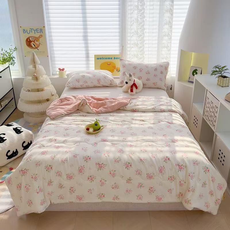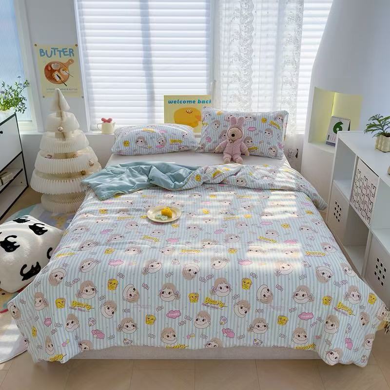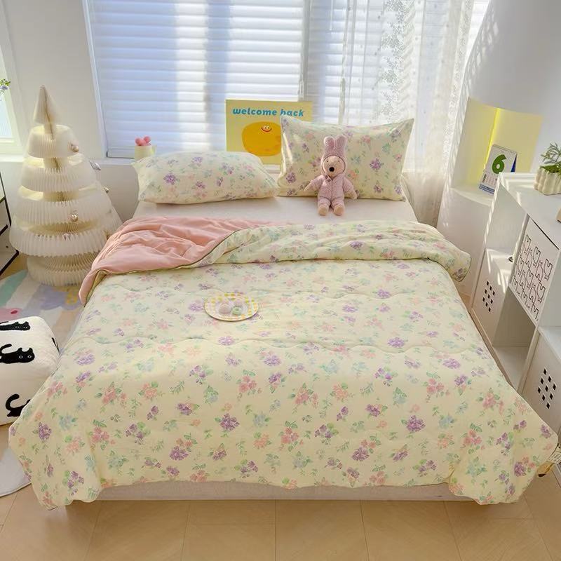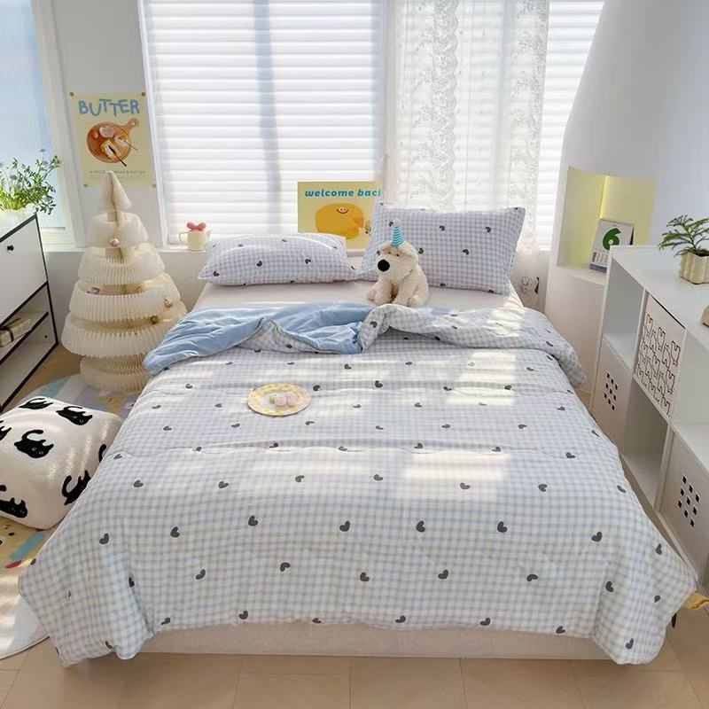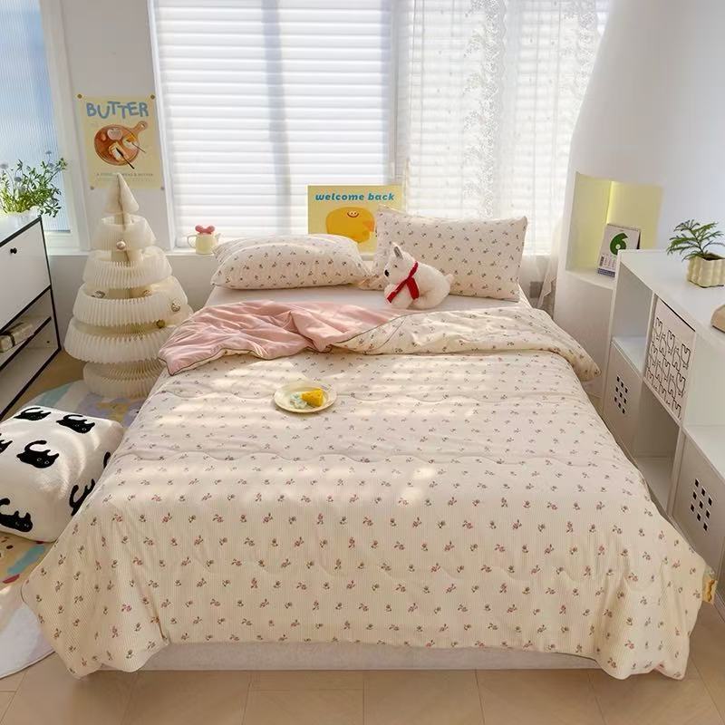 인스타 감성의 엄마와 아기에게 안전한 워싱 코튼 이중 거즈 여름 이불, 더블 에어컨 이불, 어린이용 얇은 이불심, 세탁기 사용 가능하고 부드러운 소재