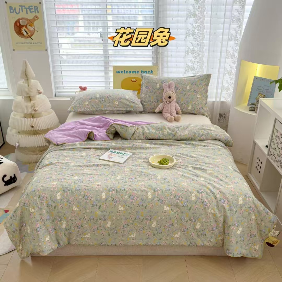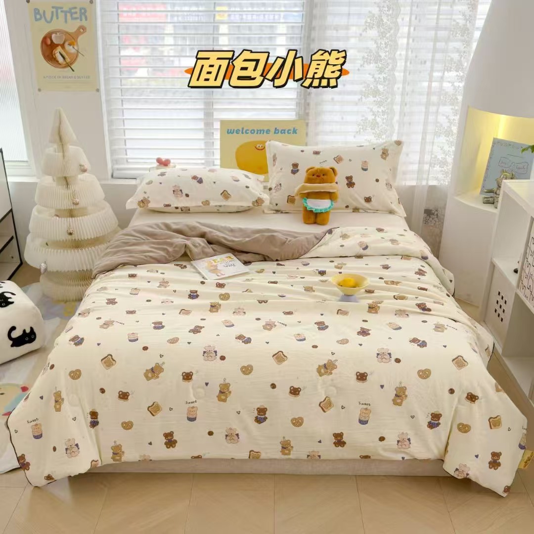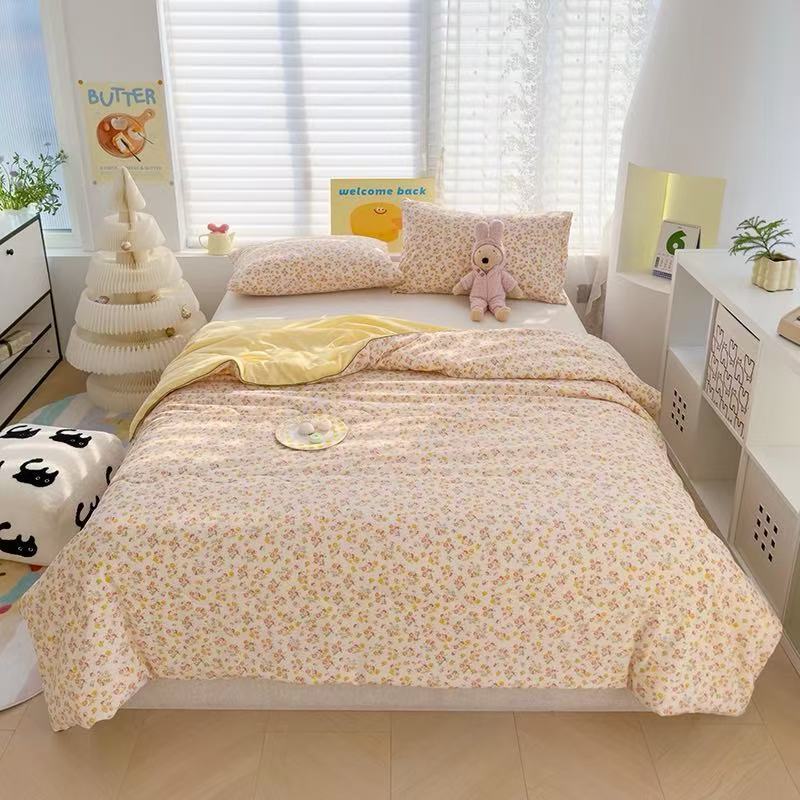 인스타 감성의 엄마와 아기에게 안전한 워싱 코튼 이중 거즈 여름 이불, 더블 에어컨 이불, 어린이용 얇은 이불심, 세탁기 사용 가능하고 부드러운 소재스토어 가기