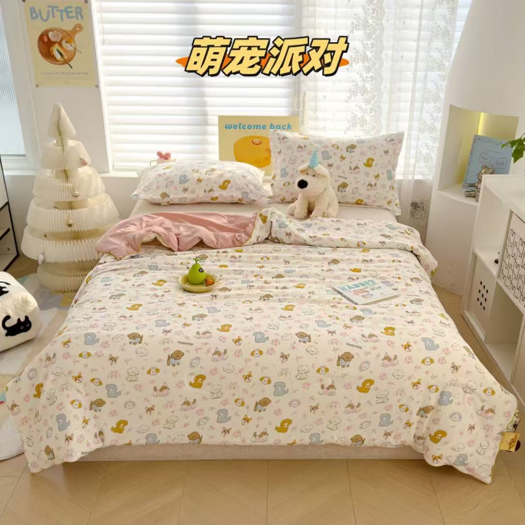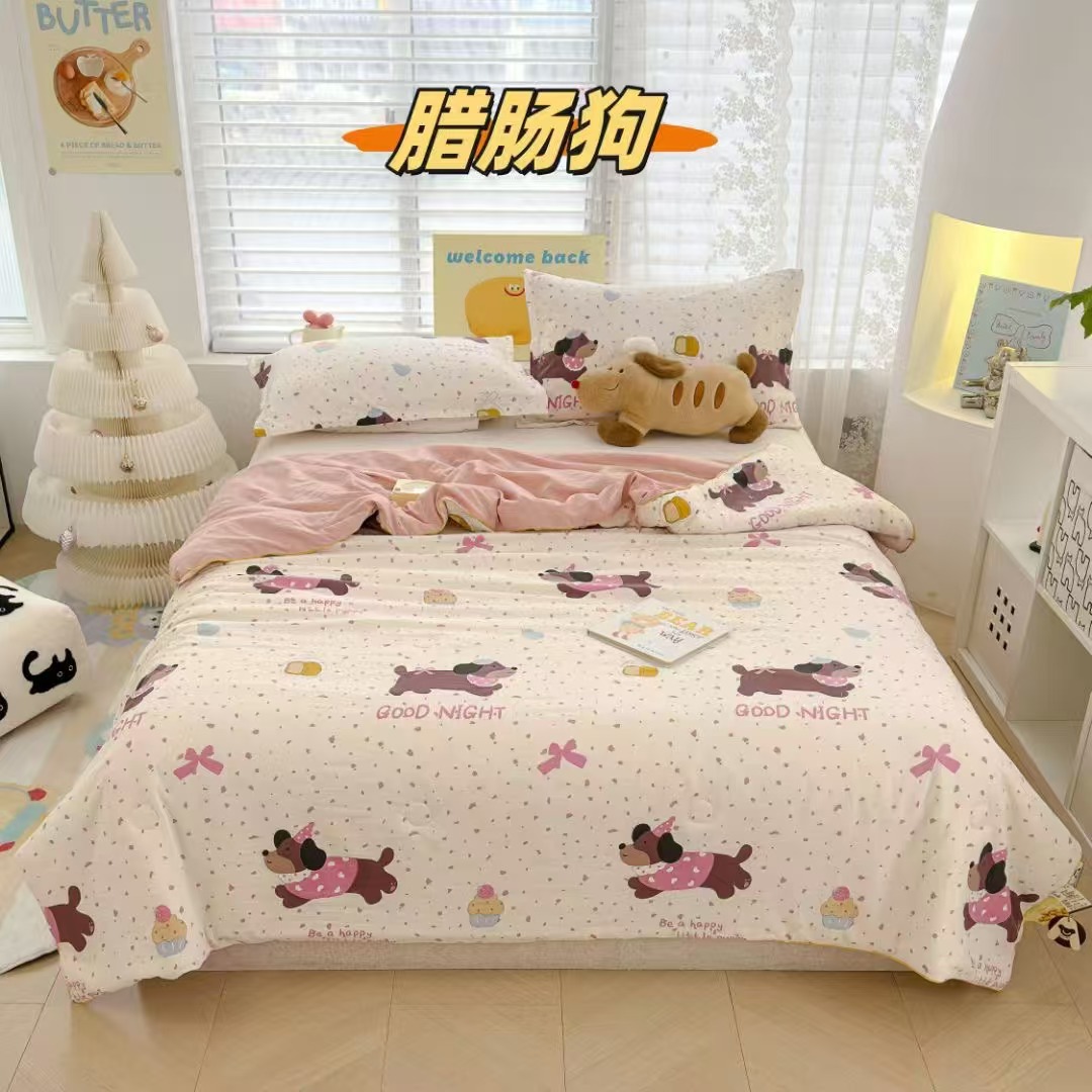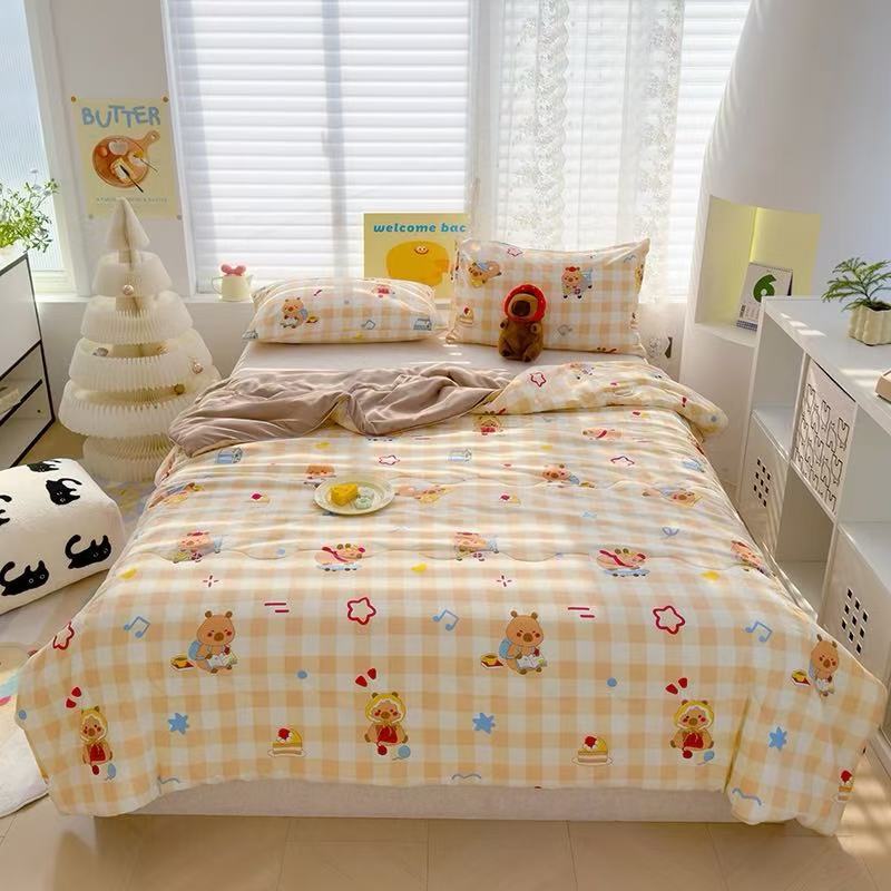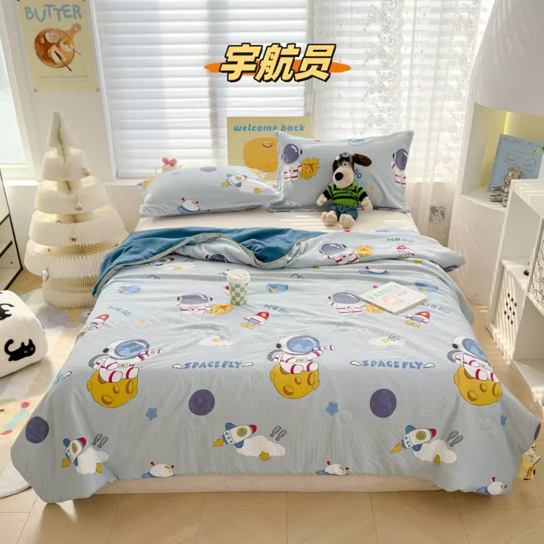 인스타 감성의 엄마와 아기에게 안전한 워싱 코튼 이중 거즈 여름 이불, 더블 에어컨 이불, 어린이용 얇은 이불심, 세탁기 사용 가능하고 부드러운 소재스토어 가기