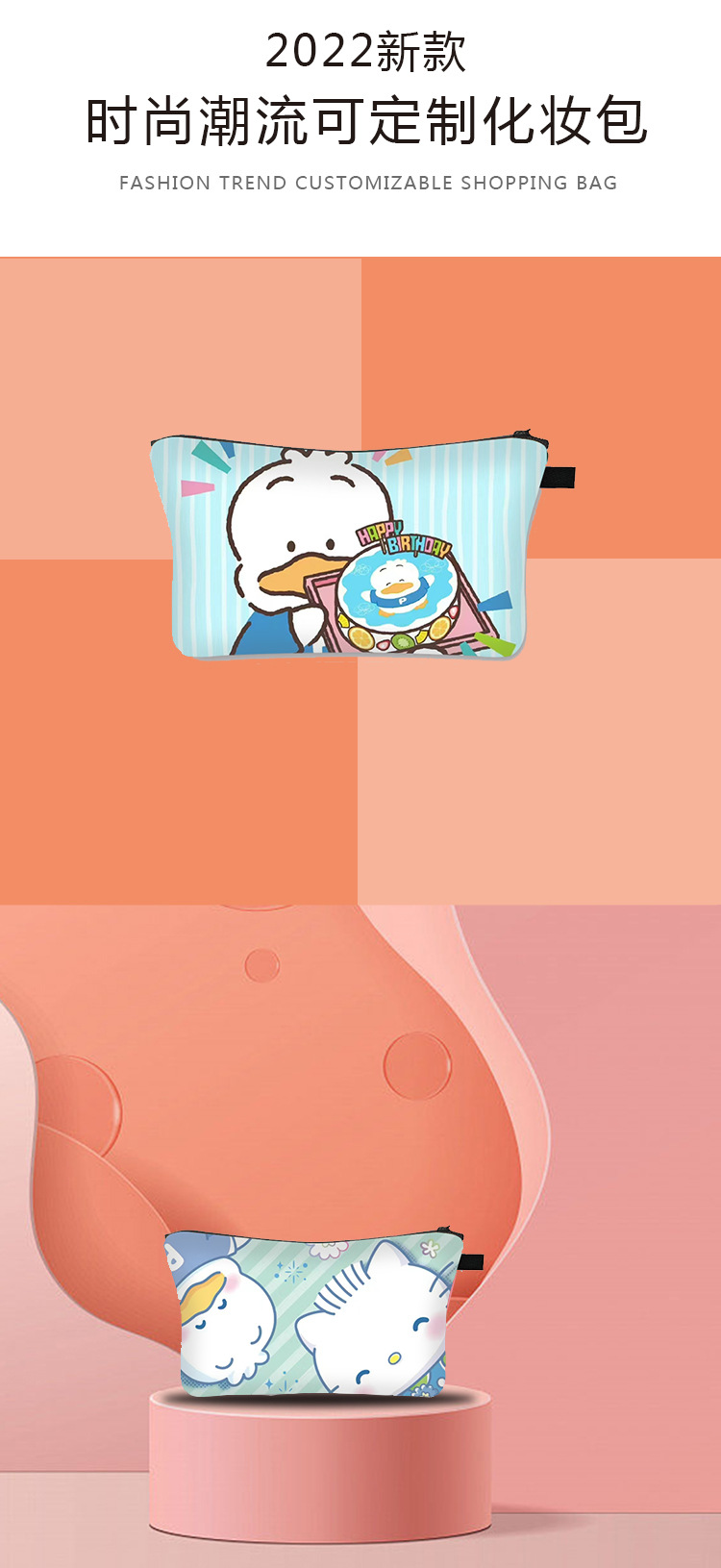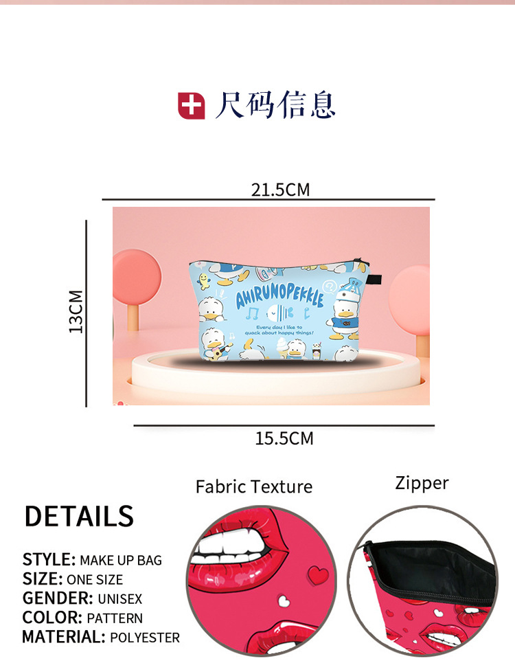 新款三丽欧贝克鸭化妆包卡通ins风涤纶收纳包大容量便携式洗漱包