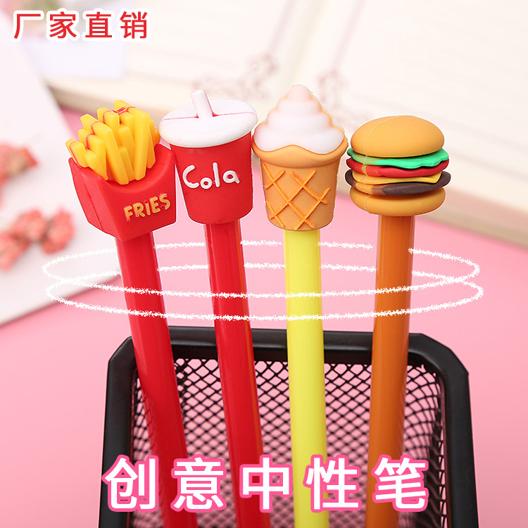 만화 감자 튀김 콜라 아이스크림 햄버거 젤 펜 창조적 인 학생 문구 물 펜 사무실 용품 서명 펜스토어 가기