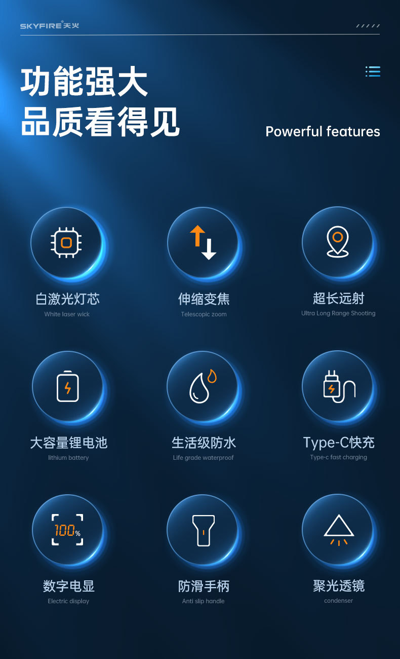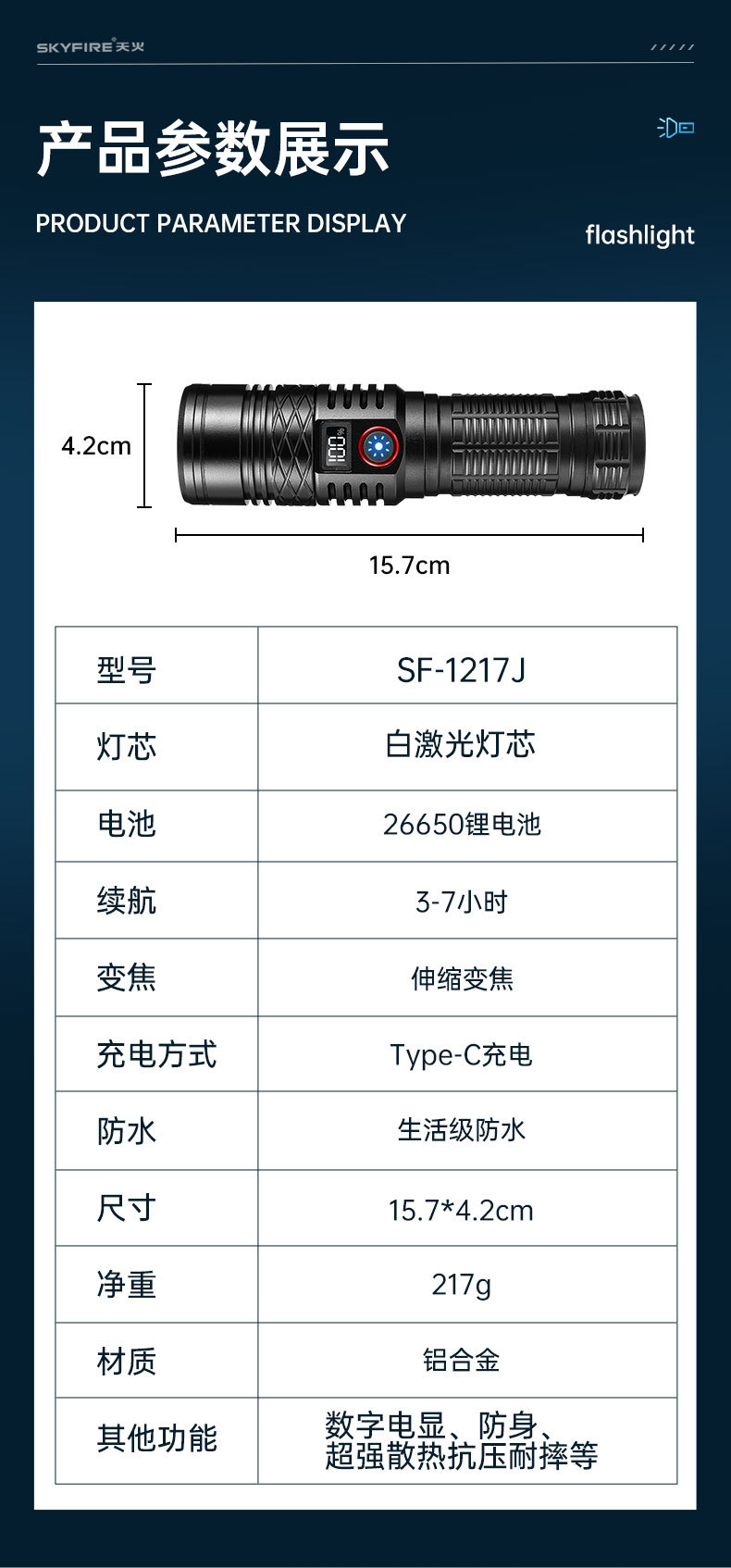 • SF-SD-1217J 블랙 디지털 디스플레이 화이트 레이저 손전등 럭셔리 구성