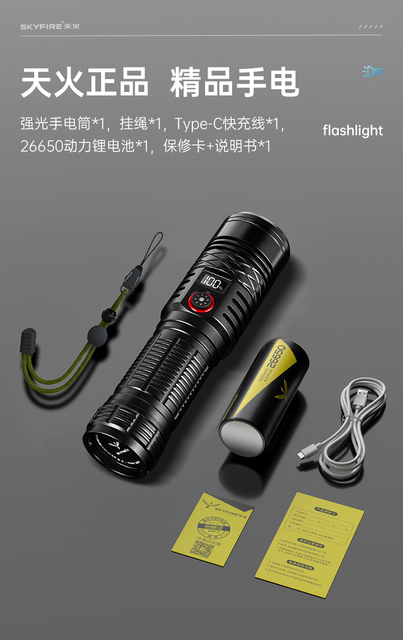• SF-SD-1217J 블랙 디지털 디스플레이 화이트 레이저 손전등 표준 구성