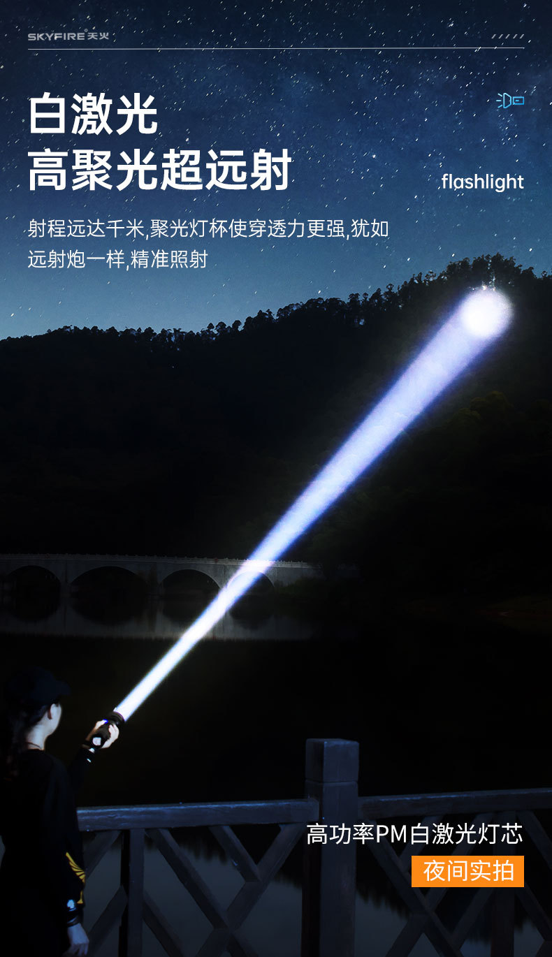 Tianhuo 슈퍼 밝은 손전등 야외 장거리 흰색 레이저 홈 캠핑 휴대용 초장 내구성 조명 램프스토어 가기