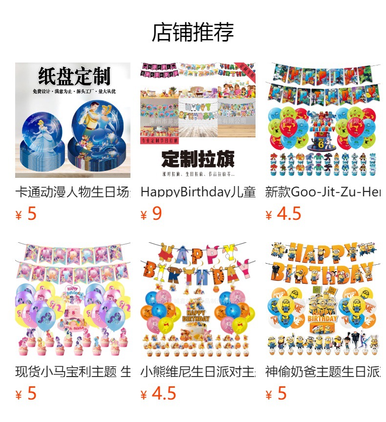 전문적으로 디자인된 생일 장면 레이아웃, 파티 용품, 장식, 공장 직접 공급 깃발 풍선, 깃발 배너 세트스토어 가기