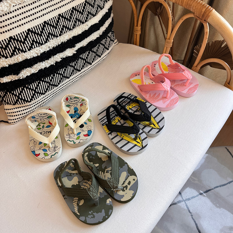 2024 여름 새로운 어린이 플립 플롭 한국식 만화 빠른 건조 샌들 소년 소녀 베이비 비치 플립 플롭