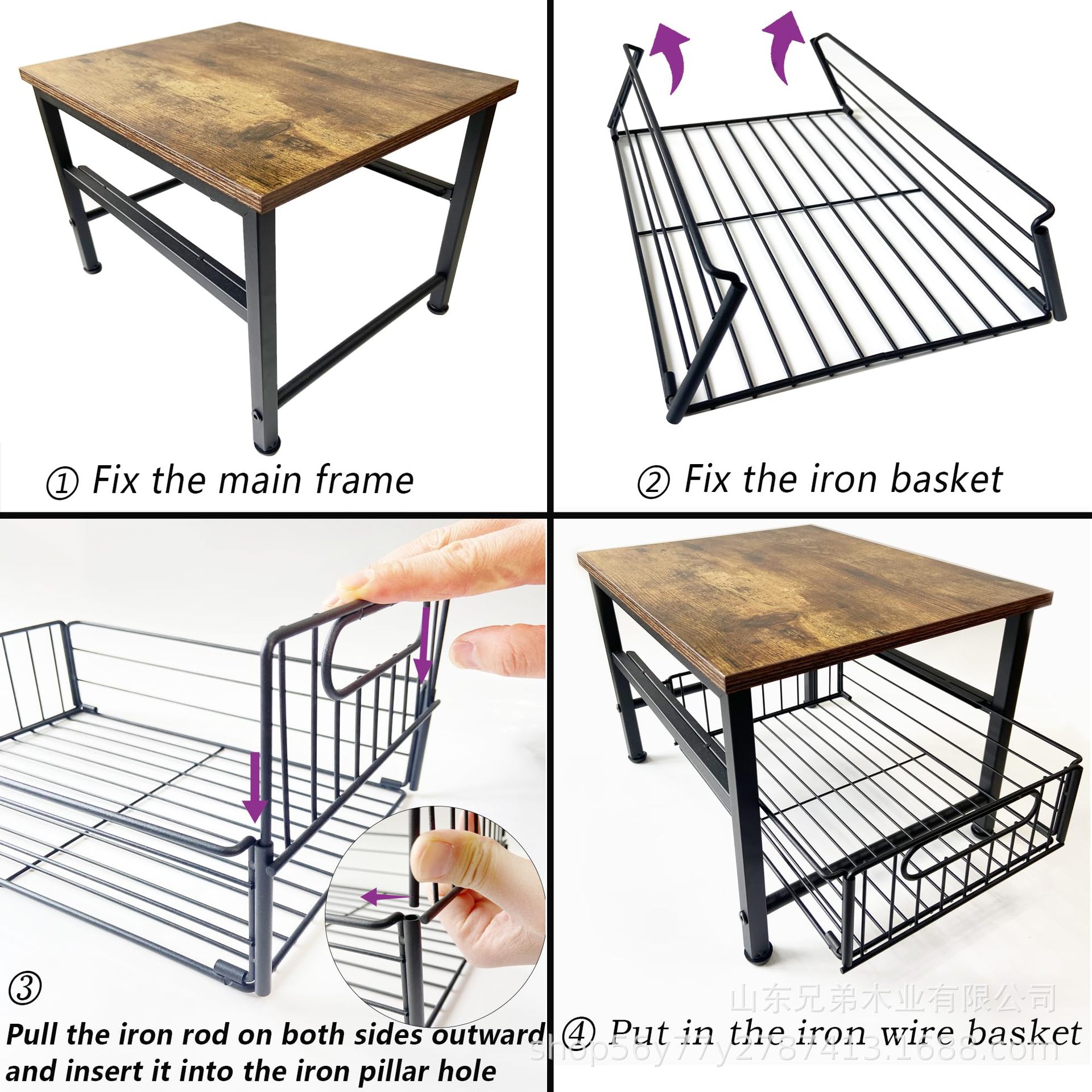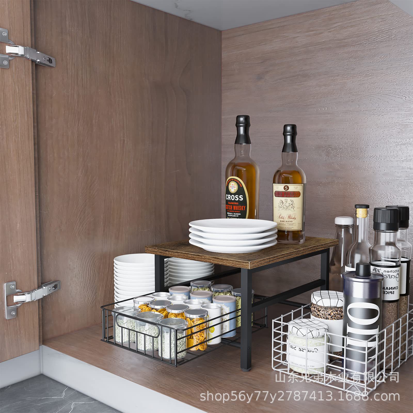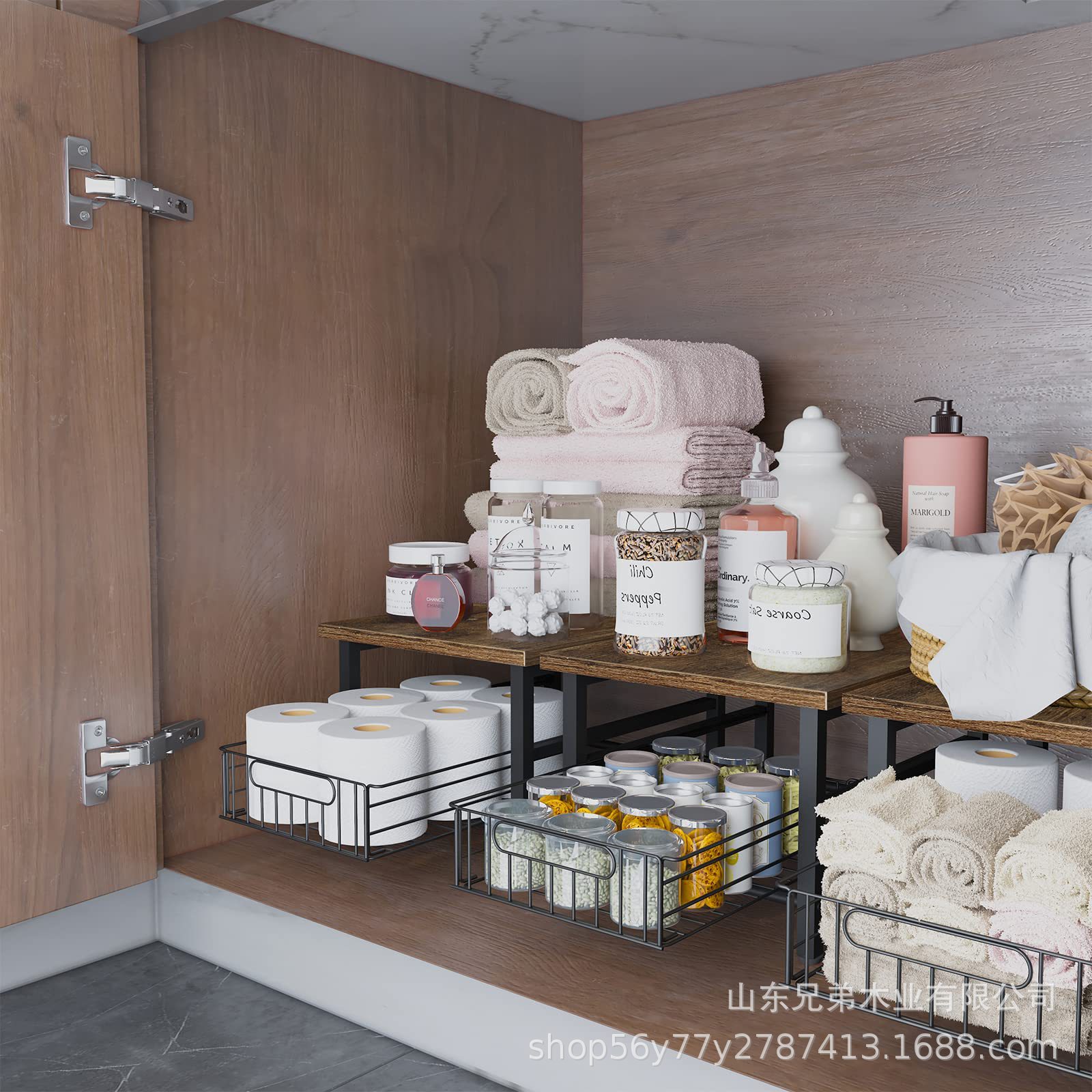 싱크대 아래 철제 나무 서랍 수납장, 슬라이딩 바구니, 데스크탑 수납 선반, 다기능 주방 수납