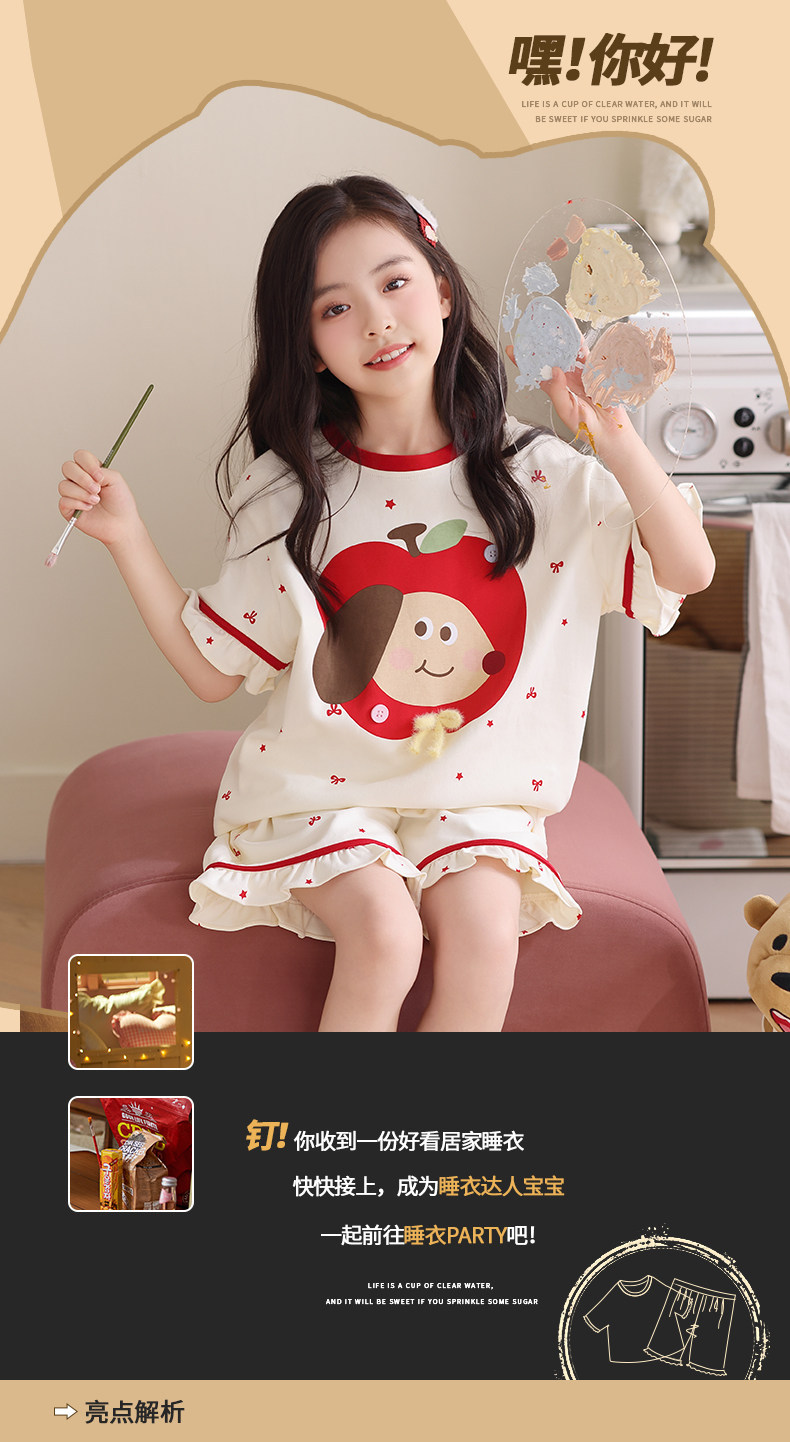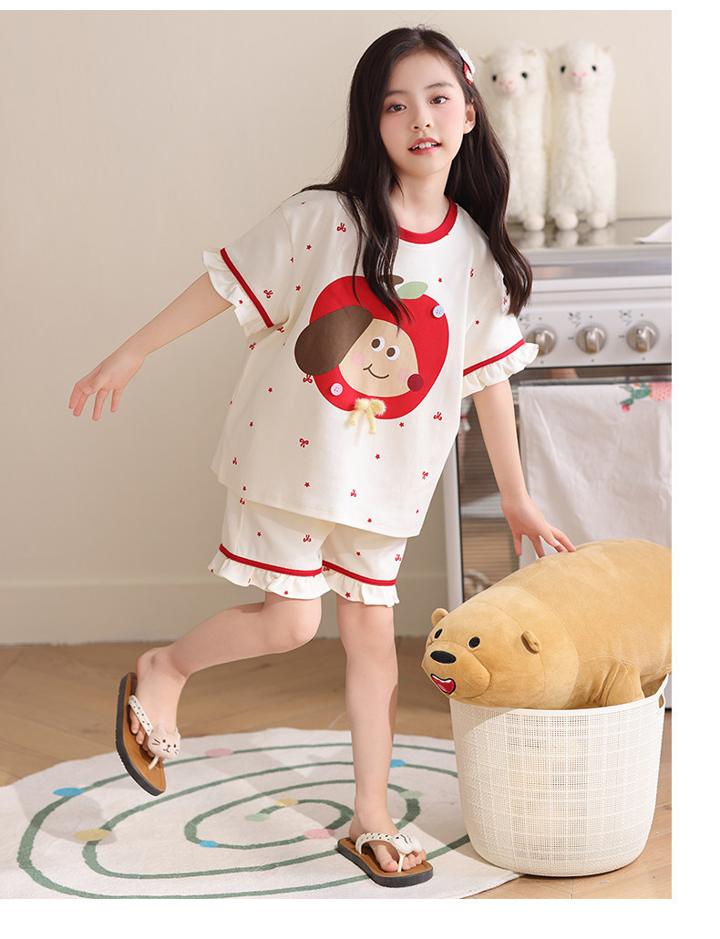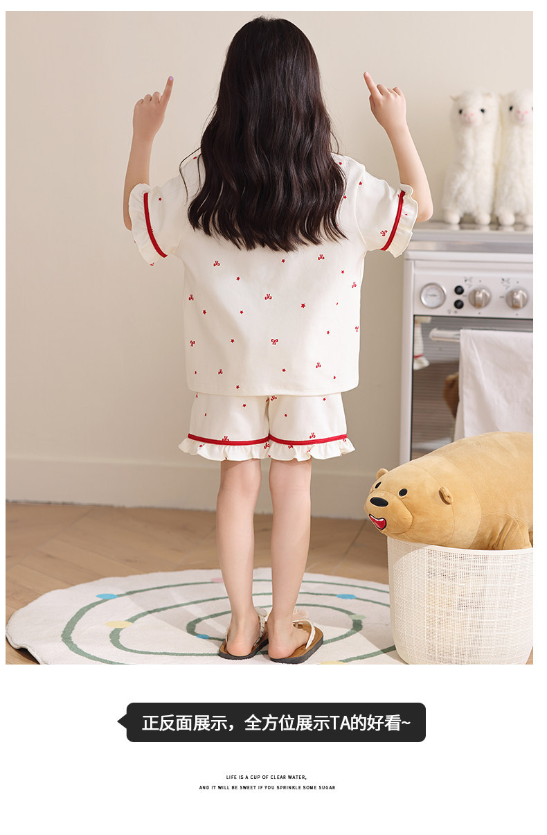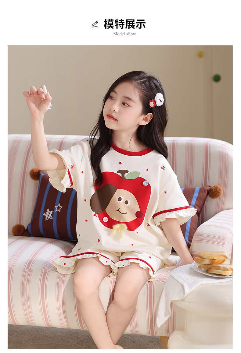 소녀 잠옷 2025 새 여름 반소매 면 얇은 어린이 소녀 봄과 가을 여름 큰 어린이 집 옷