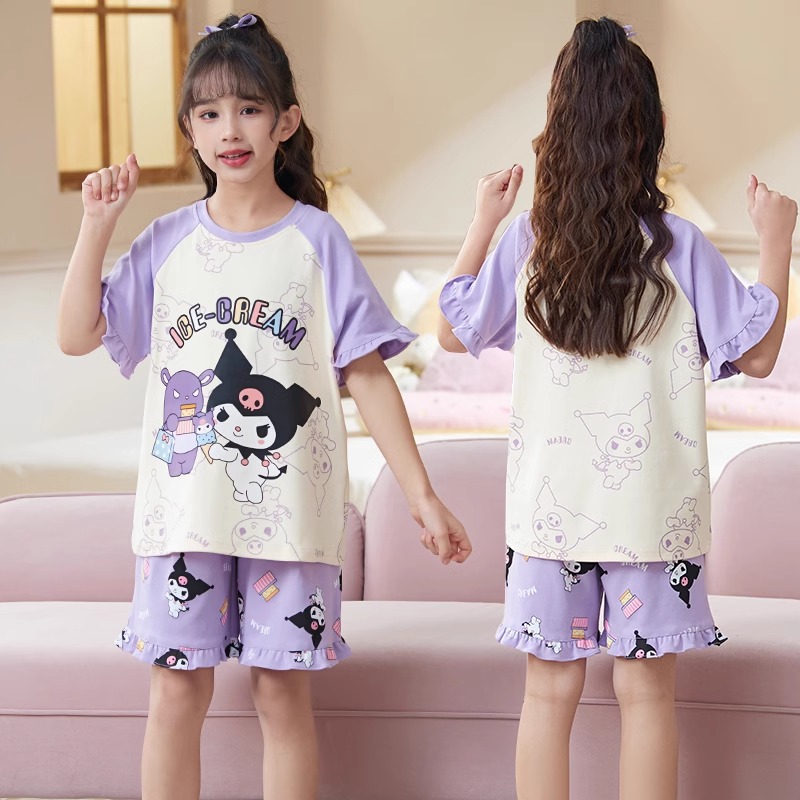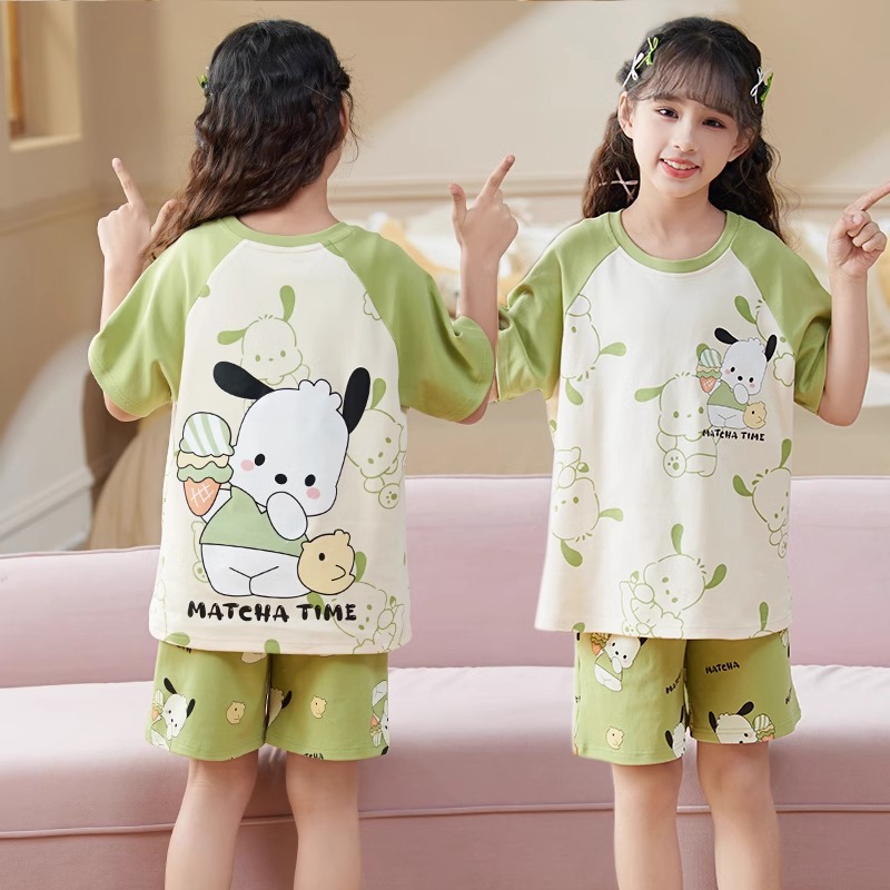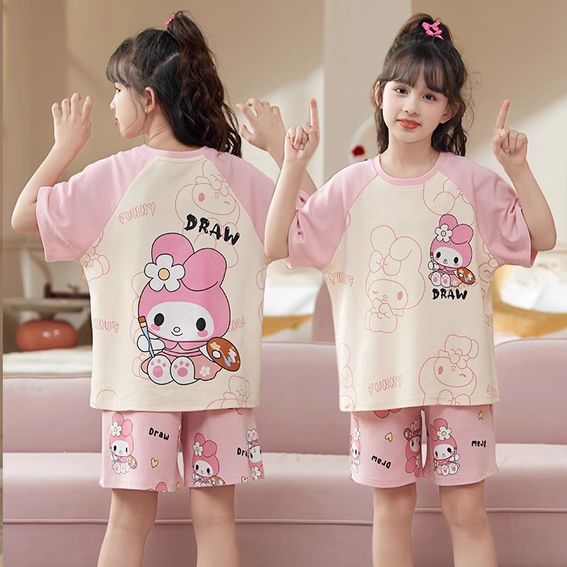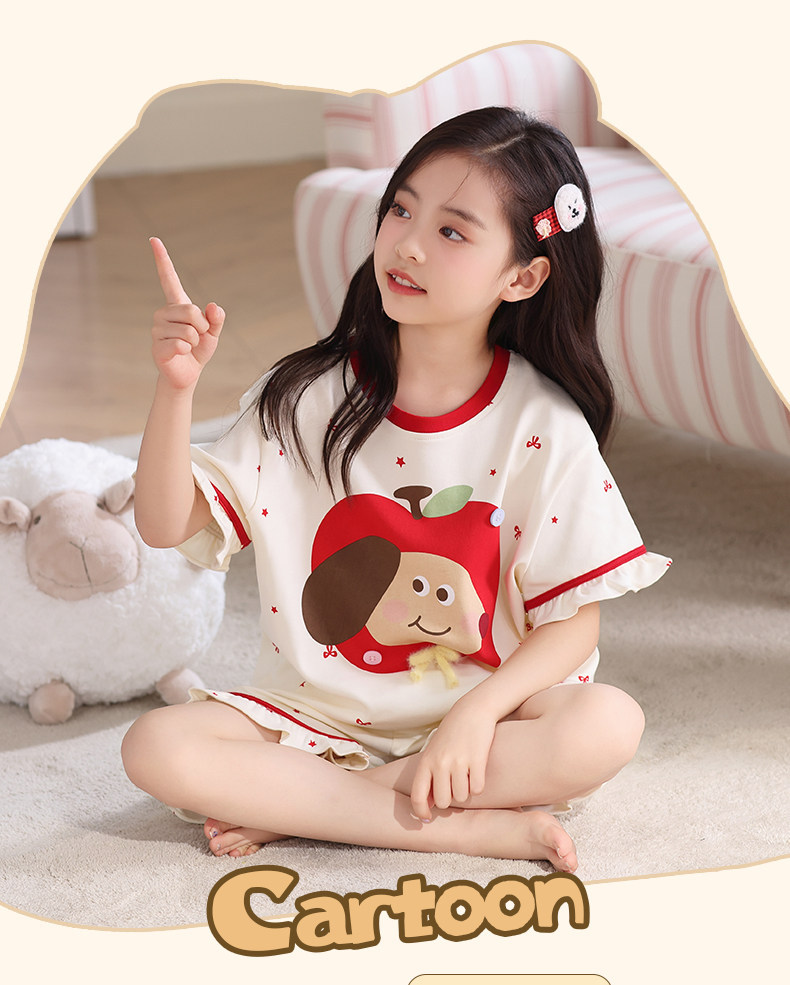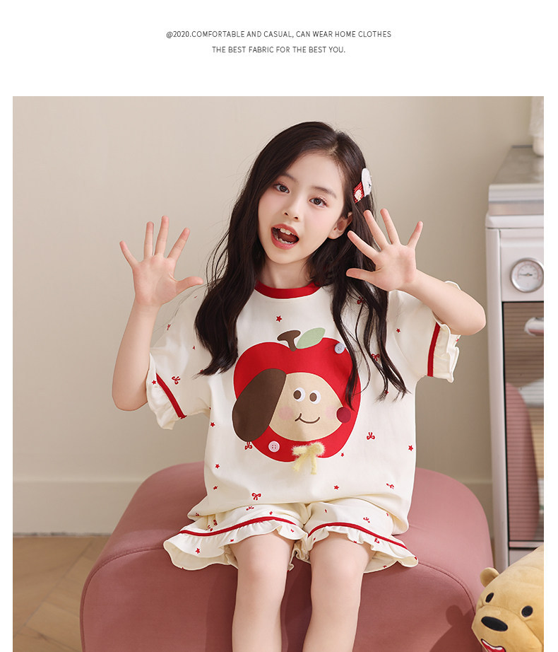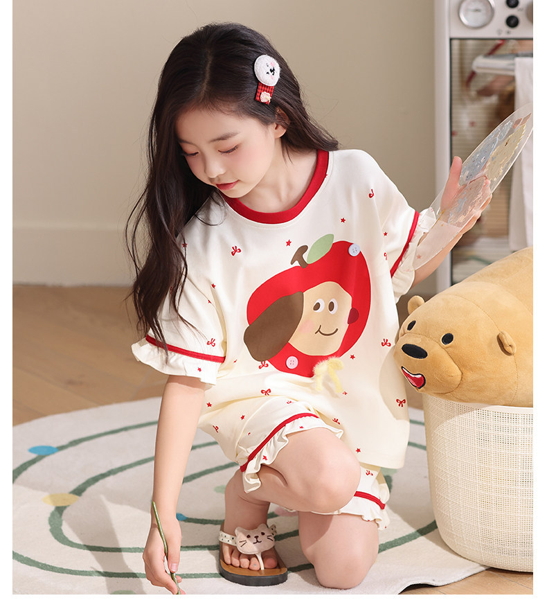 소녀 잠옷 2025 새 여름 반소매 면 얇은 어린이 소녀 봄과 가을 여름 큰 어린이 집 옷