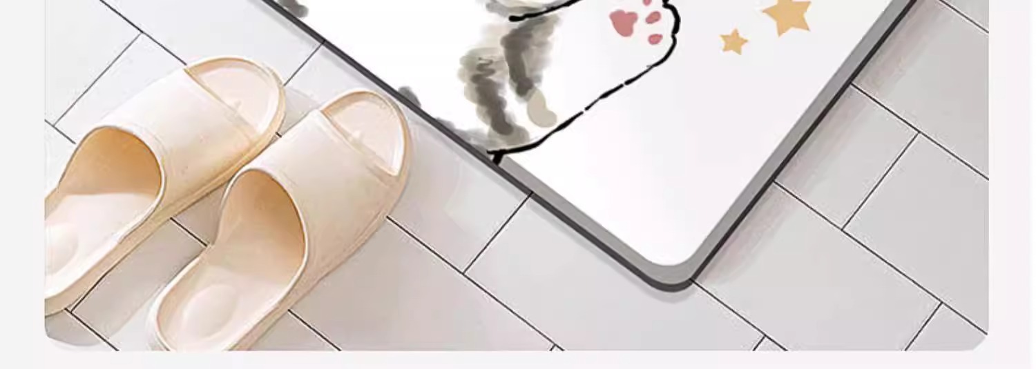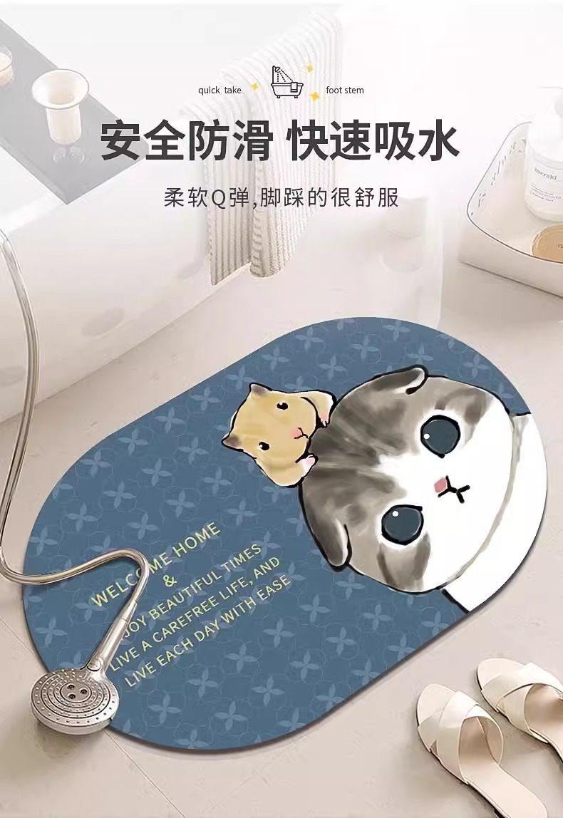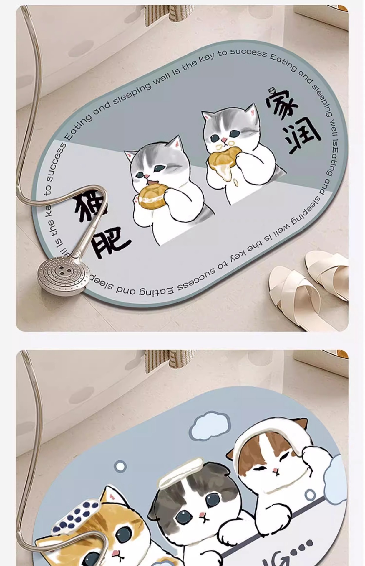 卡通猫咪地垫浴室软硅藻泥吸水脚垫卫生间门口防滑耐脏地毯