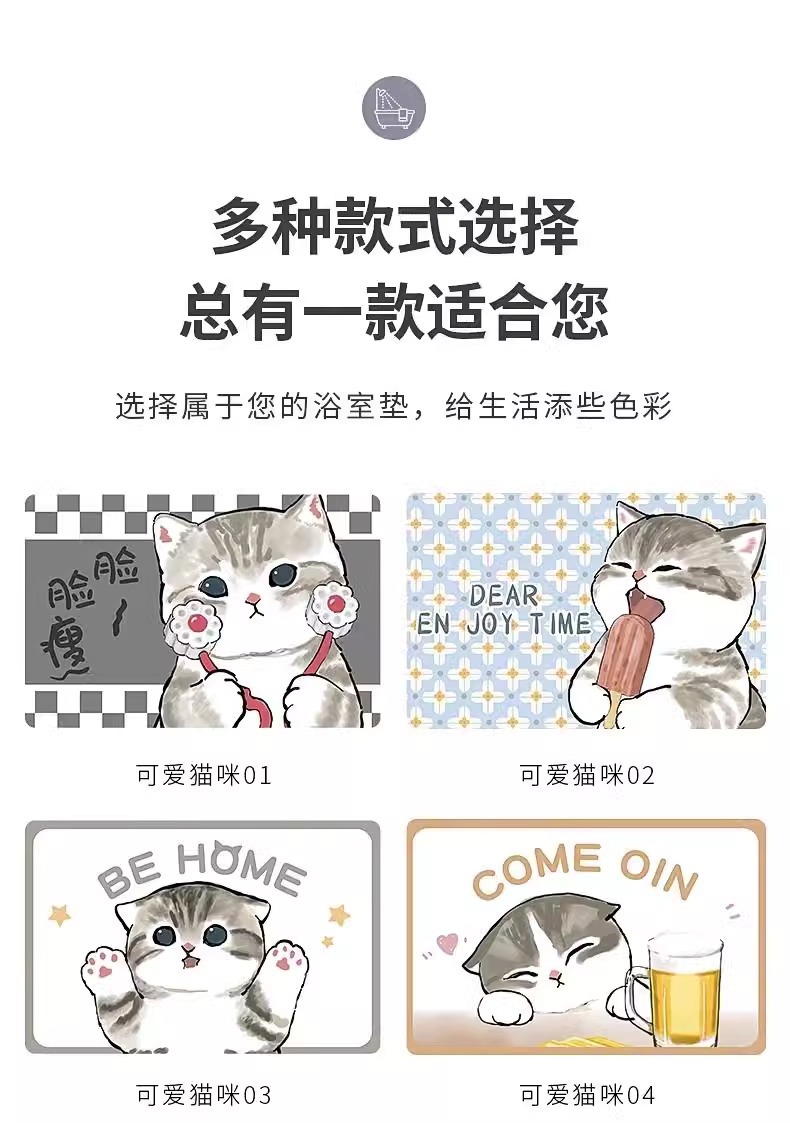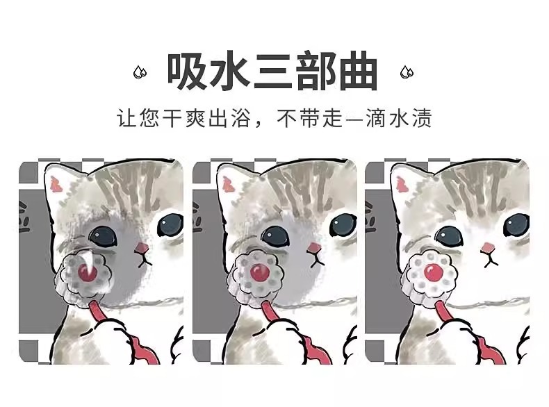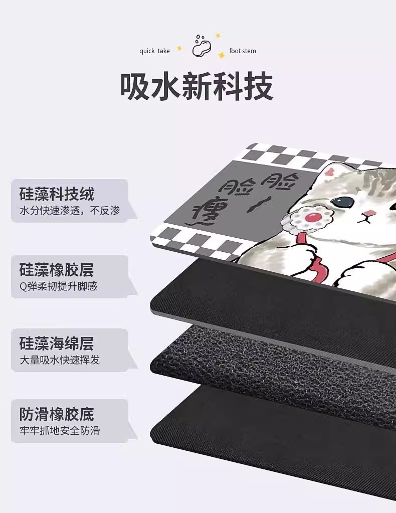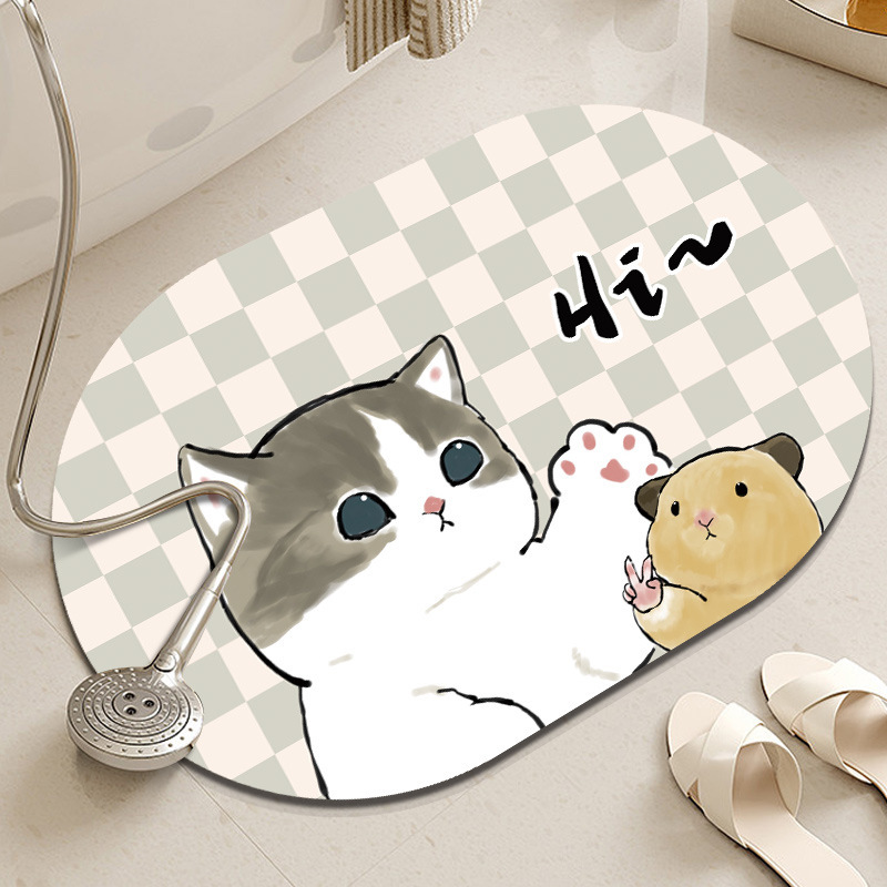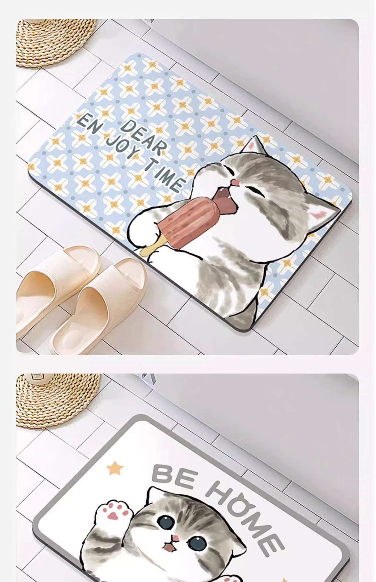 卡通猫咪地垫浴室软硅藻泥吸水脚垫卫生间门口防滑耐脏地毯