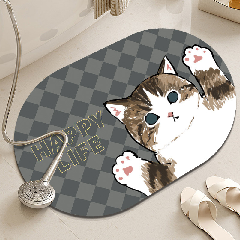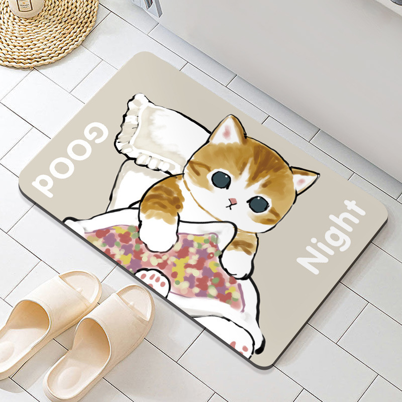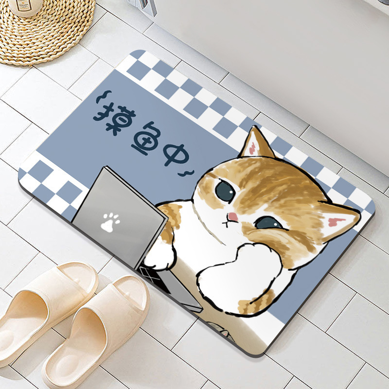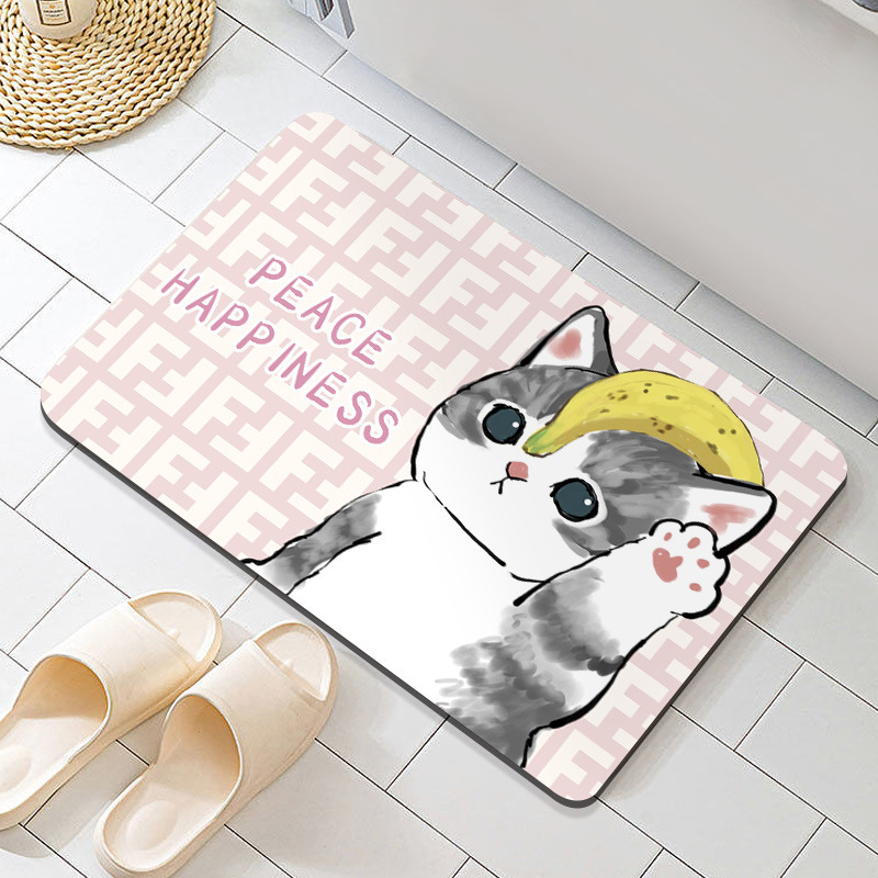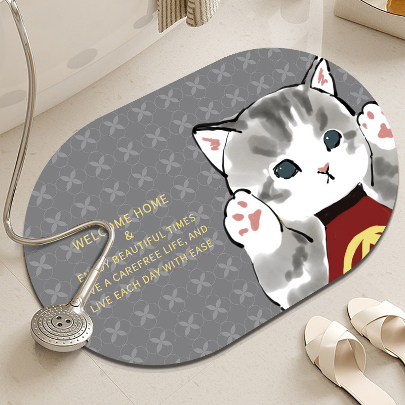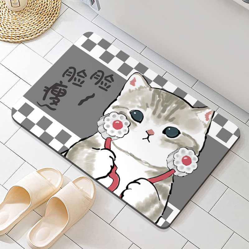 엄선 된 만화 고양이 바닥 매트 욕실 부드러운 diatom 진흙 흡수 바닥 매트 욕실 문 미끄럼 방지 얼룩 방지 카펫스토어 가기