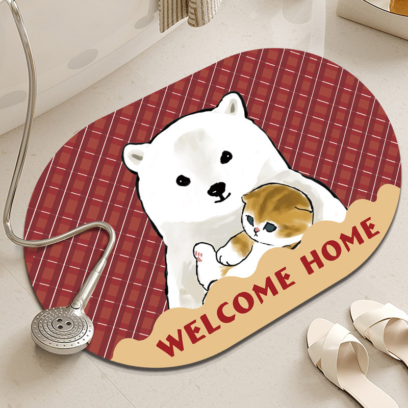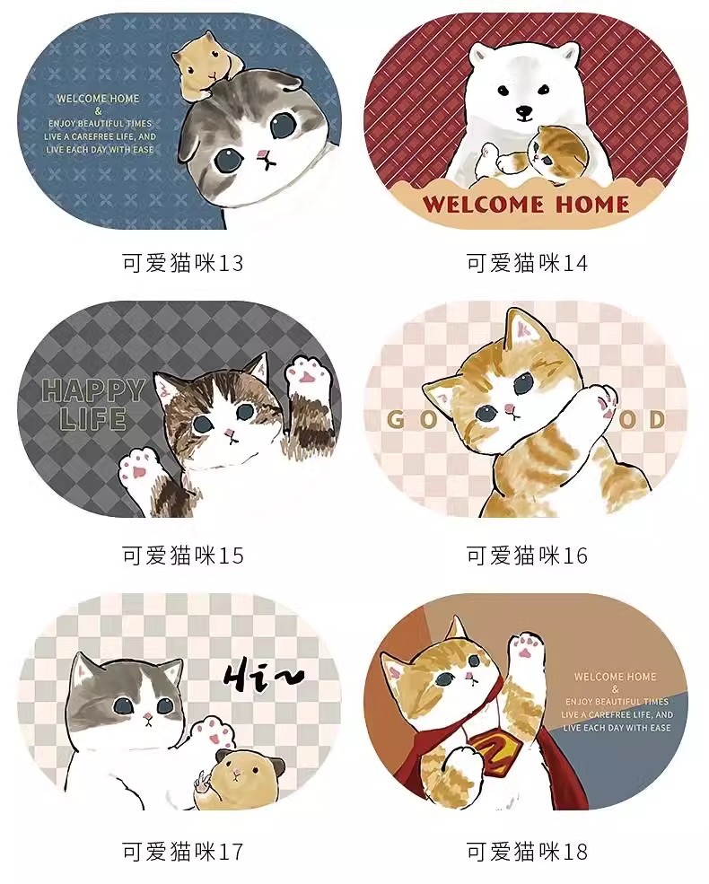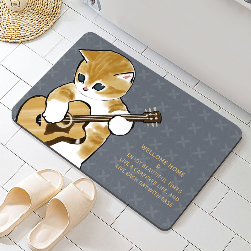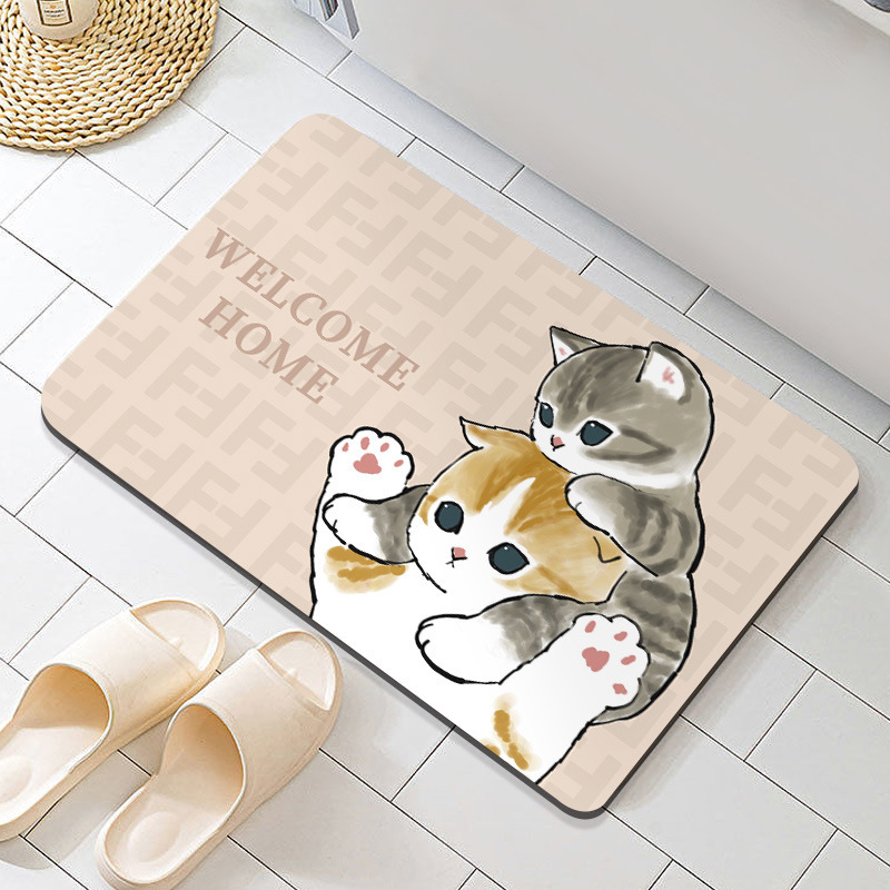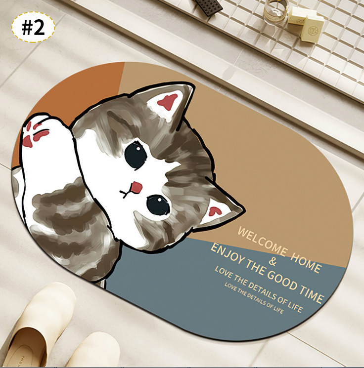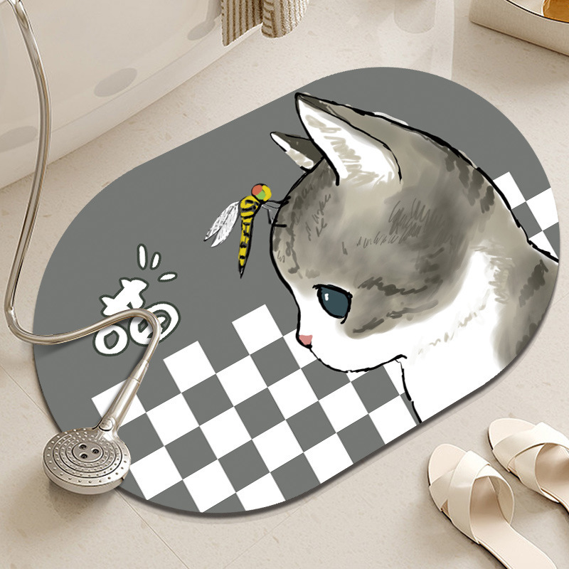 엄선 된 만화 고양이 바닥 매트 욕실 부드러운 diatom 진흙 흡수 바닥 매트 욕실 문 미끄럼 방지 얼룩 방지 카펫스토어 가기