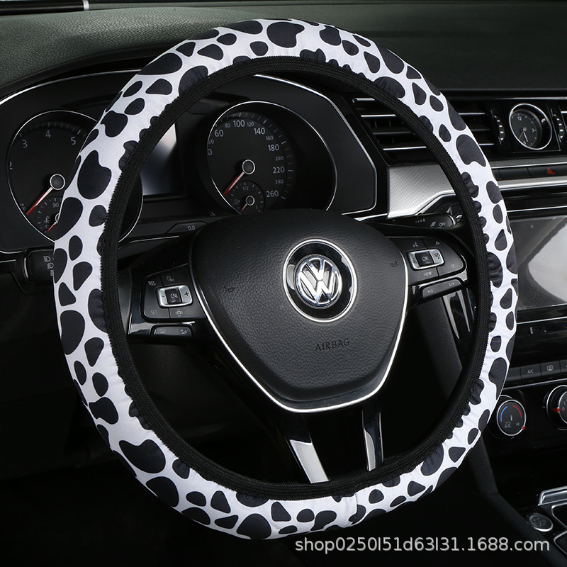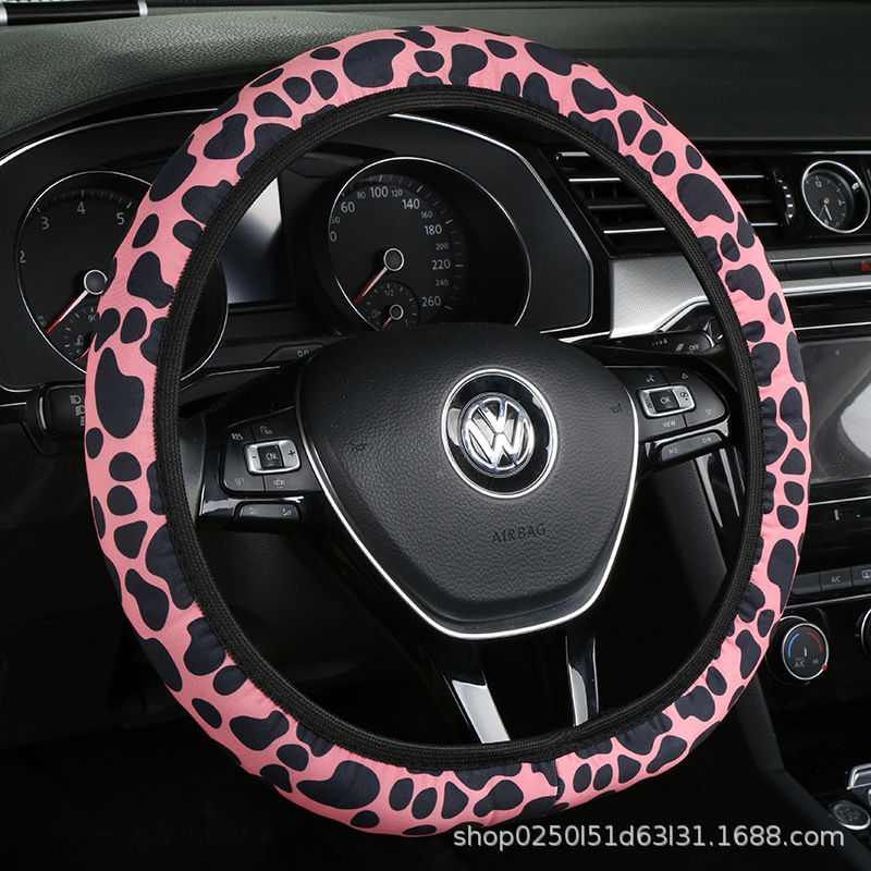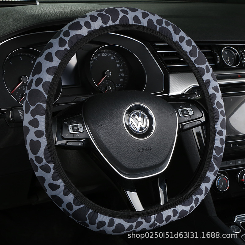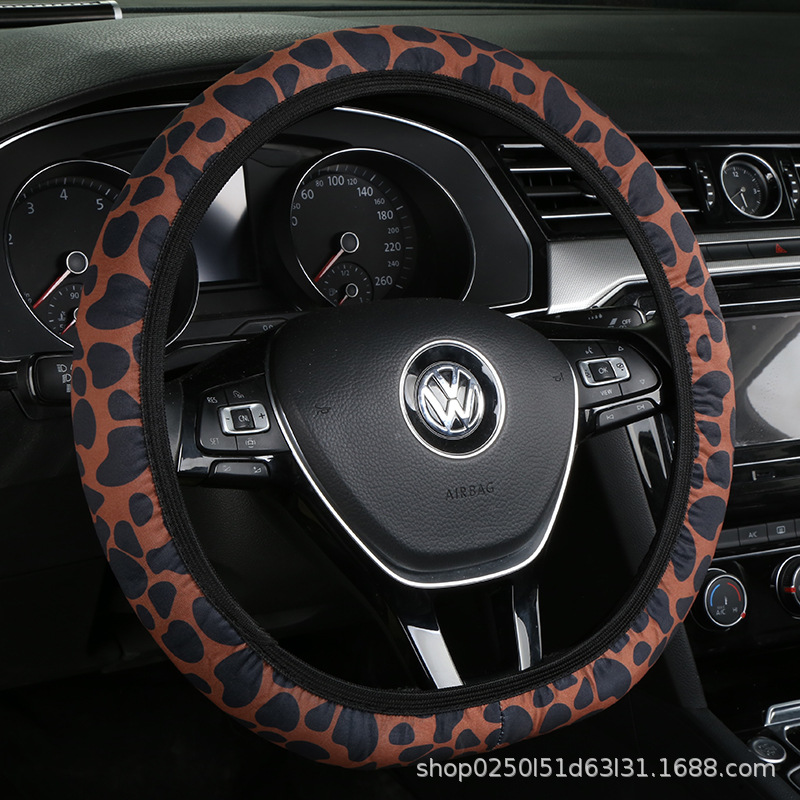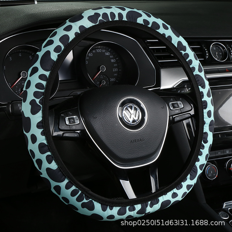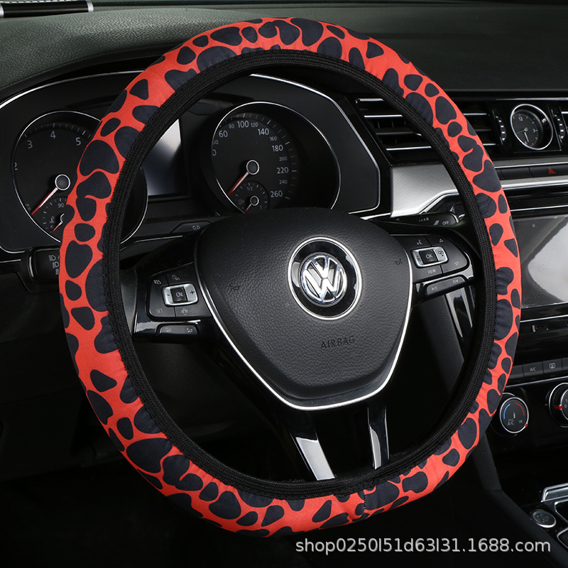 새로운 자동차 스티어링 휠 커버 유니버설 모델 땀 흡수성 미끄럼 탄성 레오파드 무늬 탄성 밴드 핸들 커버 내부 링 없음스토어 가기