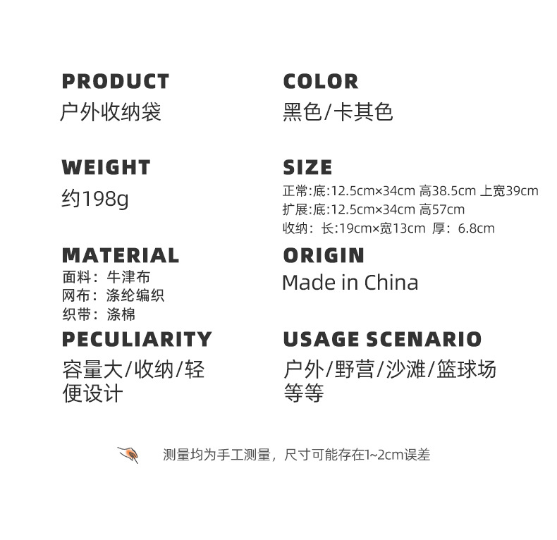 材质:面料:牛津布 / 网布:涤纶编织 / 织带:涤纶