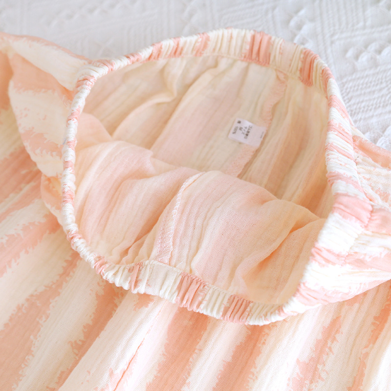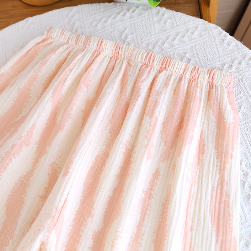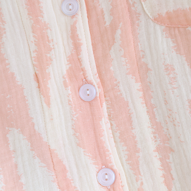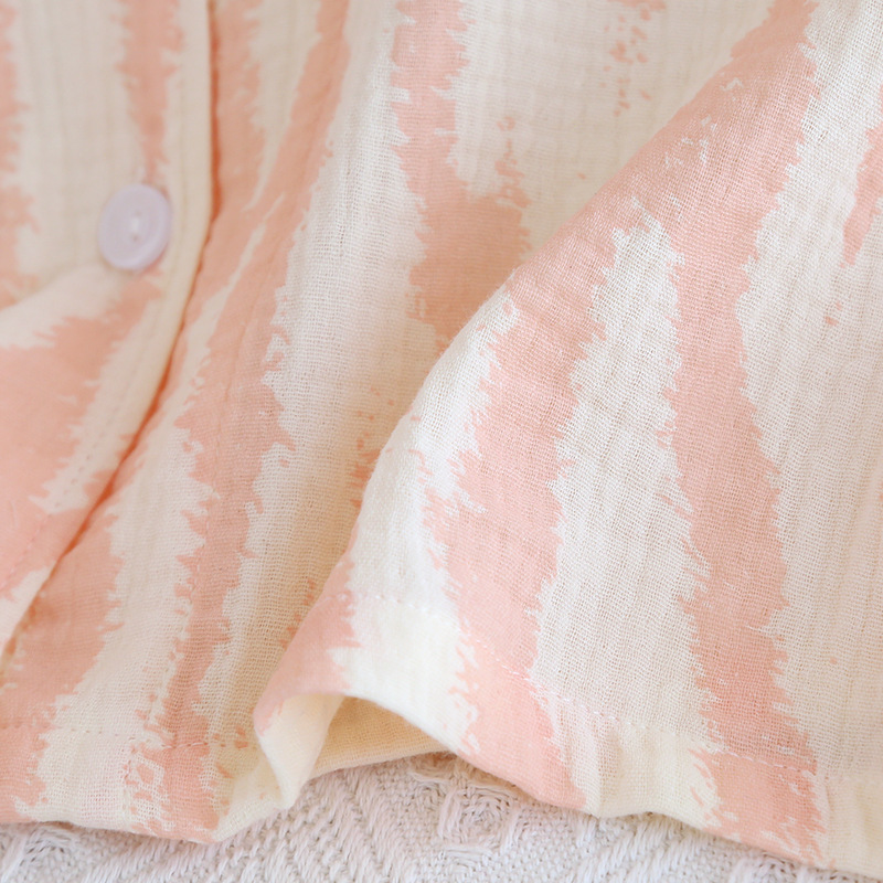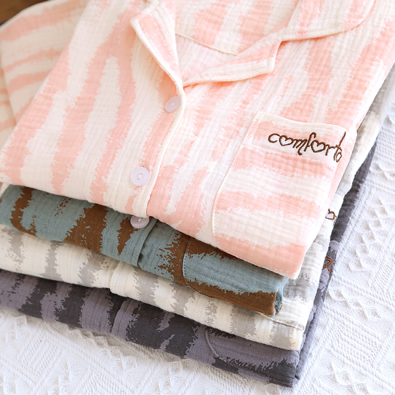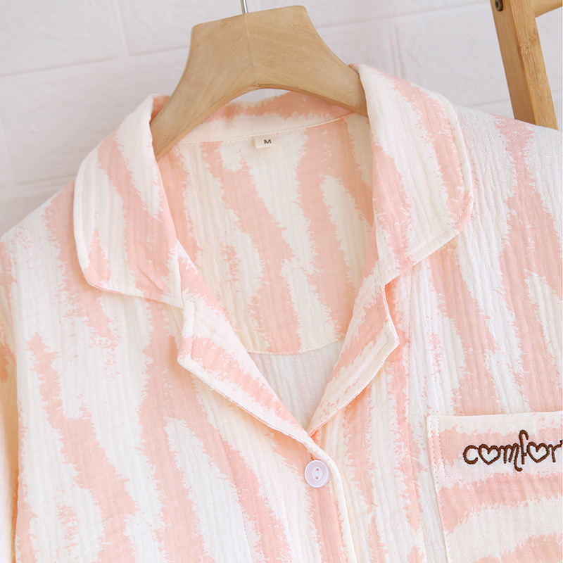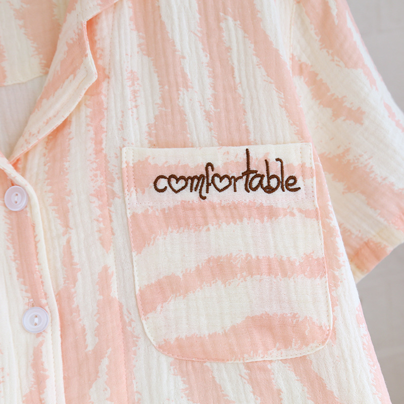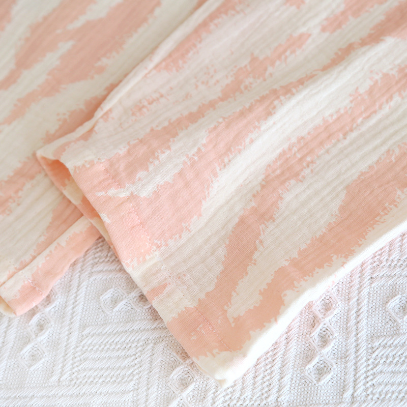 새 커플의 반팔 바지 파자마 남성과 여성의 가정복 세트 면 거즈 봄과 여름 면화 얼룩말 패턴