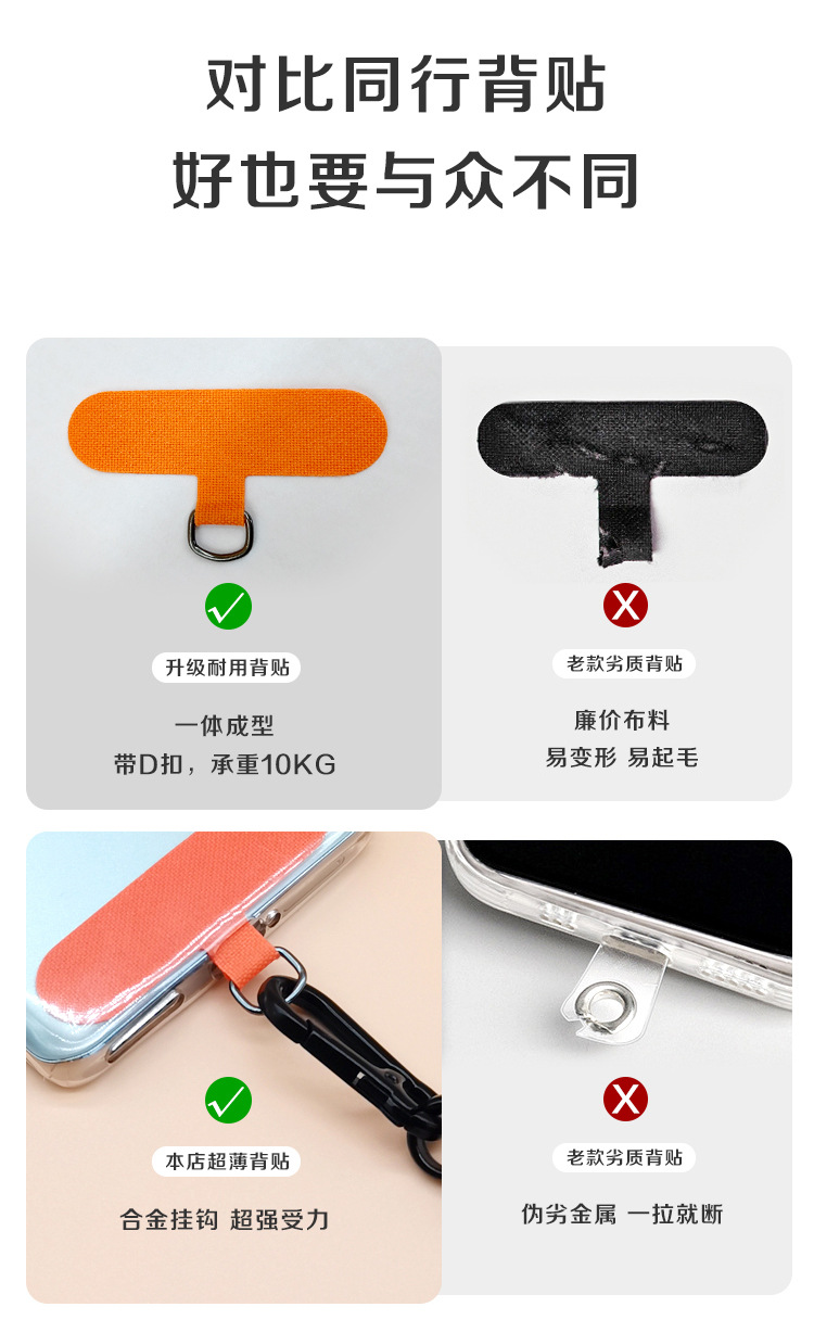 공장 맞춤형 휴대 전화 고정 분실 클립 패치 도매 휴대 전화 백 카드 분리 가능한 휴대 전화 끈 가스켓