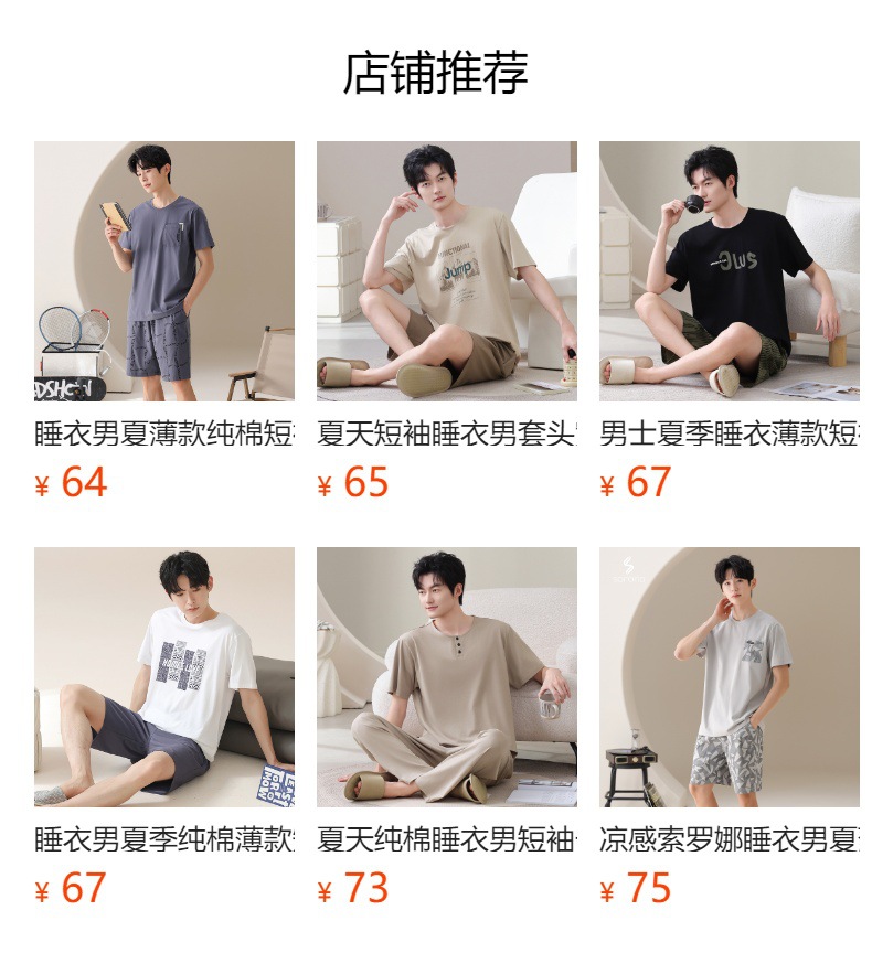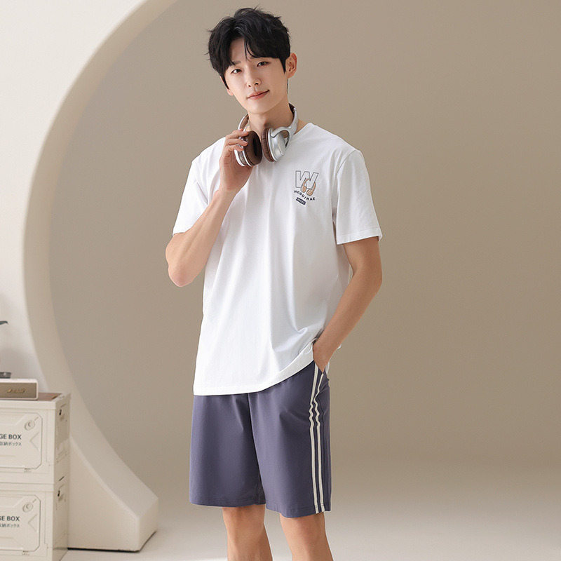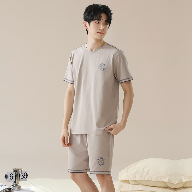 【시원한 착용감】남성용 여름 순면 얇은 반팔 반바지 잠옷, 외출복으로도 착용 가능, 여름용 풀오버 순면 잠옷스토어 가기